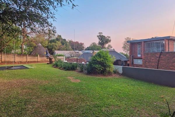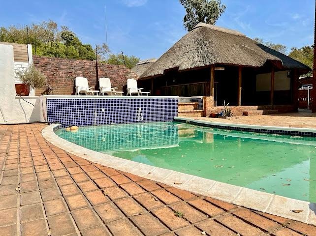 Outdoors, the property is designed for family enjoyment, featuring a large garden with ample lawn, a sparkling swimming pool, entertainment lapa, solar heating for the pool, and a borehole.