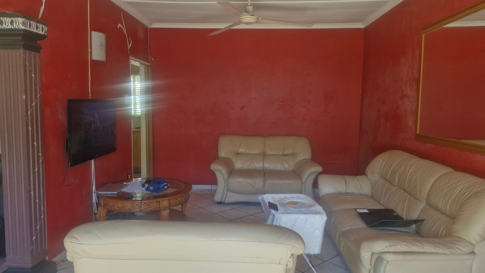 this very neat property consist of three bedrooms all fitted, main with insuite with walk in wardrobe, second full bath, lounge , dinning room, family room, fitted kitchen and scullery, bar and jaccuzi with gym area , lappa with build in braai and a pool also double garage and extra garage at the back.This property is located in an upmarket surbub of midval close to R42 to R59 and freestate close to shops and schools and not too far from upmarket vaal river properties