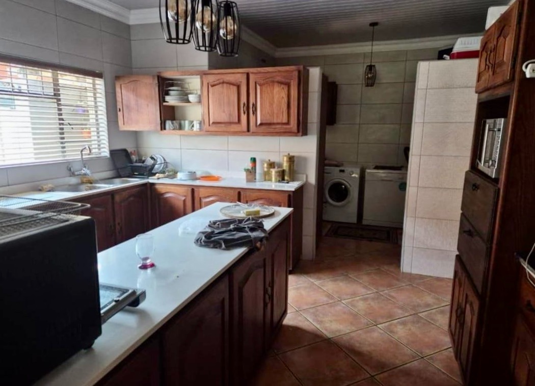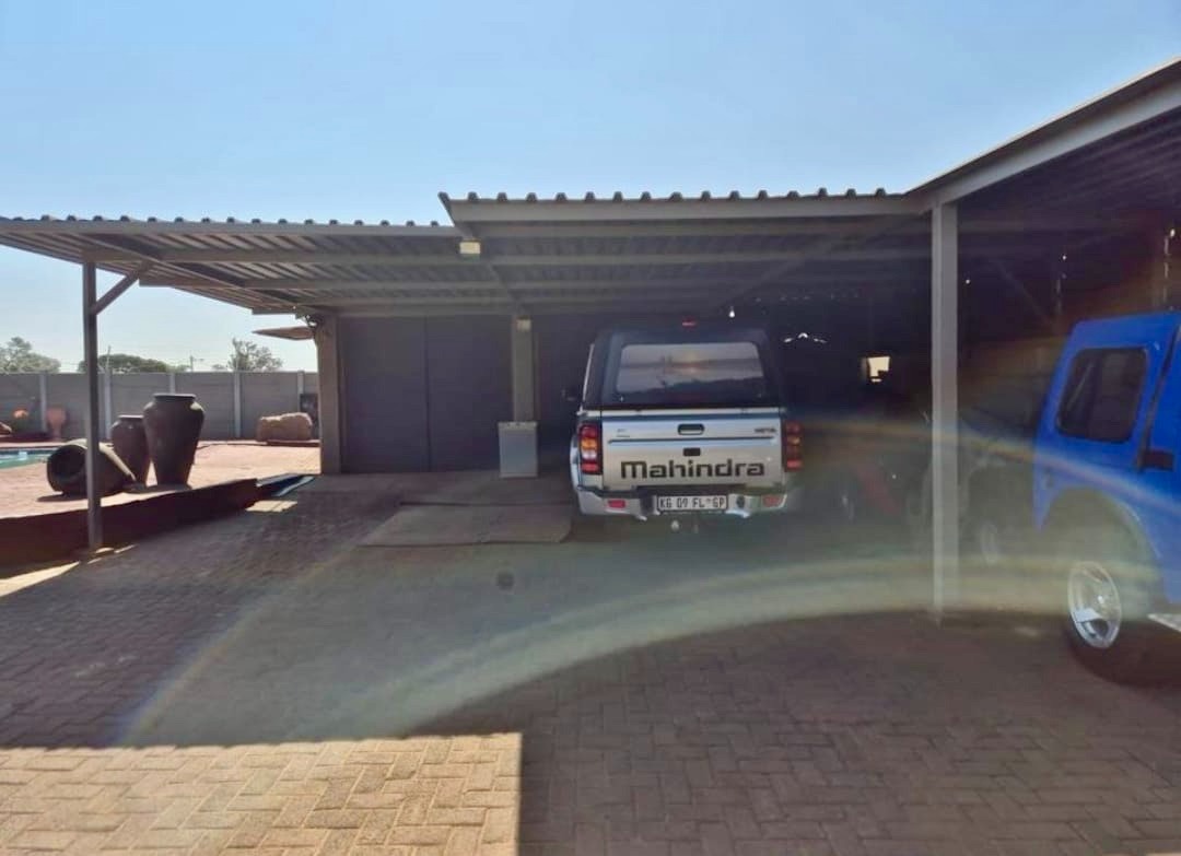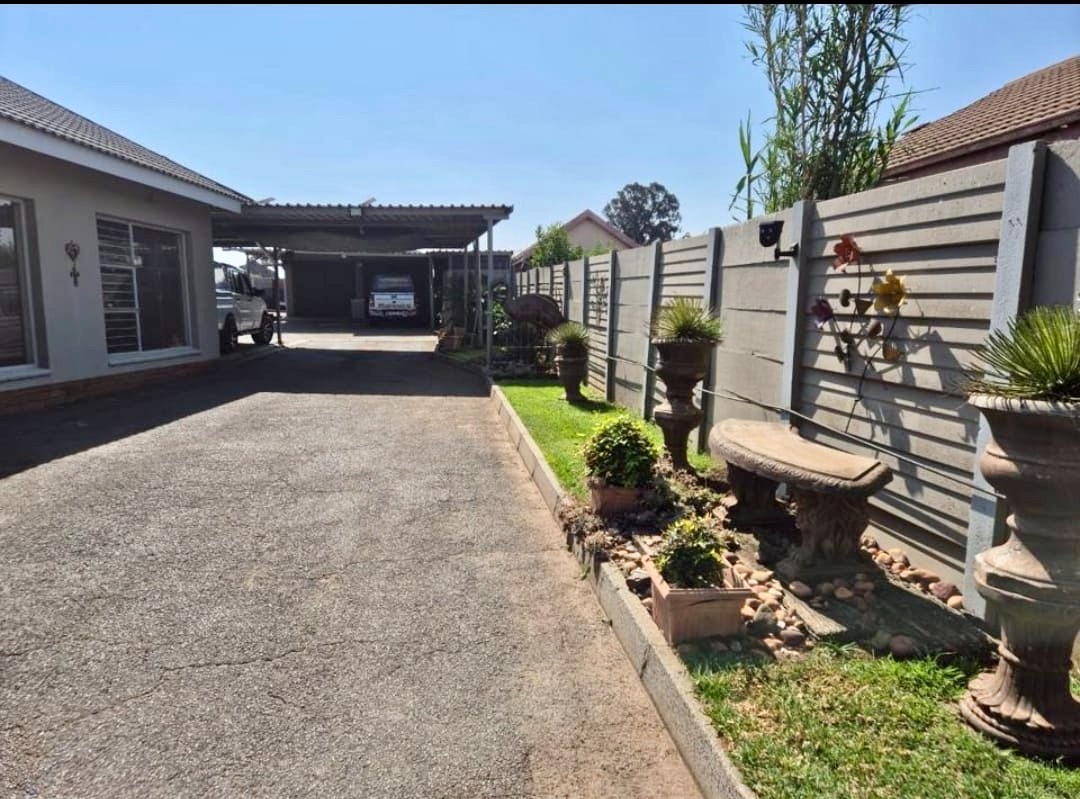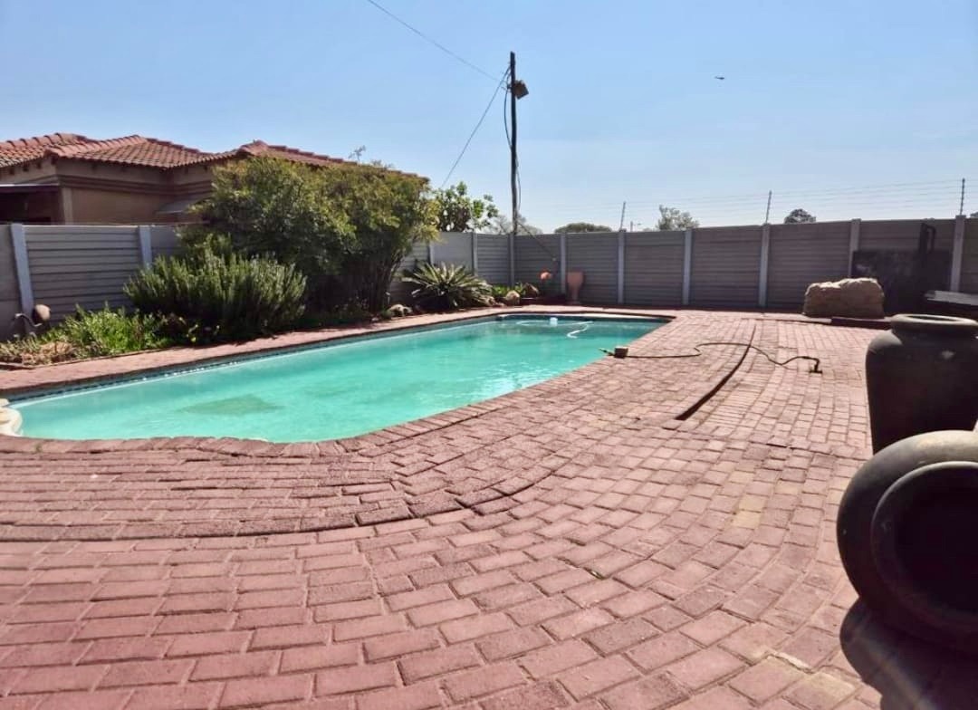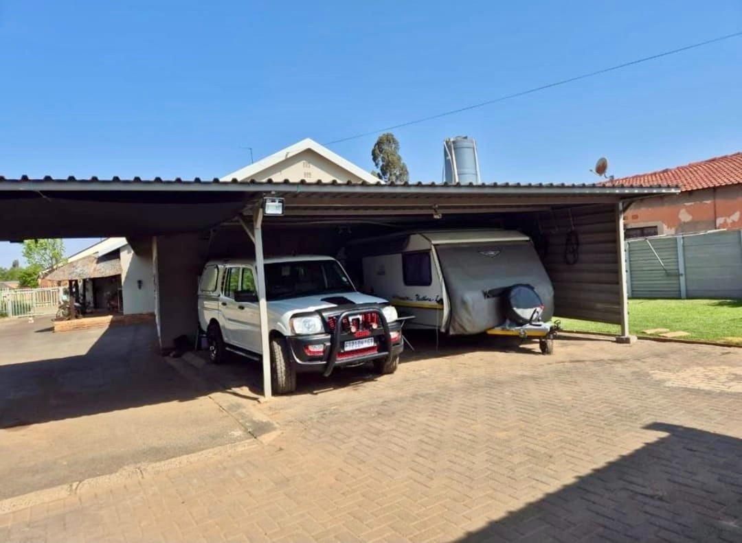 This amazing beautiful home offers 3 bedroom with built in cupboards , 1 and A a half bathroom , beautiful spacious kitchen also with built- in cupboards ,laundry room , tv room, dinning room sitting room , double garage , lots of carports ,outside shower/ toilet , swimming pool, solar lights around house at night , alarm system and cameras , borehole with 2000 litter tank connected to the house, sprinklers ,gas geyser and remote control gate, and a nice garden outside .