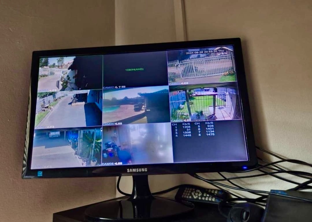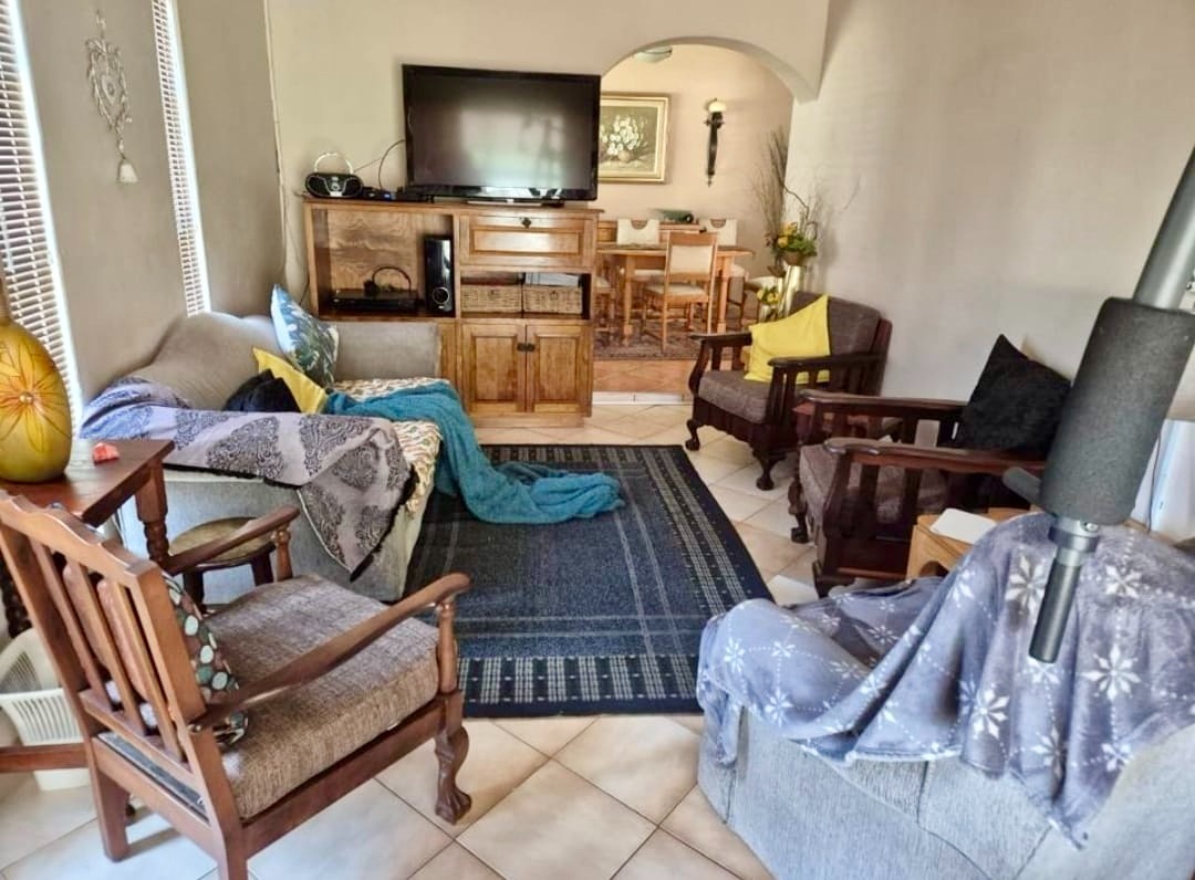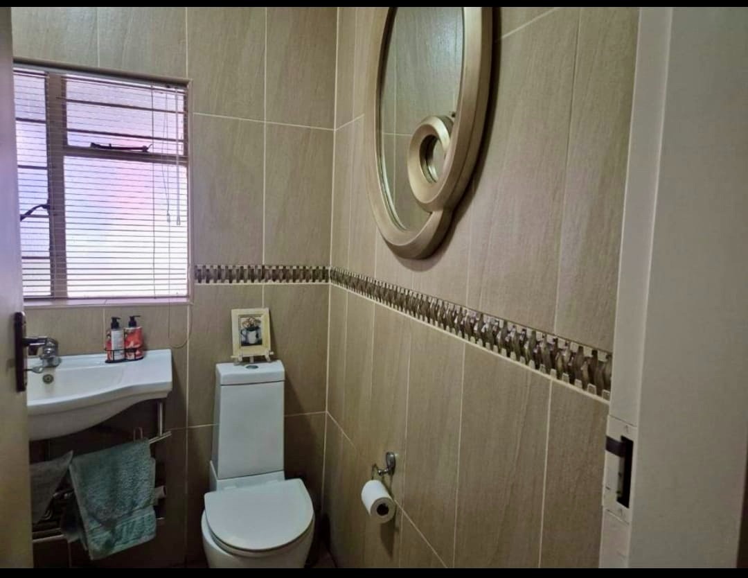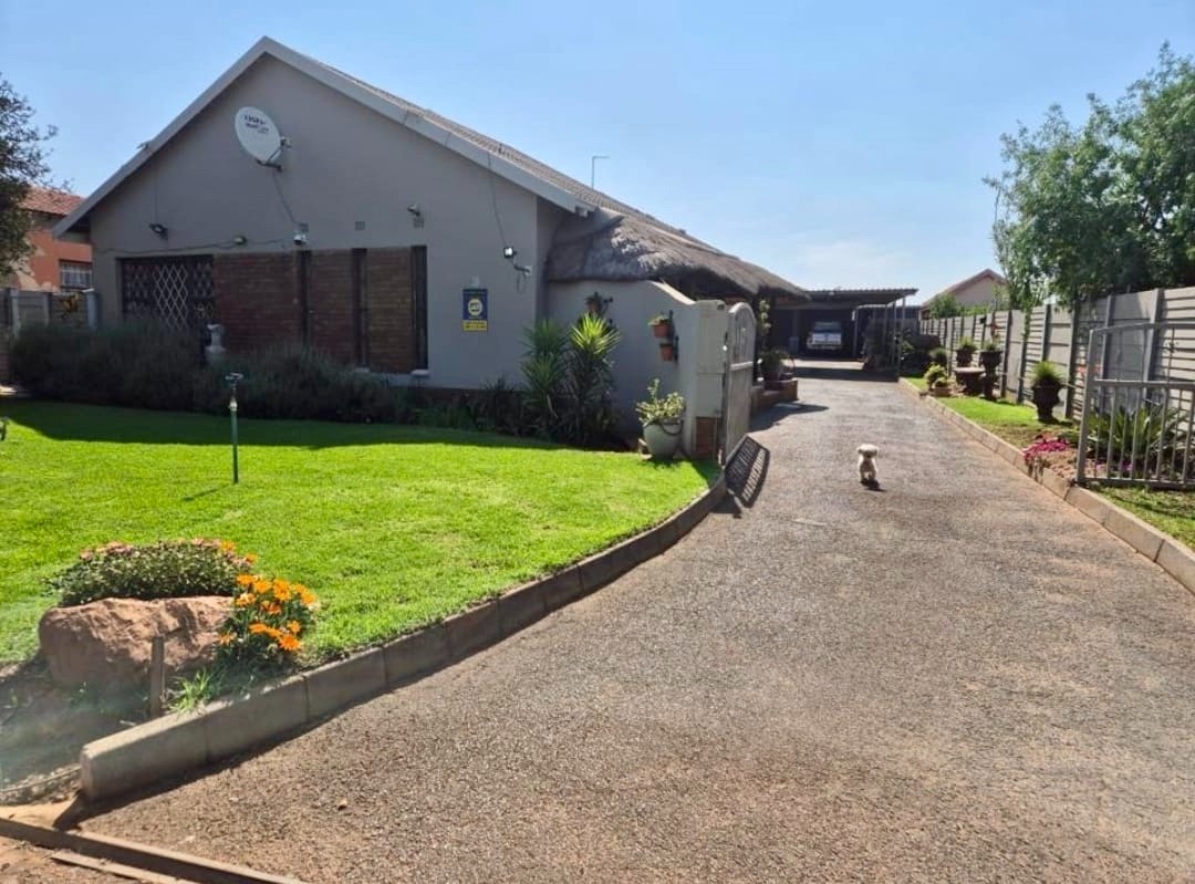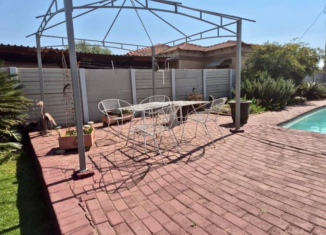 This amazing beautiful home offers 3 bedroom with built in cupboards , 1 and A a half bathroom , beautiful spacious kitchen also with built- in cupboards ,laundry room , tv room, dinning room sitting room , double garage , lots of carports ,outside shower/ toilet , swimming pool, solar lights around house at night , alarm system and cameras , borehole with 2000 litter tank connected to the house, sprinklers ,gas geyser and remote control gate, and a nice garden outside .