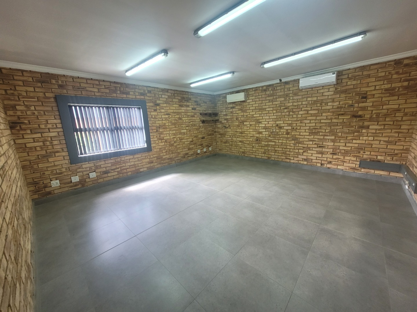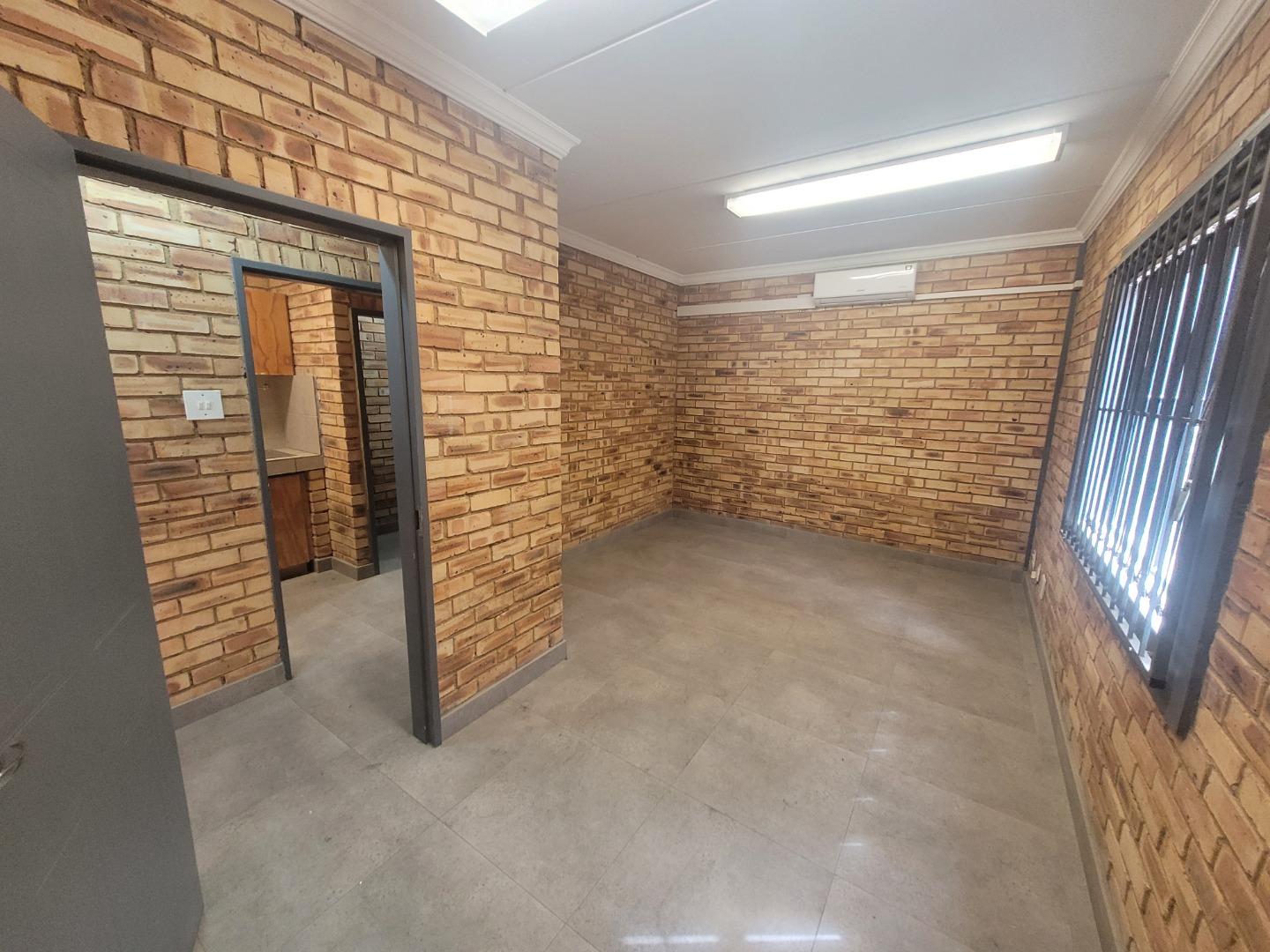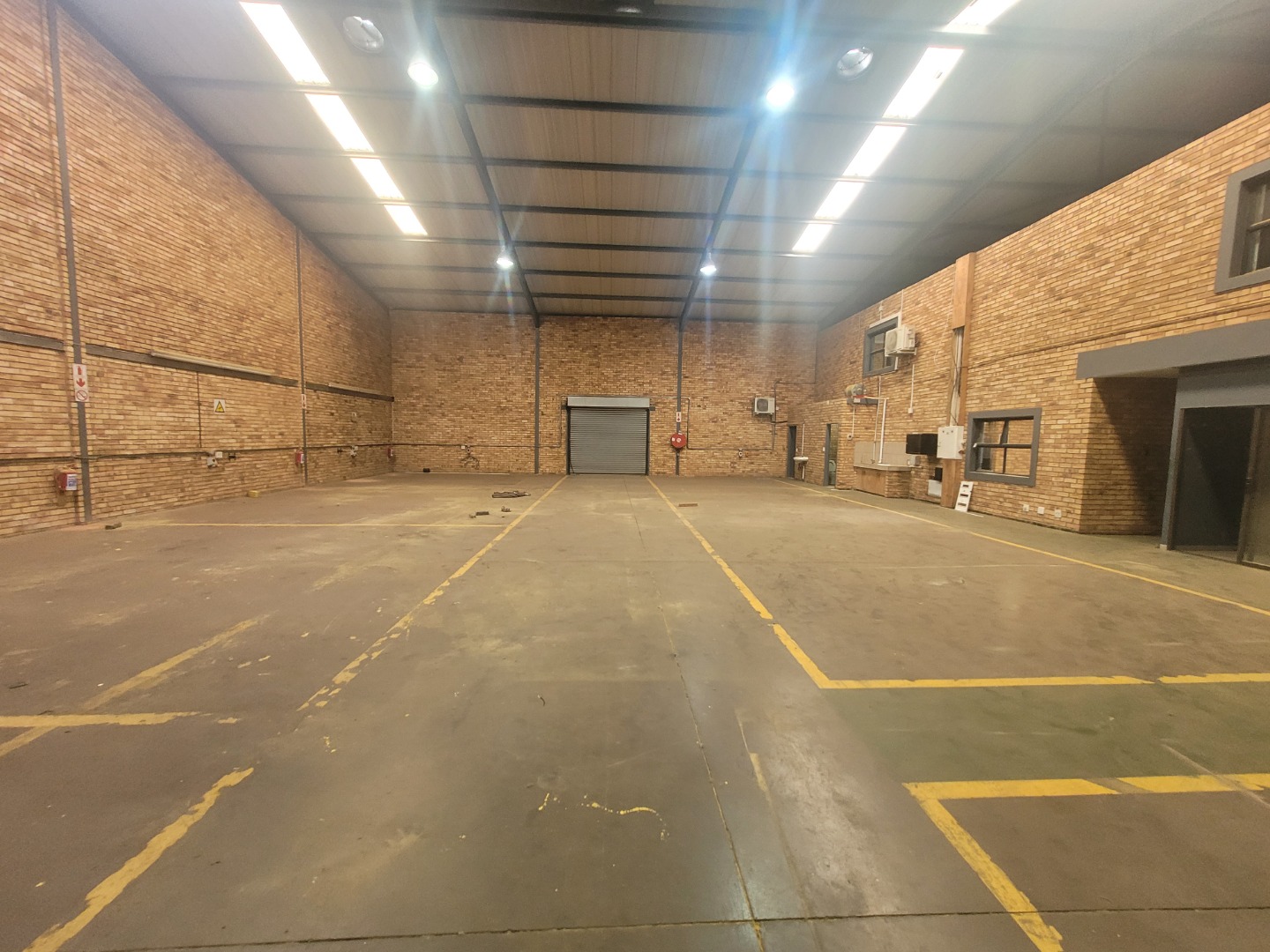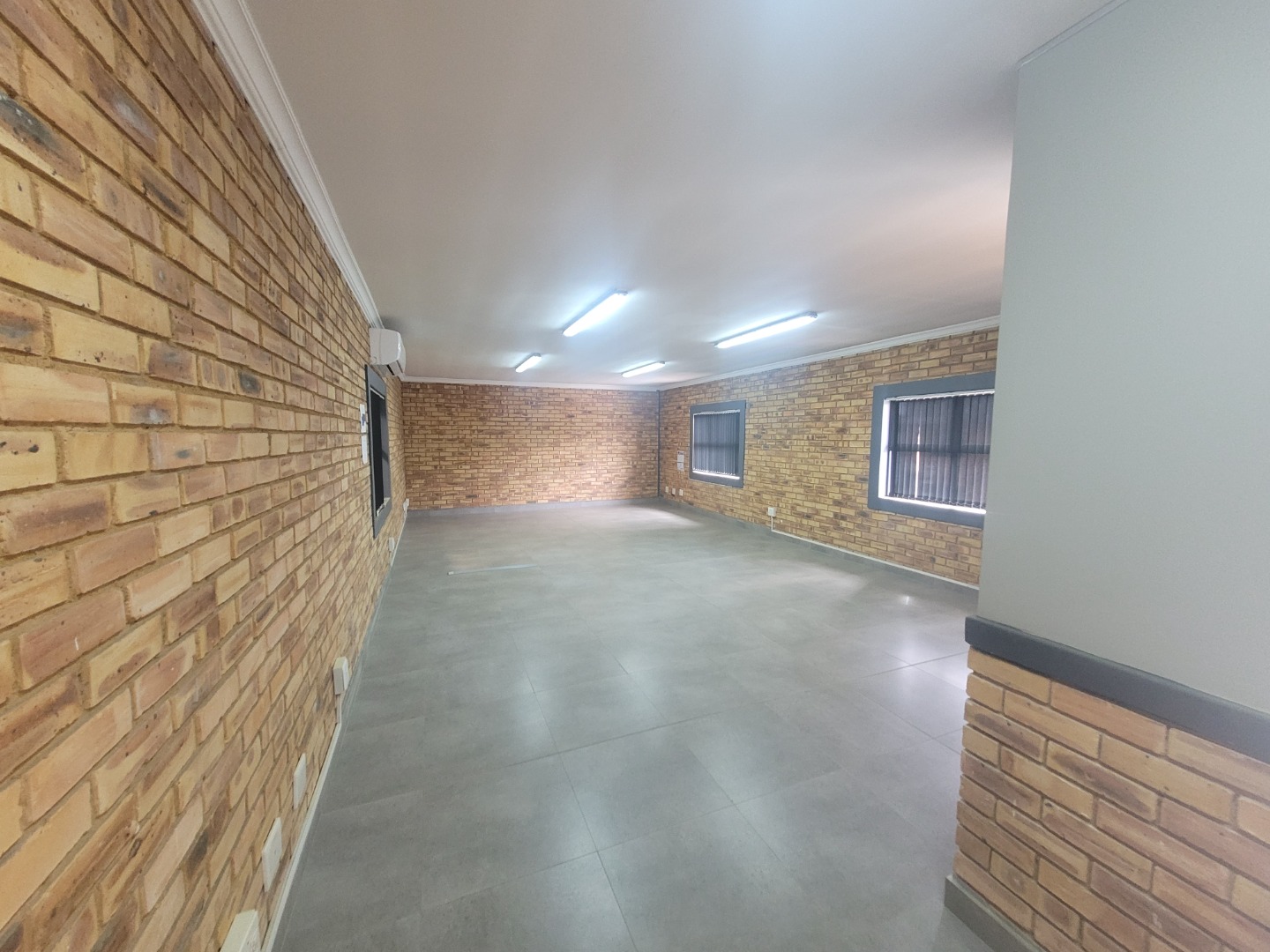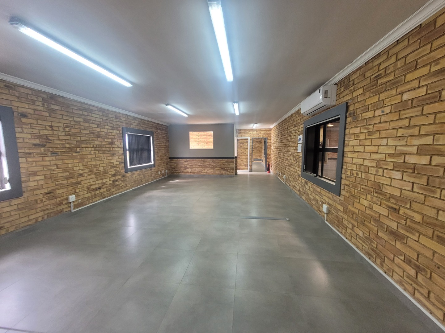 Presenting a distinguished commercial rental opportunity spanning 600.00 square metres, strategically located in the vibrant Brentwood Park area of Benoni, South Africa. This contemporary industrial/commercial property features a clean, multi-toned brick facade and a robust dark grey metal roof, projecting a professional corporate image. The exterior is complemented by a spacious asphalt parking lot offering 6 clearly marked bays, alongside a secure pedestrian entrance and two large roller shutter doors, ensuring efficient logistical operations and accessibility. The interior boasts a modern aesthetic, characterised by durable exposed brick walls and sophisticated grey tiled flooring throughout. The versatile layout includes expansive open-plan areas, ideal for collaborative workspaces or showroom displays, alongside several private rooms equipped with air conditioning units for optimal climate control. The property further benefits from two well-appointed kitchenettes and four contemporary bathrooms, designed with practicality and modern fixtures. Adaptability is a key feature of this premises, rendering it suitable for a diverse range of commercial enterprises, from light industrial operations to corporate offices or retail showrooms. The design facilitates seamless customisation to meet specific business requirements. Essential amenities include ample natural light filtering through multiple windows, supplemented by efficient fluorescent lighting, and numerous electrical outlets to support extensive operational needs. Situated within a secure complex, this property offers enhanced peace of mind for tenants and their assets. Brentwood Park provides a strategic commercial hub within Benoni, offering excellent connectivity and a conducive environment for business growth and development. Key Features: * Expansive 600.00 sqm commercial space * Modern exposed brick and tiled interiors * Two large roller shutter doors * Ample parking with 6 dedicated bays * Four bathrooms and two kitchenettes * Integrated air conditioning units * Located within a secure complex