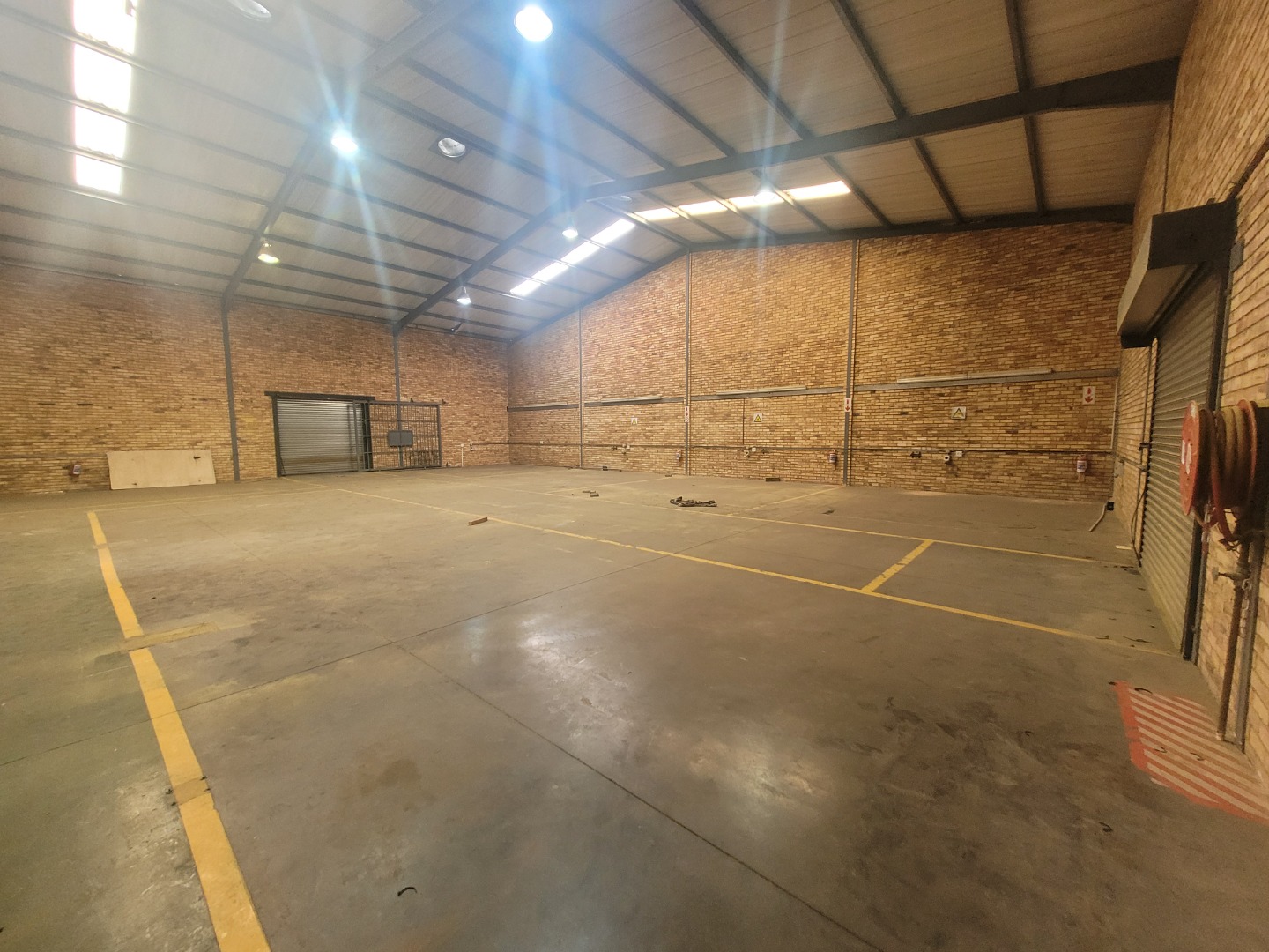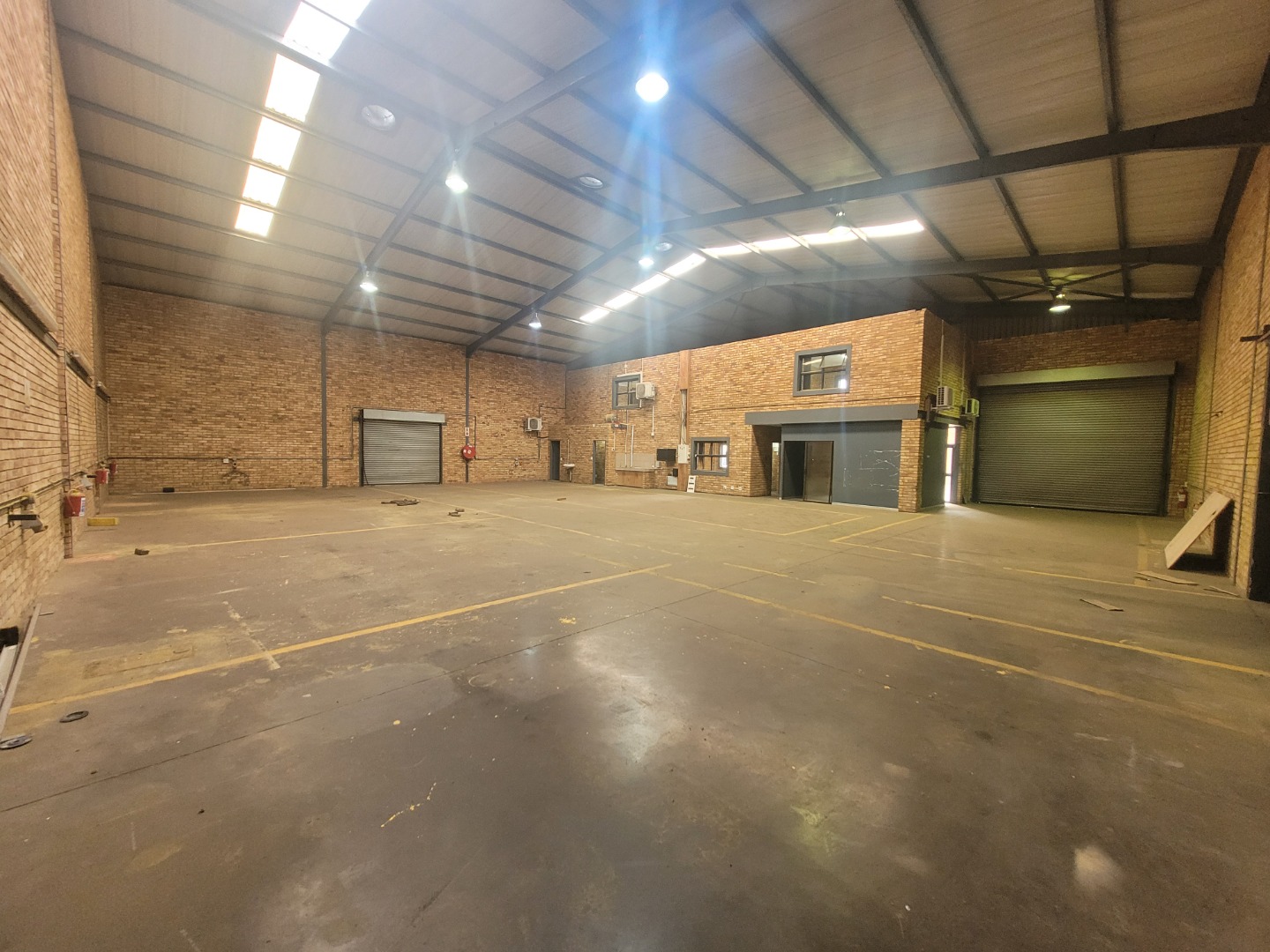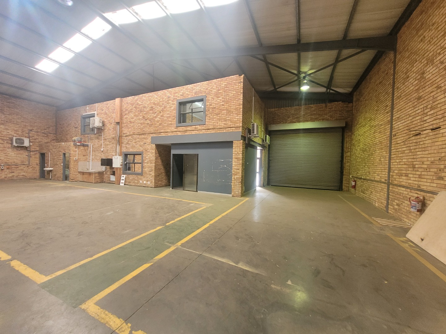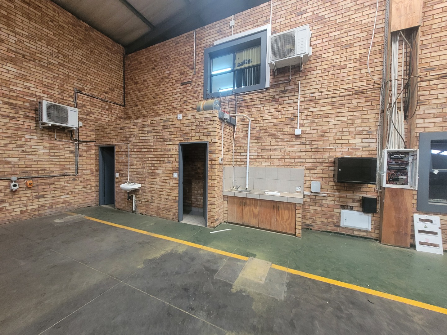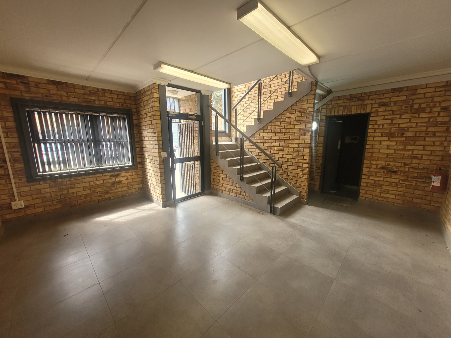 Presenting a distinguished commercial rental opportunity spanning 600.00 square metres, strategically located in the vibrant Brentwood Park area of Benoni, South Africa. This contemporary industrial/commercial property features a clean, multi-toned brick facade and a robust dark grey metal roof, projecting a professional corporate image. The exterior is complemented by a spacious asphalt parking lot offering 6 clearly marked bays, alongside a secure pedestrian entrance and two large roller shutter doors, ensuring efficient logistical operations and accessibility. The interior boasts a modern aesthetic, characterised by durable exposed brick walls and sophisticated grey tiled flooring throughout. The versatile layout includes expansive open-plan areas, ideal for collaborative workspaces or showroom displays, alongside several private rooms equipped with air conditioning units for optimal climate control. The property further benefits from two well-appointed kitchenettes and four contemporary bathrooms, designed with practicality and modern fixtures. Adaptability is a key feature of this premises, rendering it suitable for a diverse range of commercial enterprises, from light industrial operations to corporate offices or retail showrooms. The design facilitates seamless customisation to meet specific business requirements. Essential amenities include ample natural light filtering through multiple windows, supplemented by efficient fluorescent lighting, and numerous electrical outlets to support extensive operational needs. Situated within a secure complex, this property offers enhanced peace of mind for tenants and their assets. Brentwood Park provides a strategic commercial hub within Benoni, offering excellent connectivity and a conducive environment for business growth and development. Key Features: * Expansive 600.00 sqm commercial space * Modern exposed brick and tiled interiors * Two large roller shutter doors * Ample parking with 6 dedicated bays * Four bathrooms and two kitchenettes * Integrated air conditioning units * Located within a secure complex