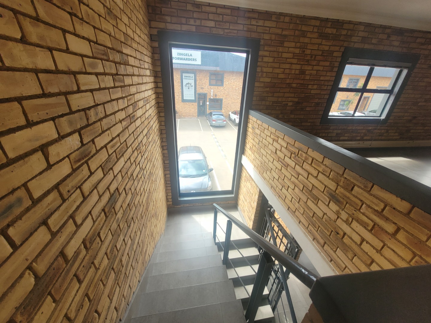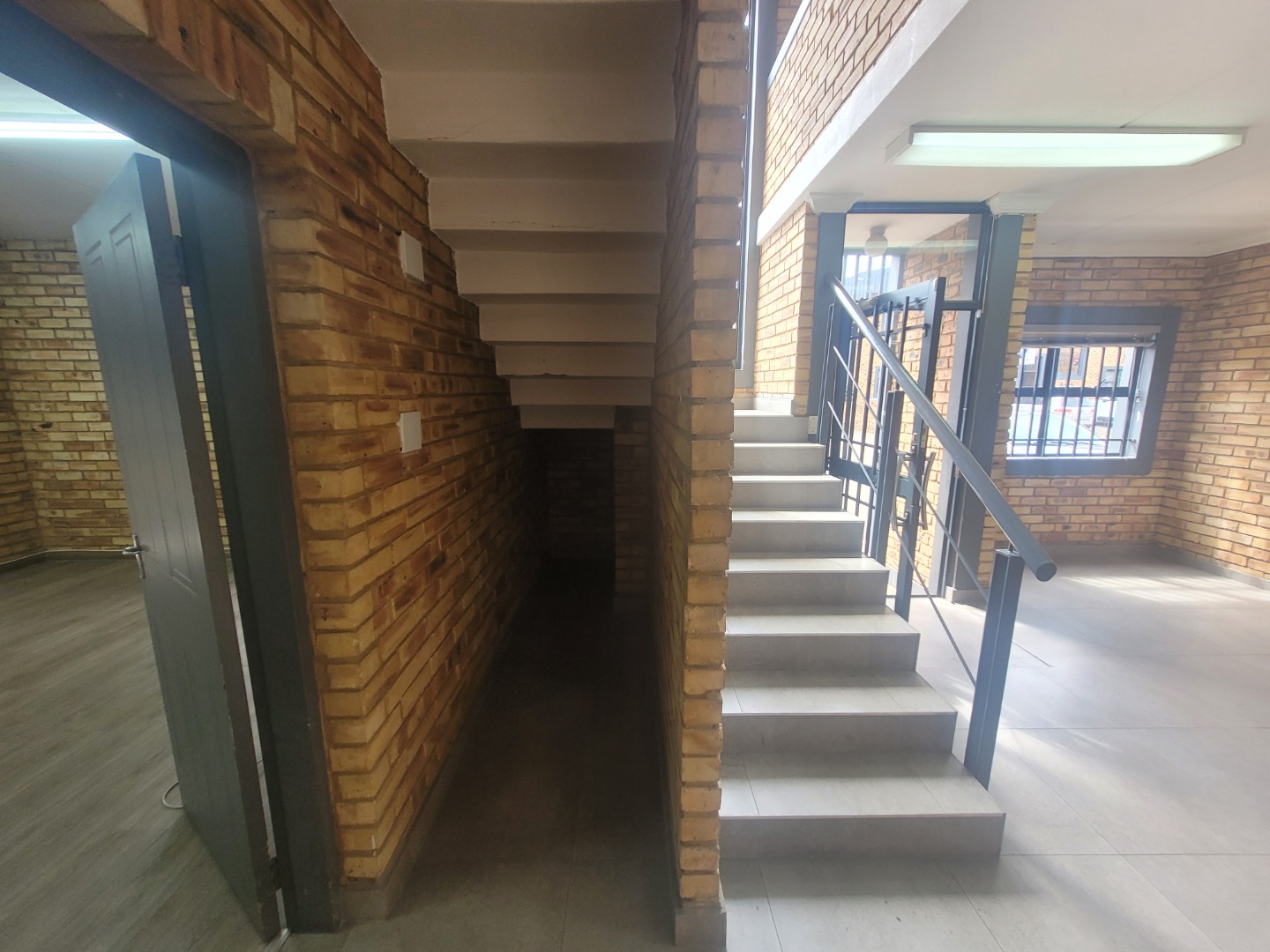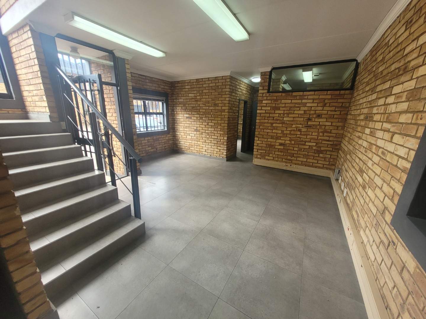 This expansive 600sqm commercial unit offers a highly versatile layout, ideal for businesses seeking a blend of office, showroom, and light industrial space. The interior features a modern industrial aesthetic with exposed brick walls and sleek grey tiled flooring, providing a contemporary and durable finish. The multi-level design includes a striking metal and glass staircase, connecting various functional areas. With multiple access points, including large roll-up doors for warehousing or industrial operations and separate entrances for office or retail, the unit is designed for operational efficiency. The adaptable floor plan can accommodate diverse business needs, from distribution and manufacturing to creative studios or corporate offices. The presence of two well-appointed kitchenettes and four bathrooms enhances functionality for staff and clients. The modern infrastructure, including ample electrical outlets and functional fluorescent lighting, ensures a productive working environment. This unit is well-suited for businesses requiring a professional front with practical back-end capabilities. Located within a well-maintained security complex, this property offers excellent accessibility and peace of mind. The complex features ample paved parking, clearly marked bays, and convenient drive-through access, facilitating smooth logistics and client visits. The modern brick and steel exterior, coupled with secure window bars and gates, ensures a professional and safe environment. The property's design, with large roll-up doors, caters efficiently to loading and unloading requirements. Brentwood Park in Benoni is a strategic location for commercial operations, offering good connectivity to major routes and business hubs. This established area provides a supportive environment for various enterprises, benefiting from its accessibility and local amenities. Key Features: * 600sqm versatile commercial floor space * Modern industrial aesthetic with exposed brick and tiled flooring * Four bathrooms and two kitchenettes * Large roll-up doors for industrial access * Ample paved parking within a secure complex * Modern metal and glass staircase * Excellent location in Brentwood Park, Benoni