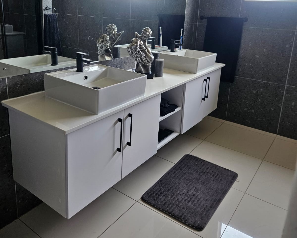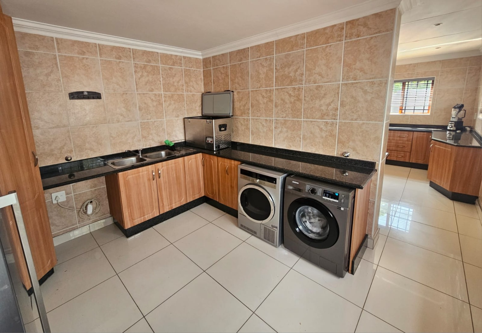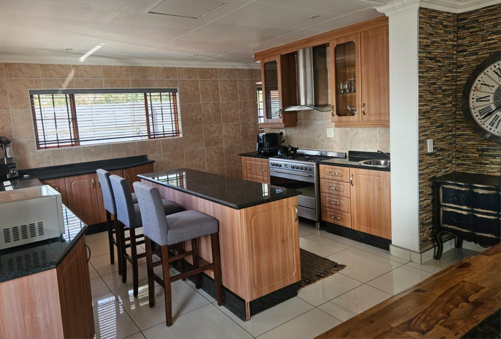 Discover this exceptional 4-bedroom, 3.5-bathroom family home available for rent in the desirable Rynfield suburb of Benoni. This modern residence offers an ideal blend of comfort and sophisticated living. The interior features an inviting open-plan layout, seamlessly connecting the lounge, dining room, and a spacious kitchen. The kitchen is a highlight, equipped with a gas stove, ample wooden cabinetry, dark granite countertops, and a central island with bar seating, perfect for entertaining. Modern tiled floors and abundant natural light enhance the contemporary feel throughout.