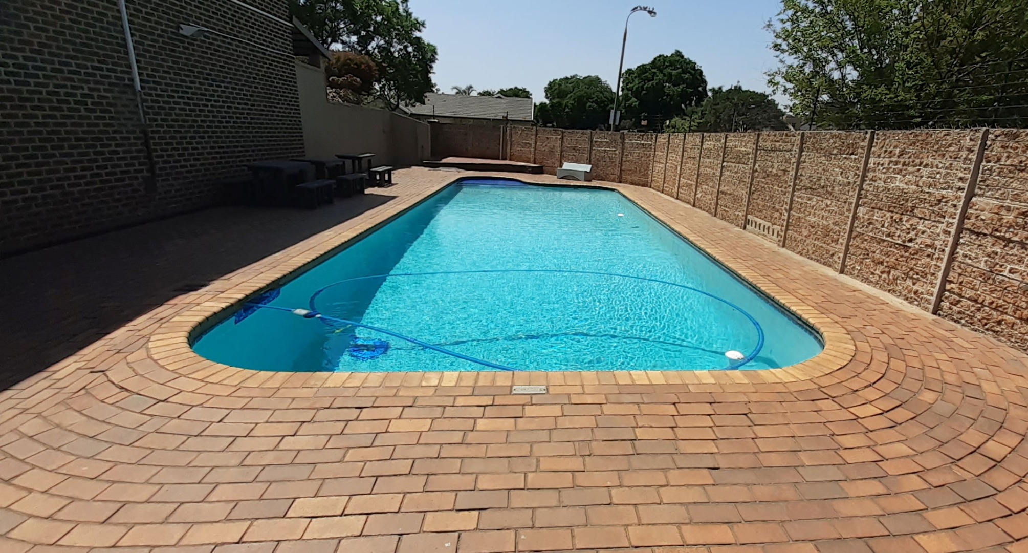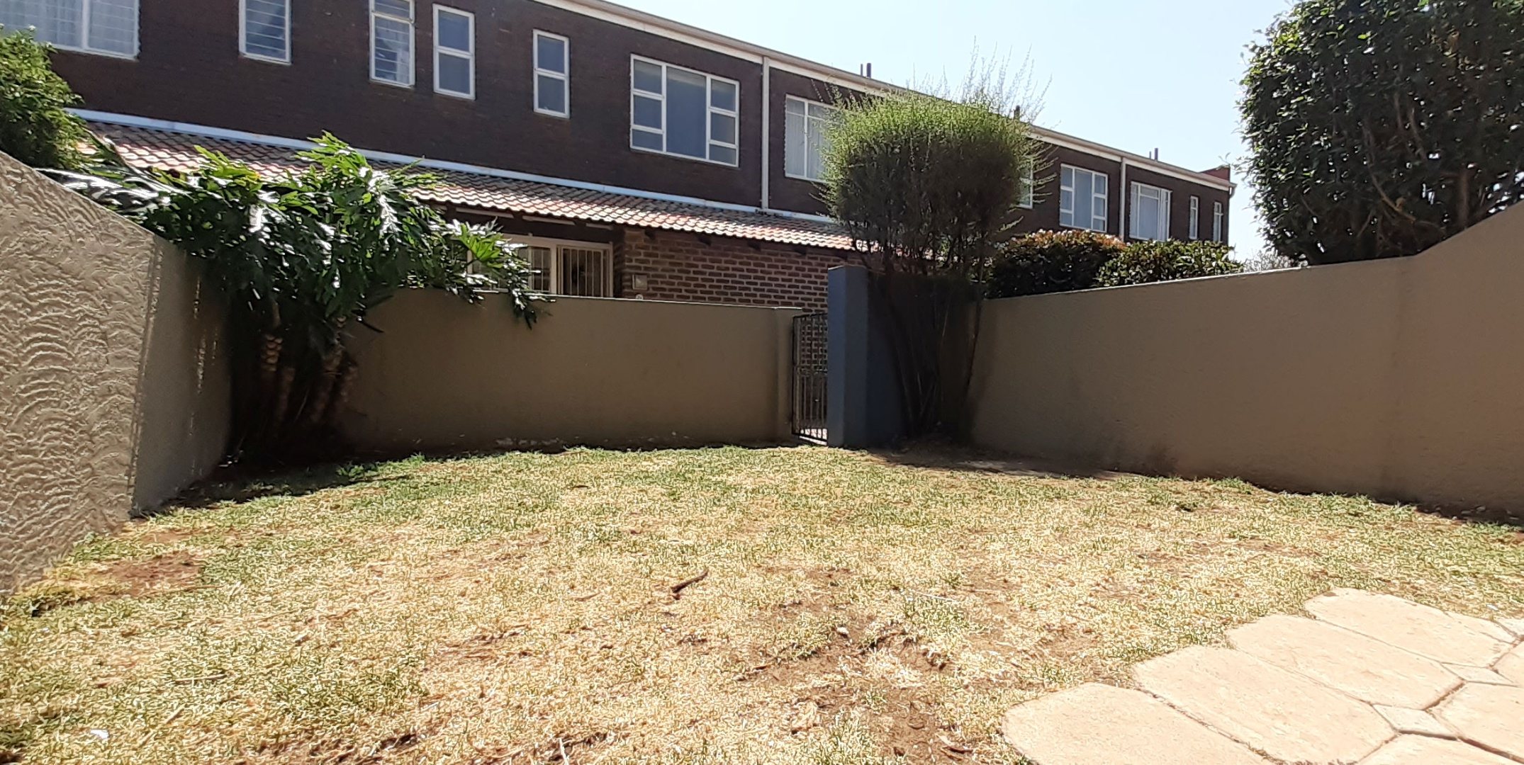 Additional features include a separate laundry, a private walled garden accessible from the living room, one lock-up garage suitable for a small vehicle, and one open parking bay. The complex is secure, neat, and well managed, with a communal swimming pool for residents to enjoy.