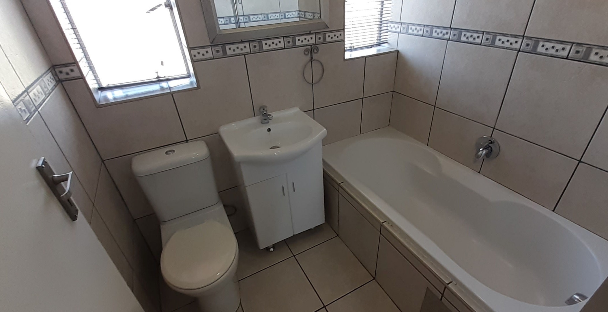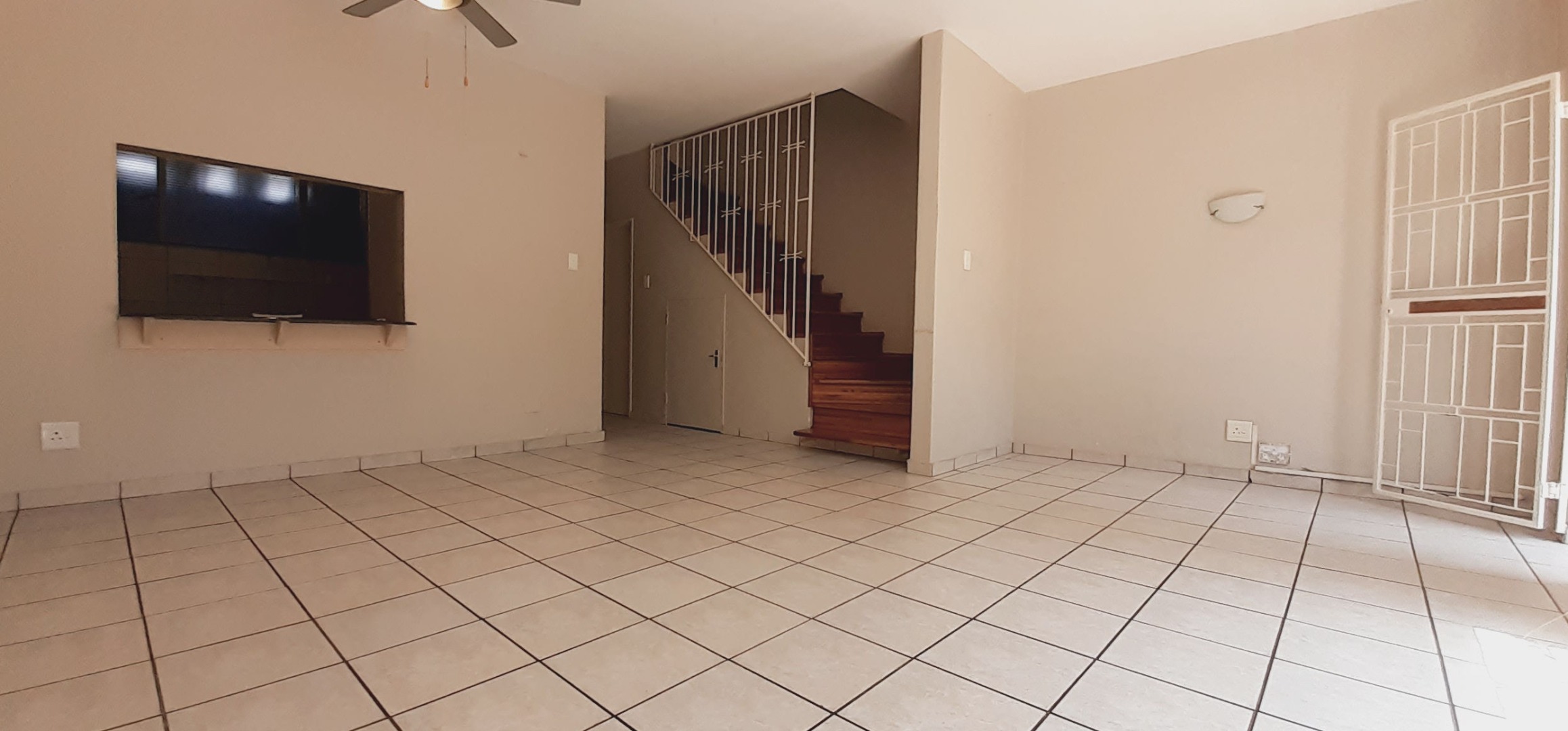 A neat and well-maintained 2-bedroom duplex flat situated in popular Dayan Glen, Boksburg. The unit offers an open-plan living area, a spacious kitchen with a convenient serving hatch and a guest toilet downstairs. Upstairs features the main bedroom and second bedroom, both with ample built-in cupboard space, as well as a full bathroom with a shower over the bath.