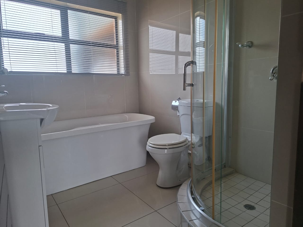 There are 2 x bedrooms, both feature large windows and built-in cupboards, offering bright, comfortable living spaces. The apartment boasts two bathrooms: an en-suite with a shower, toilet, and basin, and a full stylish bathroom, with a luxurious, bathtub and a shower—ideal for relaxing after a long day.