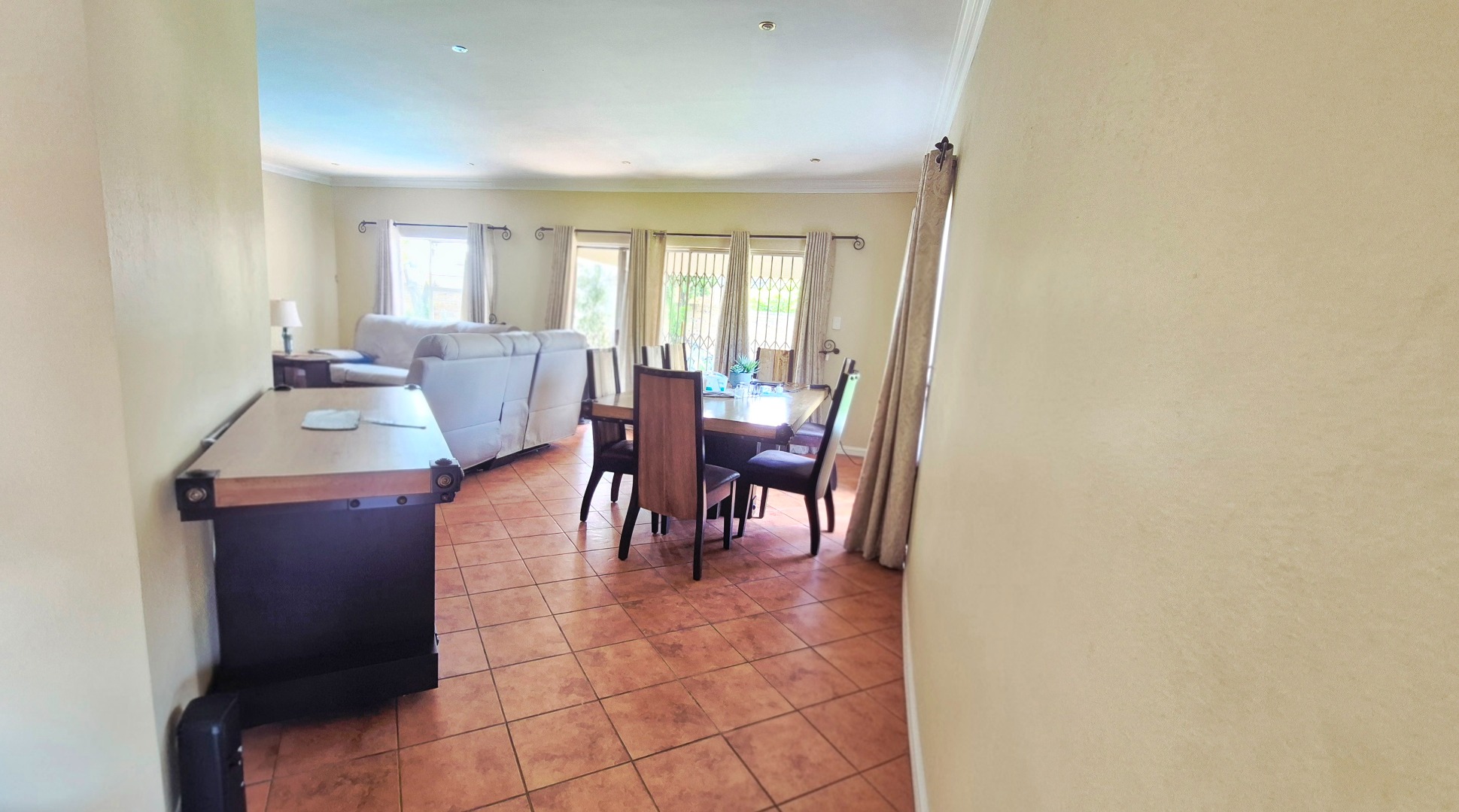 Discover comfortable living in this inviting 3-bedroom, 2-bathroom home available for rent in the secure Ravenswood estate, Boksburg. This property offers a well-designed layout featuring an open-plan lounge and dining area, providing a spacious and versatile environment for daily living and entertaining. The kitchen includes a scullery and pantry, catering to practical needs, while durable tiled flooring and neutral finishes create a welcoming atmosphere throughout the main living spaces. Step outside to a private oasis, complete with a sparkling swimming pool secured with a safety net, perfect for family enjoyment. The property boasts a well-maintained, lush garden and a covered patio, ideal for outdoor relaxation and entertaining. Parking is ample with a double garage and an additional four open parking bays, ensuring convenience for residents and guests. Pets are allowed, making this a true family-friendly residence. Situated within a gated community and security estate, this home benefits from enhanced safety features including an access gate, electric fencing, and an intercom system. Security gates on windows further contribute to peace of mind. The property's location in Ravenswood, Boksburg, offers a suburban lifestyle with convenient access to local amenities and transport routes. Key Features: * 3 Bedrooms, 2 Bathrooms (1 en-suite) * Open-plan lounge and dining areas * Private swimming pool with safety net * Double garage plus 4 open parking bays * Covered patio and established garden * Secure estate living with access control * Pets allowed * Scullery and pantry