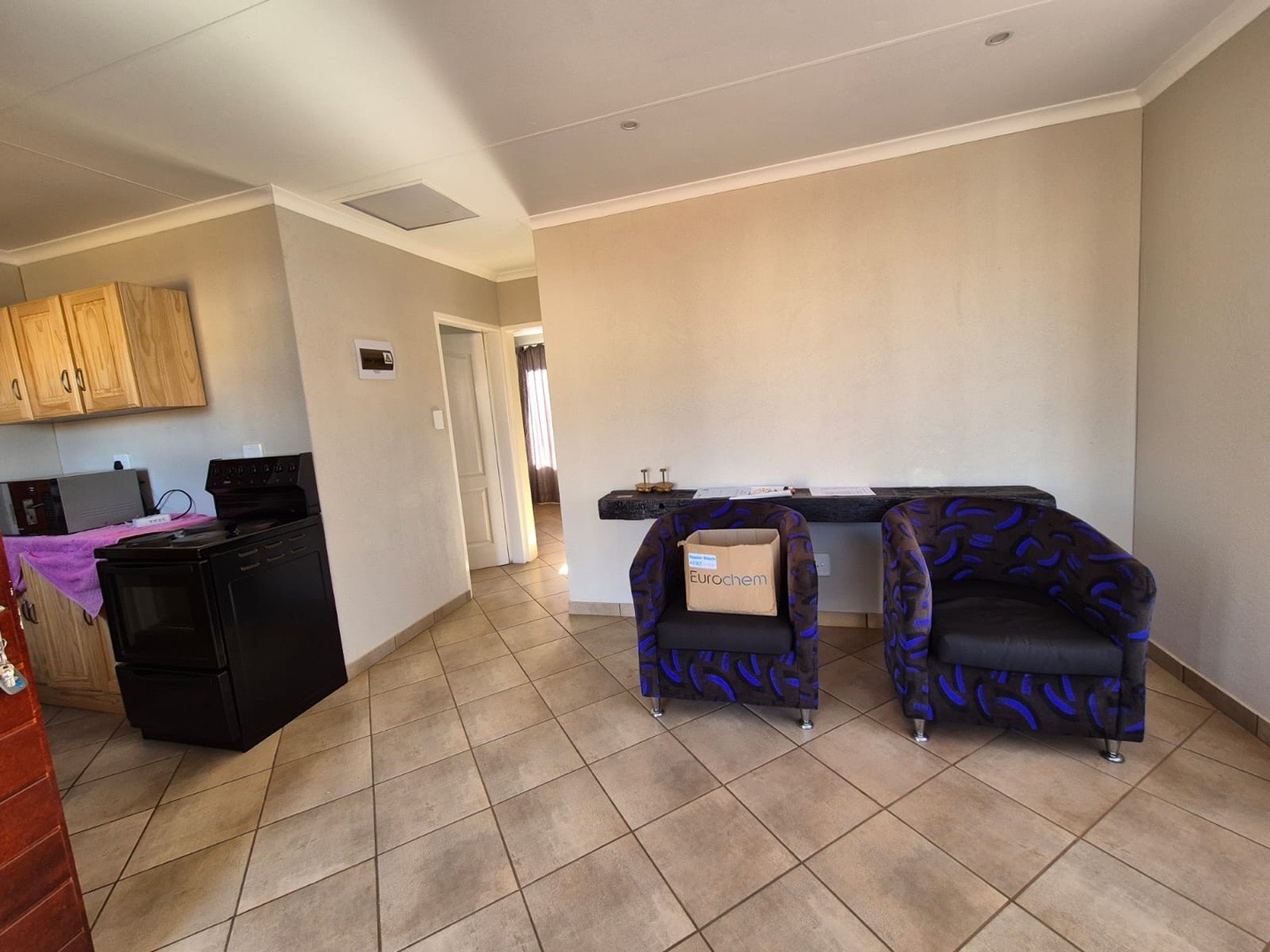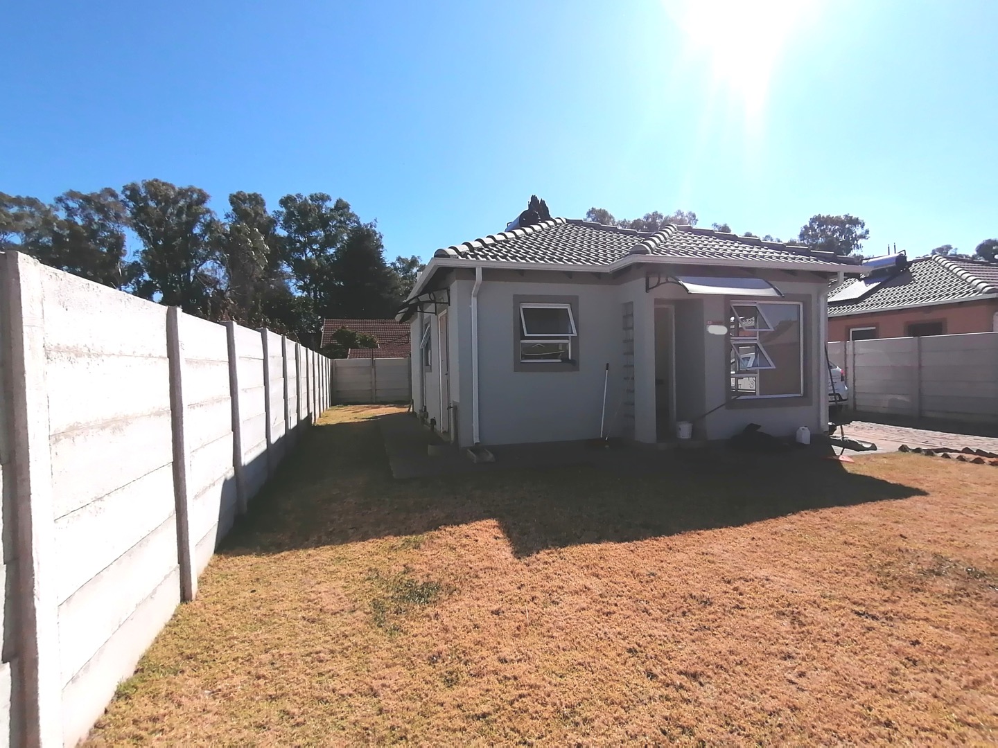 Lovely neat newly built home ideal for a small family, lounge, kitchen, 2 bedrooms 1 bathroom lovely private garden with built in braai. Lots of space for the kids to play.