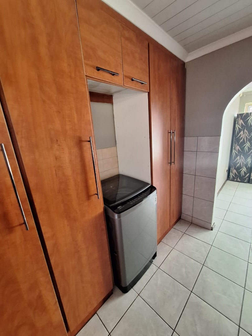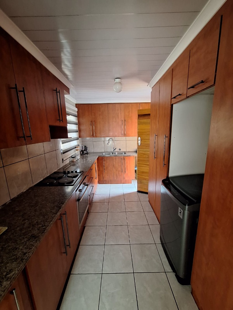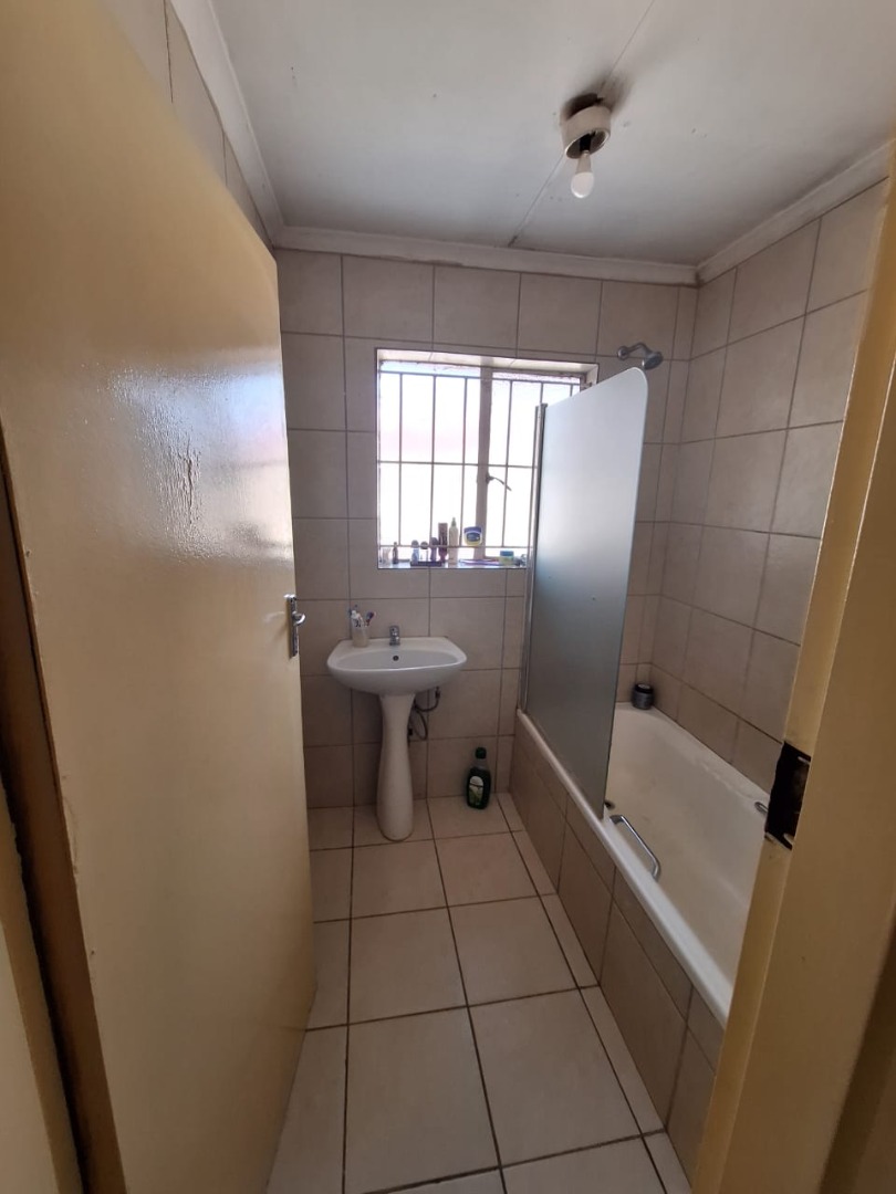 This inviting 2-bedroom, 1-bathroom house in Birch Acres, Kempton Park, offers a practical and comfortable residential rental opportunity. The single-story brick home features a tiled roof and is set on a generous 880 sqm erf. The interior layout includes a dedicated lounge, a dining room, and a functional kitchen, all designed for everyday convenience. The kitchen is well-appointed with extensive warm-toned wooden cabinetry, dark granite-look countertops, a built-in hob and oven, and a double sink, complemented by durable tiled flooring and backsplash. The spacious lounge area provides ample room for relaxation, featuring tiled flooring for easy maintenance. Both bedrooms are fitted with clean tiled flooring and benefit from natural light, offering a neutral canvas. The single bathroom is fully tiled, equipped with a pedestal sink, and includes a bathtub with a shower attachment and glass screen, ensuring practicality. Security is enhanced with security bars present on windows and the main door. The property offers substantial outdoor space, including natural treed surroundings, and boasts four dedicated parking spaces, catering to residents with multiple vehicles or guests. This rental property is ideally suited for a small family or professionals seeking a well-located home with essential amenities. Birch Acres, within the vibrant city of Kempton Park, offers a suburban lifestyle with convenient access to local facilities and transport routes. Key Features: * 2 Bedrooms, 1 Bathroom * Spacious Lounge and Dining Room * Functional Kitchen with Built-in Oven/Hob * Tiled Flooring Throughout * Security Bars on Windows and Door * 4 Parking Spaces * 880 sqm Erf Size * Suburban Kempton Park Location