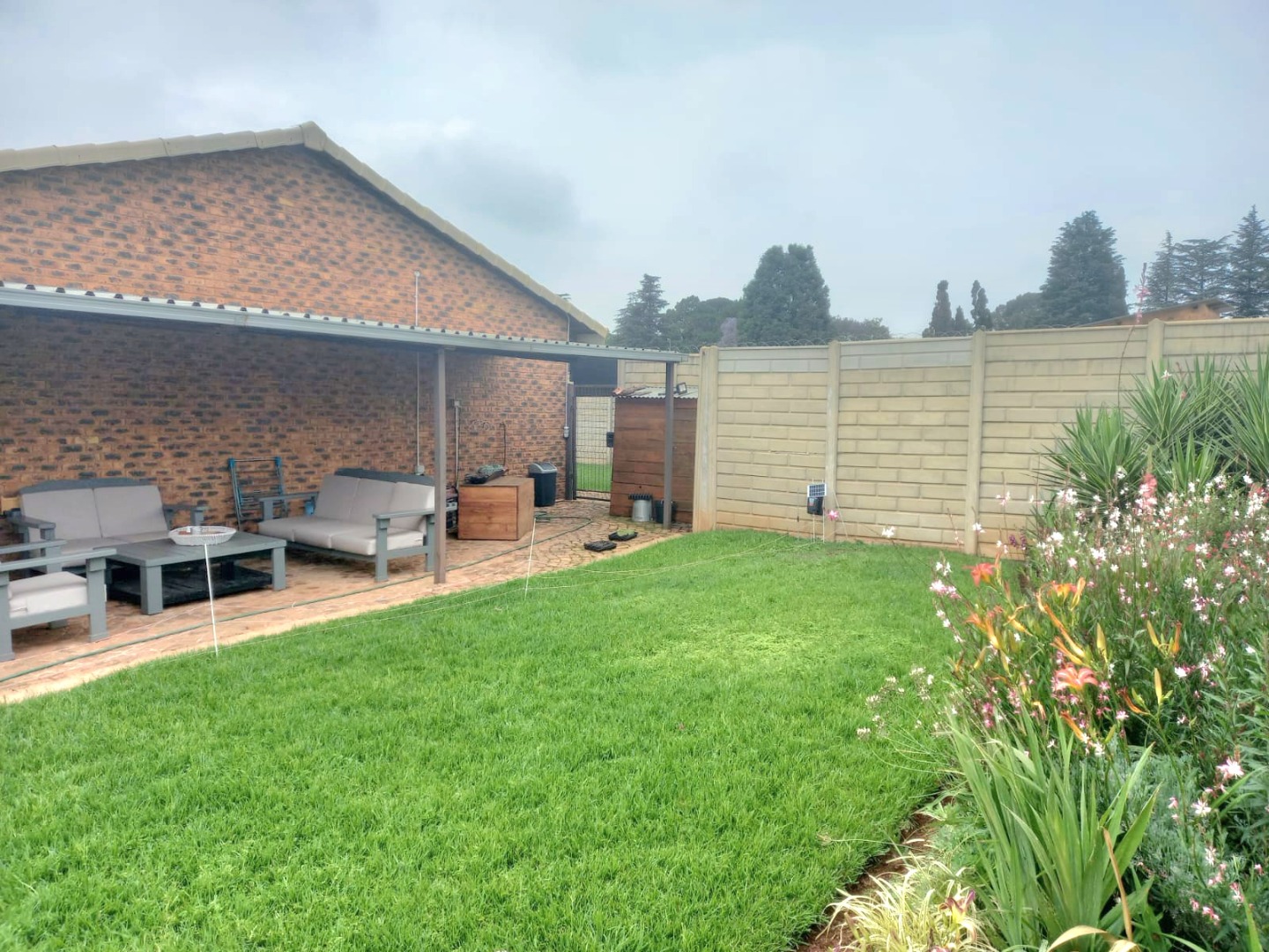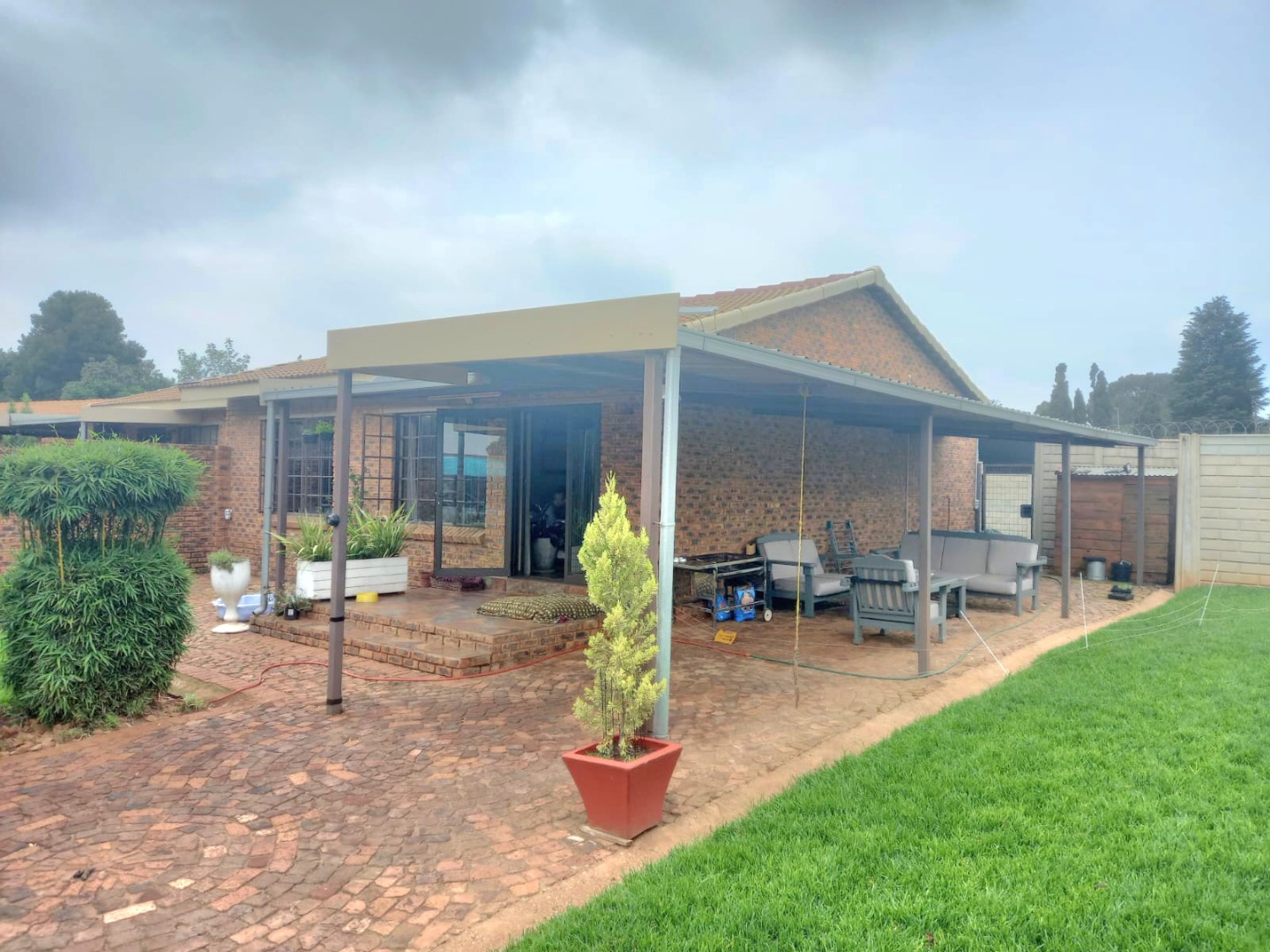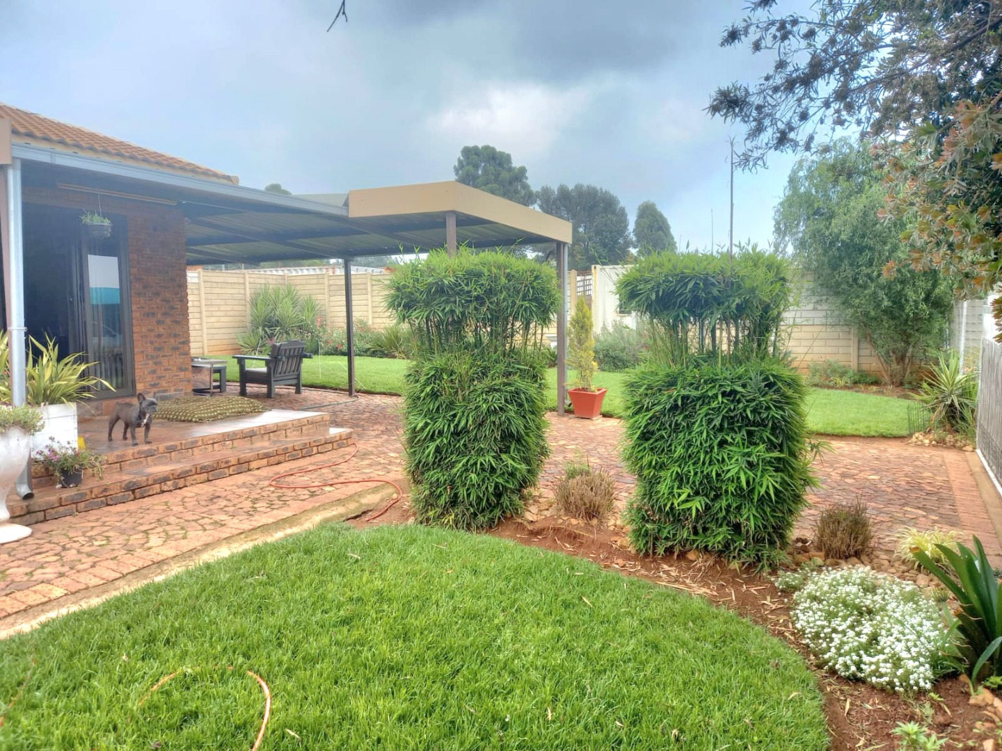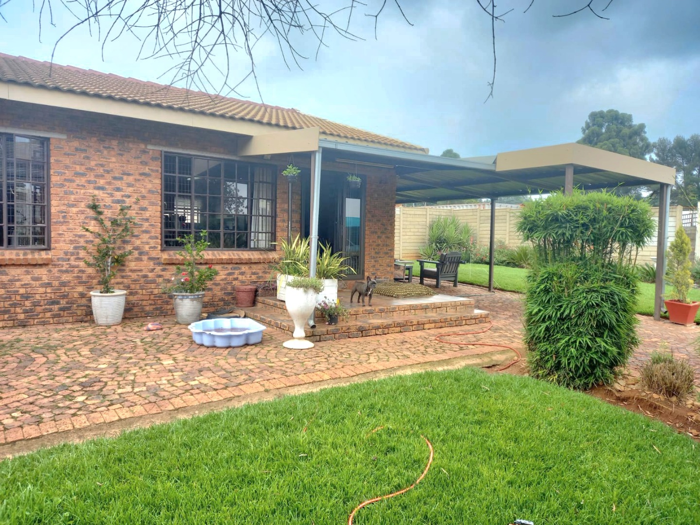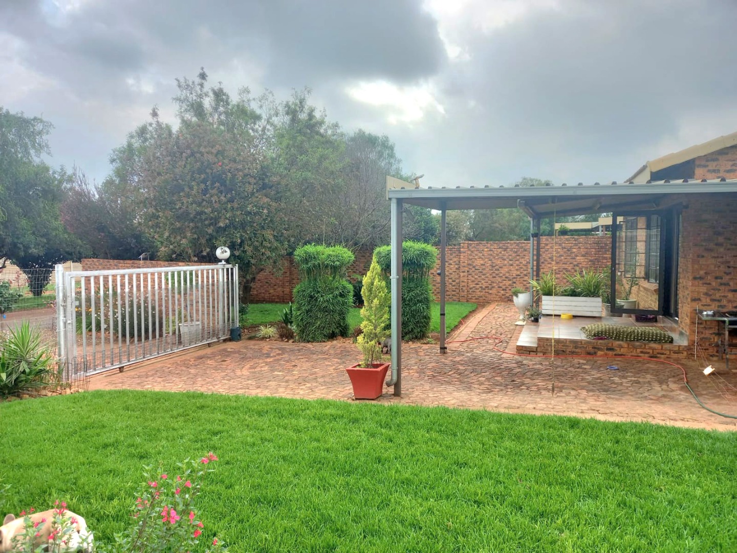 Outside, you'll discover a fantastic space for outdoor living and entertaining. There's a spacious, brick paved patio area that's partially covered, ideal for braais or just chilling out, rain or shine. The well maintained garden is a real highlight, with a lush green lawn, mature trees providing lovely shade, and diverse, colourful plantings that create a private and serene atmosphere. Plus, with a generous 10 parking spaces available, you'll never have to worry about parking, and your furry friends are welcome too, as pets are allowed!