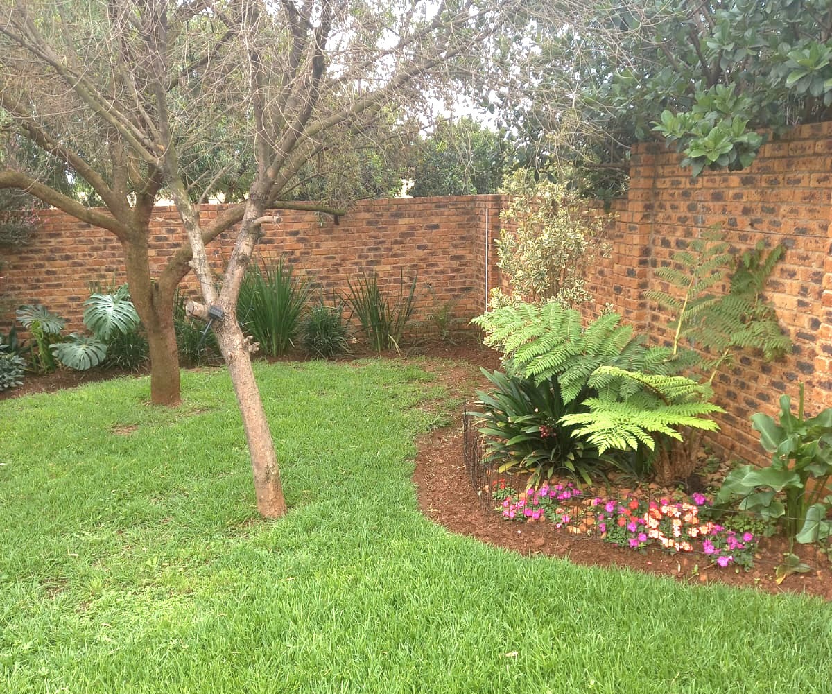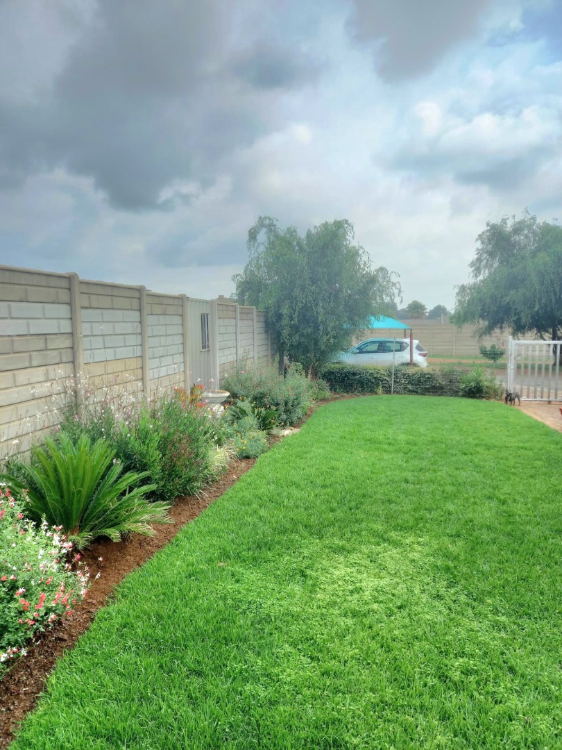 Outside, you'll discover a fantastic space for outdoor living and entertaining. There's a spacious, brick paved patio area that's partially covered, ideal for braais or just chilling out, rain or shine. The well maintained garden is a real highlight, with a lush green lawn, mature trees providing lovely shade, and diverse, colourful plantings that create a private and serene atmosphere. Plus, with a generous 10 parking spaces available, you'll never have to worry about parking, and your furry friends are welcome too, as pets are allowed!