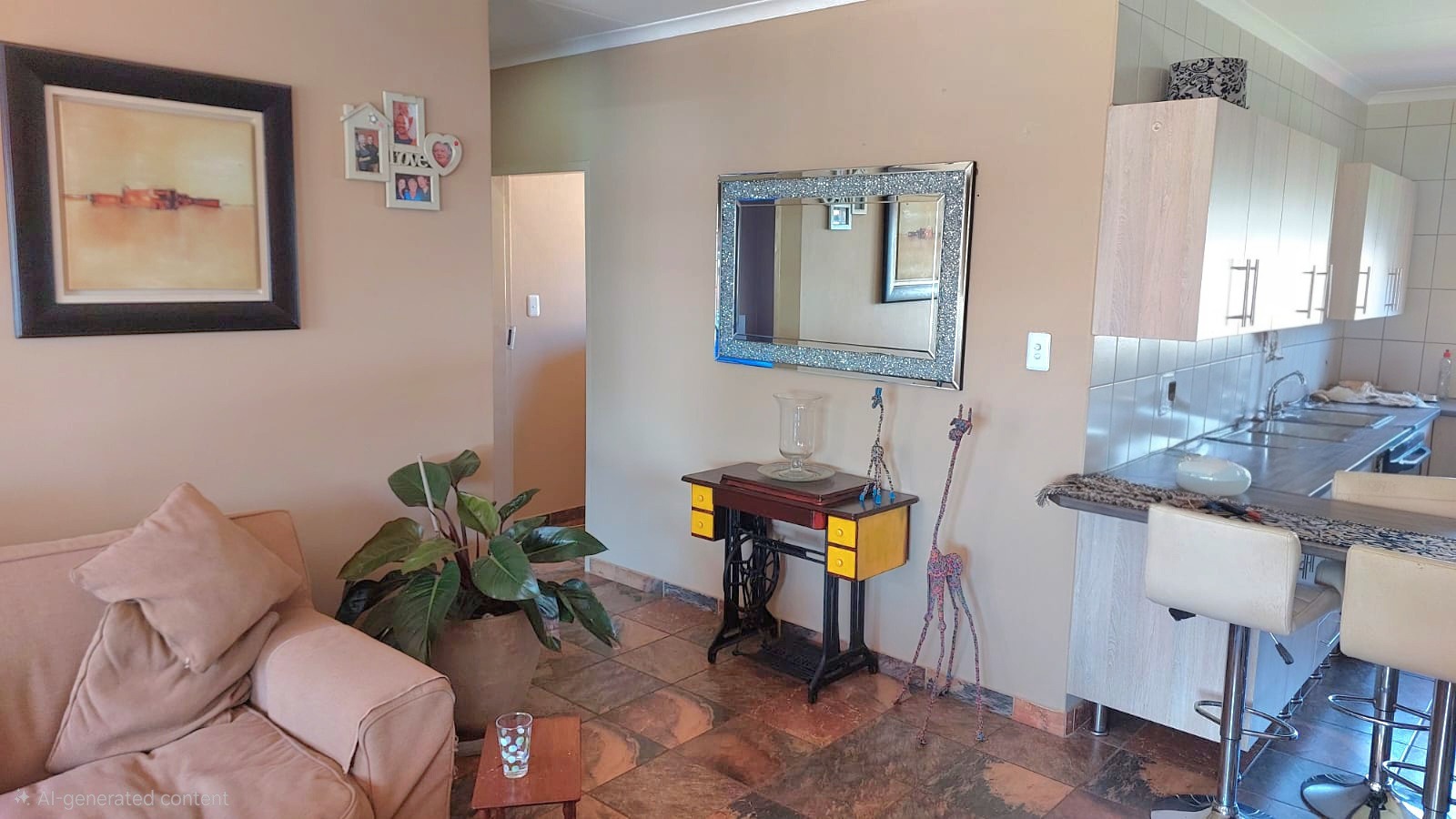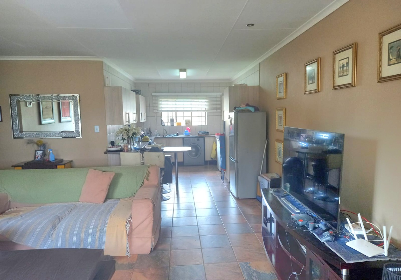 Step inside and you'll find an inviting open plan living area, seamlessly connecting the lounge, dining room, and a practical kitchen. The kitchen boasts modern cabinets and, like the rest of the home, features durable tiled flooring, making it super easy to keep clean. The bathroom is a real treat, featuring both a classic clawfoot bathtub and a separate glass-enclosed shower – perfect for unwinding after a long day. Large bedrooms with built-in cupboards.
