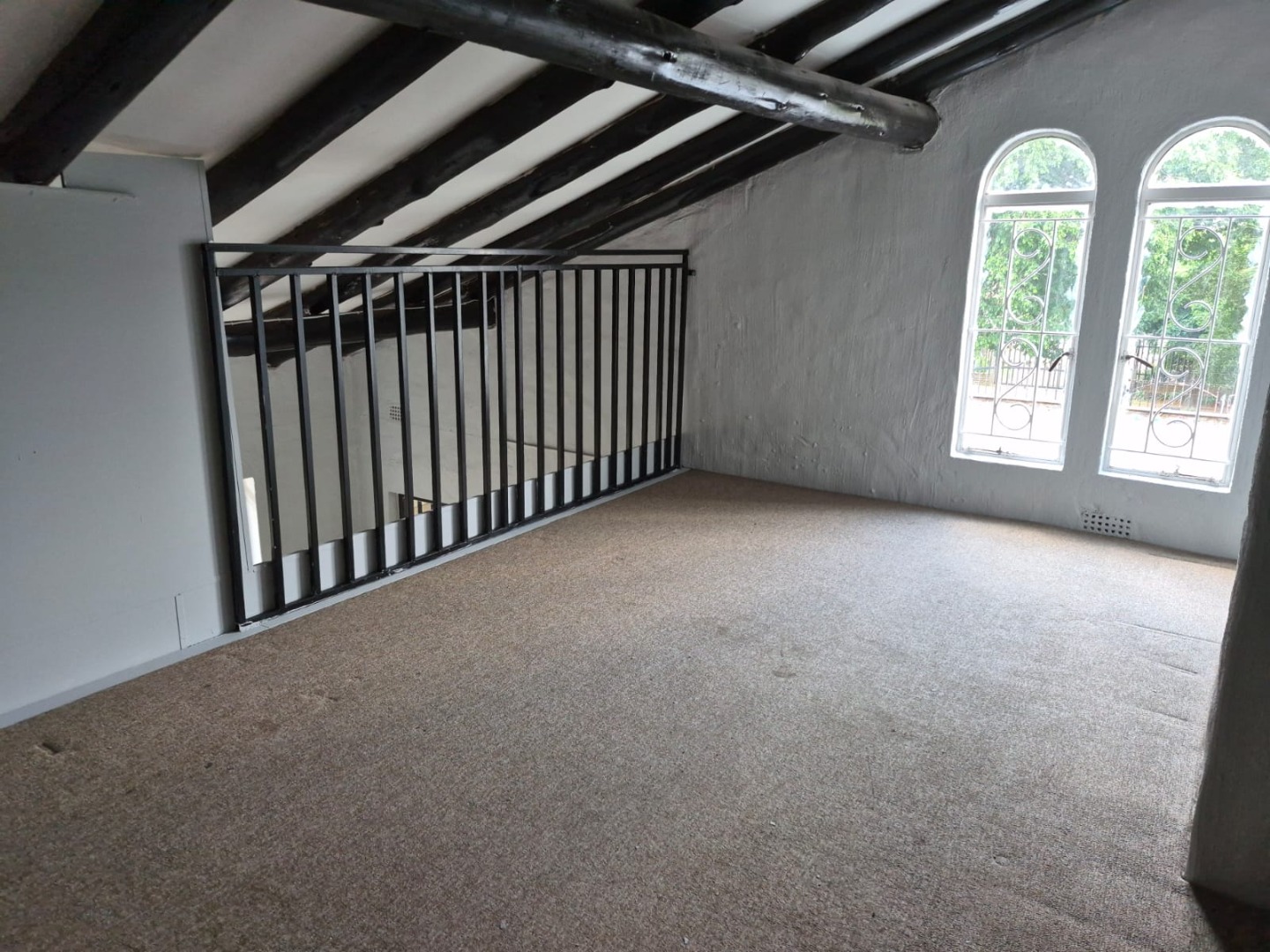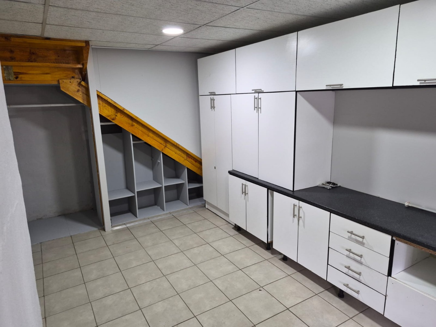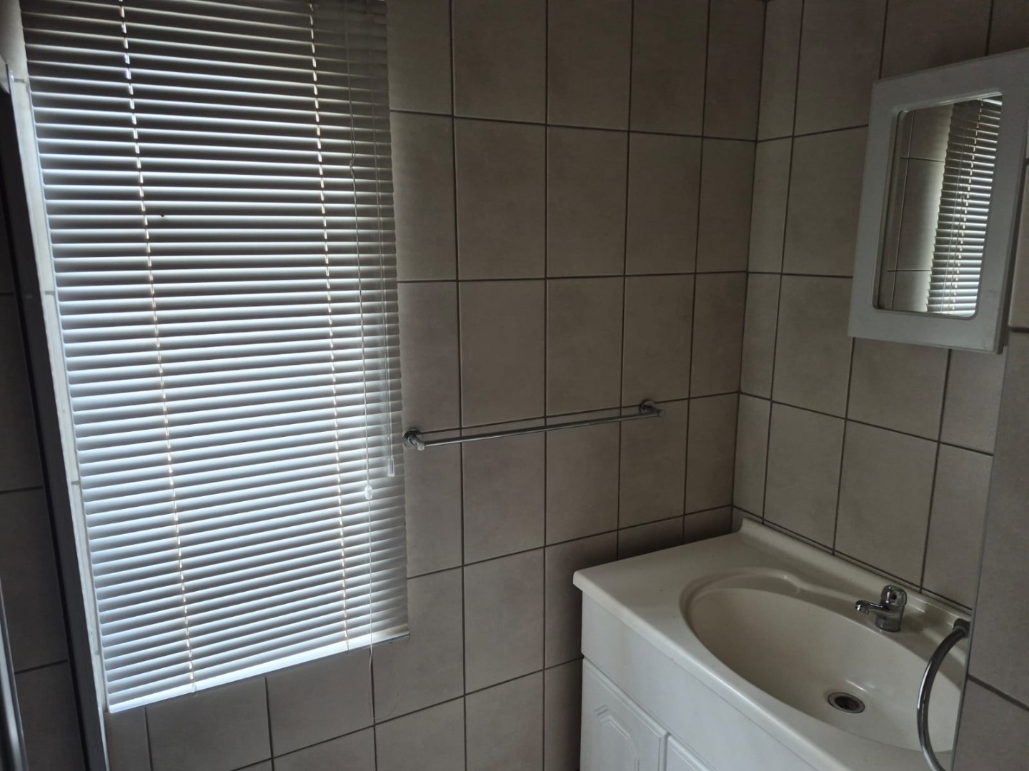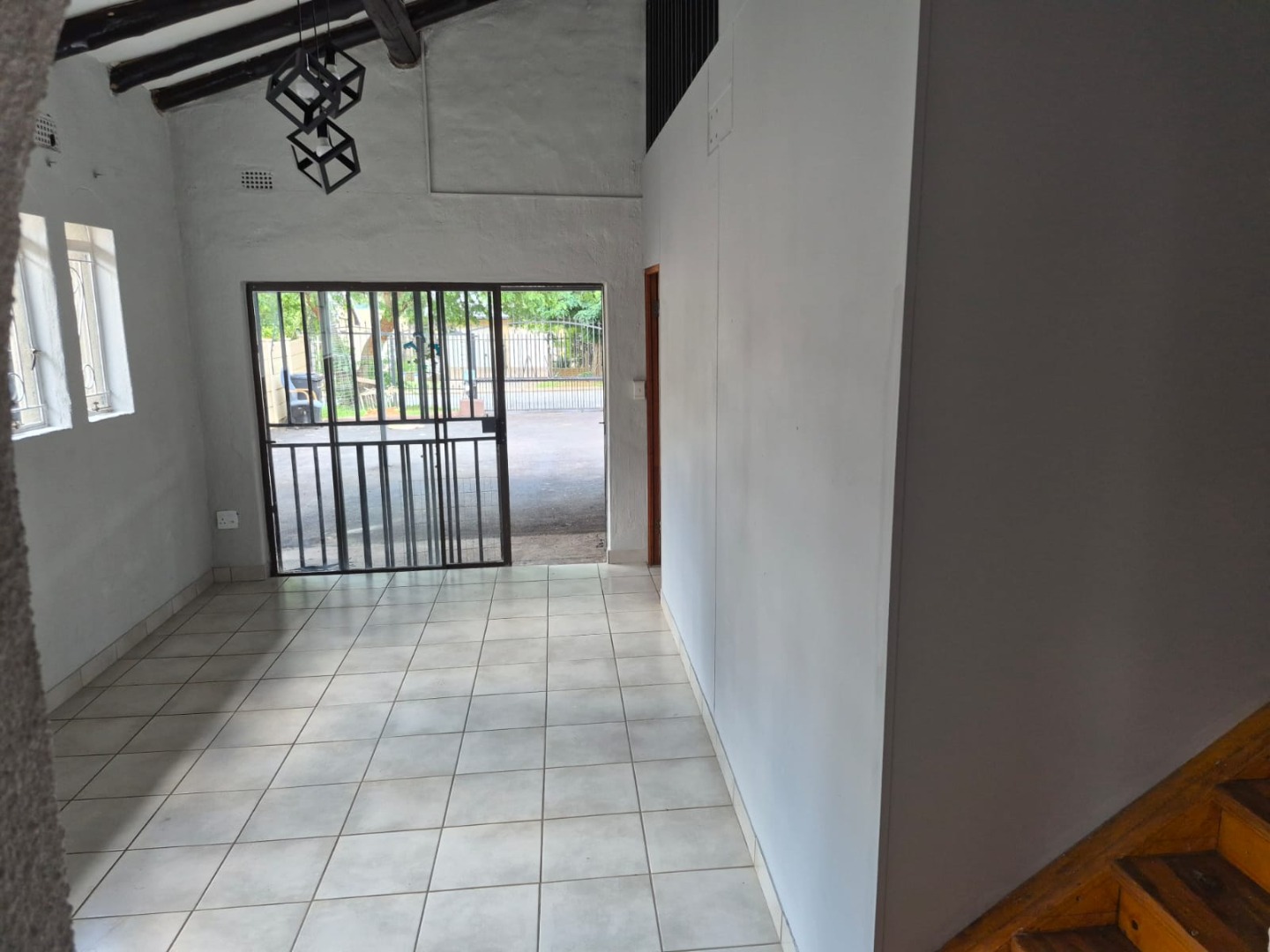 This inviting 2-bedroom, 1-bathroom rental in Glen Marais offers a practical layout designed for comfortable living. The interior boasts durable tiled flooring, complemented by exposed wooden ceiling beams and unique light fixtures that add character. The bright lounge area provides a clean canvas for personalisation, while the kitchen features an L-shaped design with light wood cabinetry, dark speckled countertops, and a built-in gas hob, all illuminated by charming arched windows.