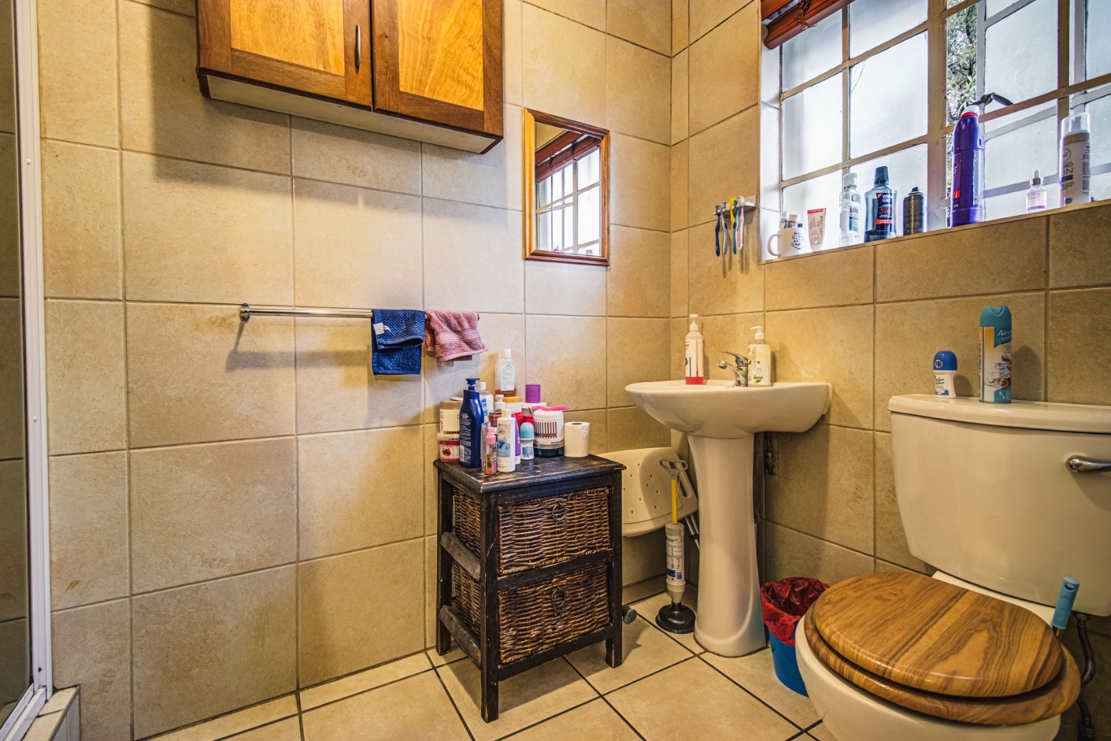 Accommodation comprises four well-sized bedrooms, all featuring built-in cupboards for optimal storage. Three bedrooms are conveniently located downstairs, while an additional bedroom is situated upstairs. The home benefits from two bathrooms, with the main bedroom enjoying the privacy and comfort of an en-suite facility.