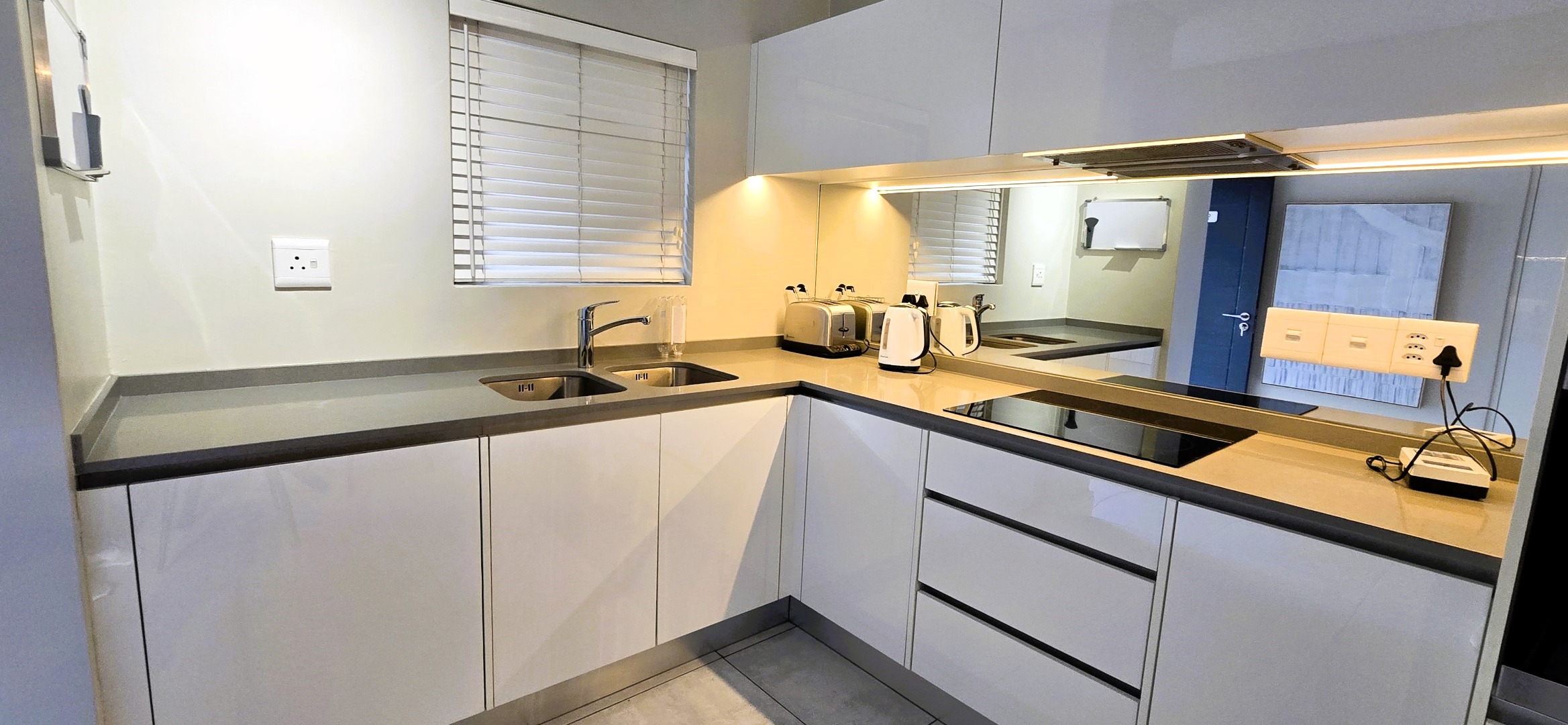 Hey there! Looking for a super stylish and comfy place to call home? Check out this awesome 2-bedroom, 2-bathroom apartment nestled in the fantastic Serengeti Lifestyle Estate in Kempton Park. It’s got a modern, open-plan vibe that connects the kitchen, dining, and lounge areas seamlessly, making it perfect for chilling out or having friends over. The kitchen is a real highlight with its sleek white cabinets, integrated hob, and cool mirrored backsplash – super functional and looks great too!