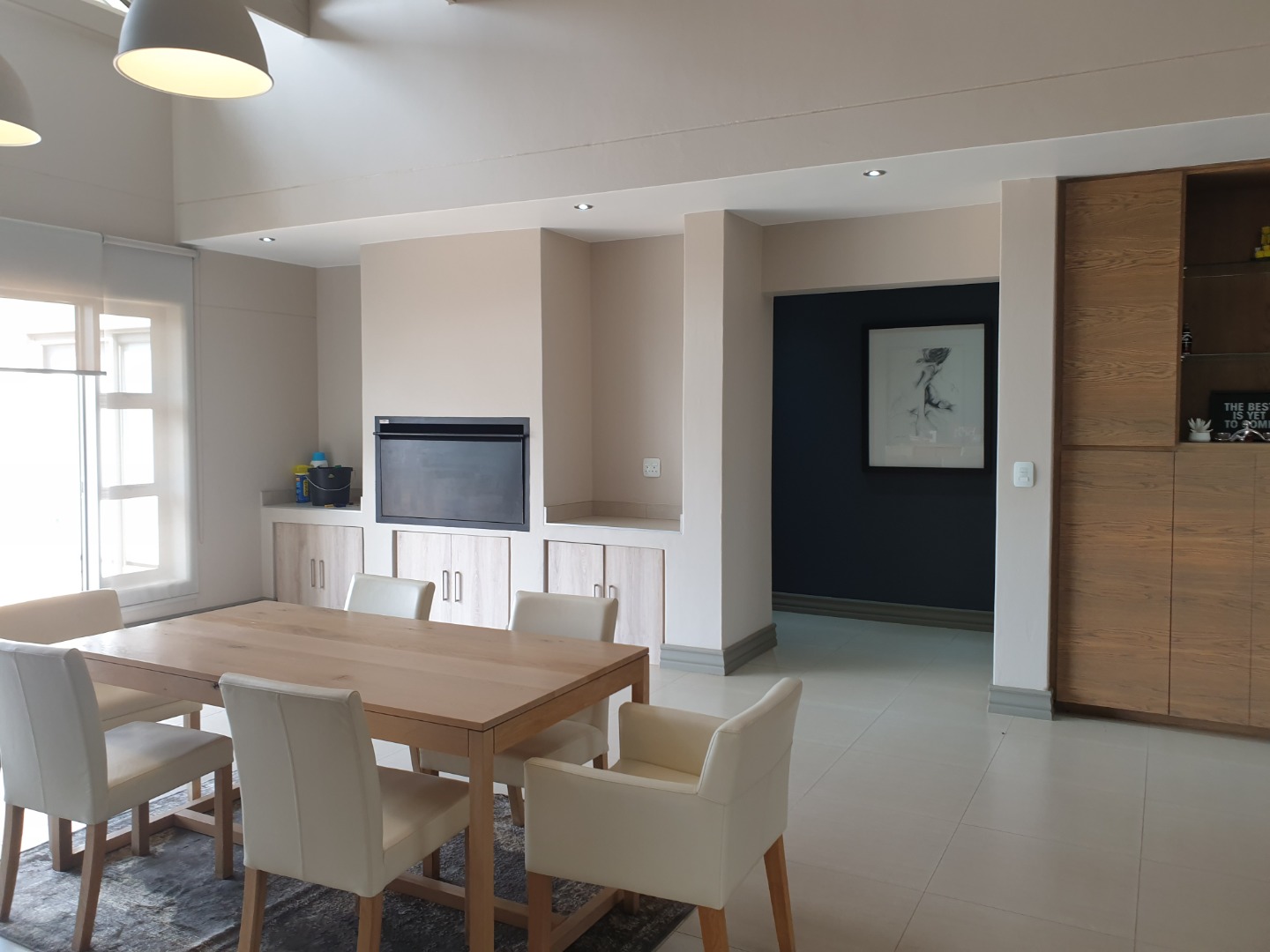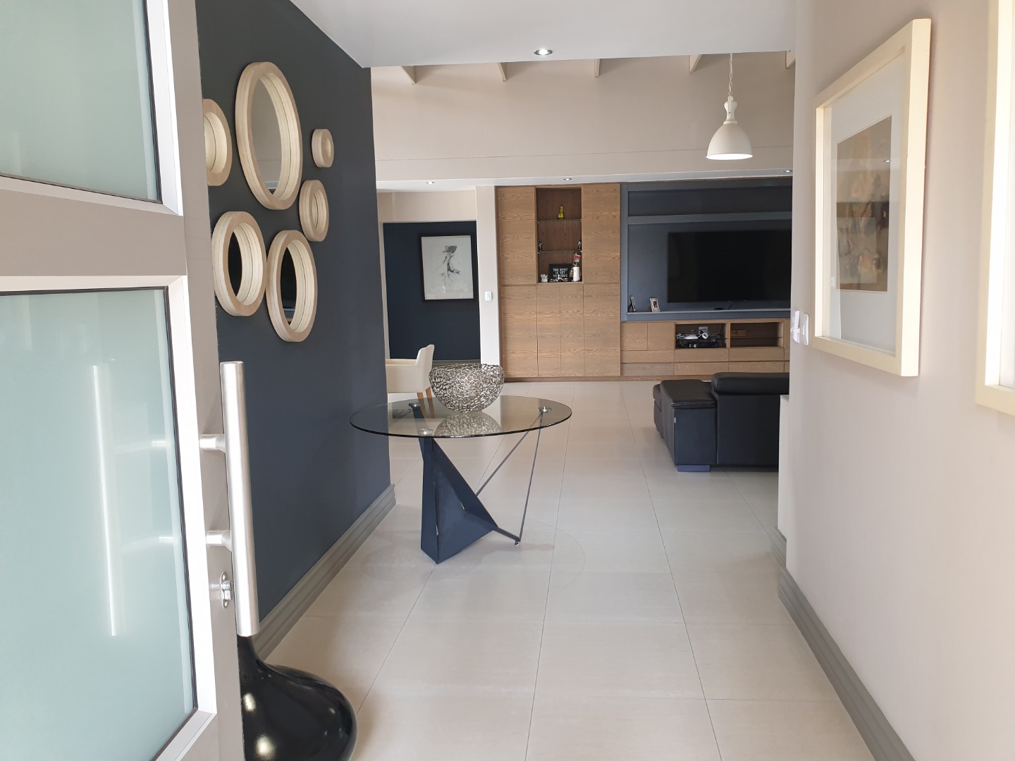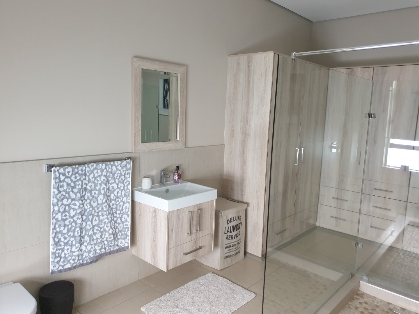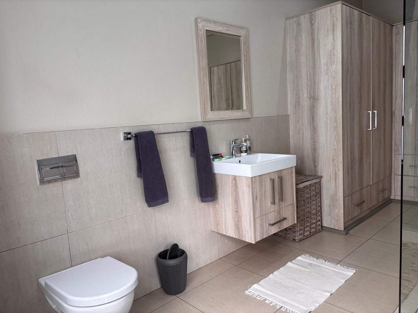 This lovely 4-bedroom, 4-bathroom home in Serengeti Lifestyle Estate is ready for you to move in! You'll love the modern design with its clean lines and a super spacious open-plan layout that just feels so welcoming. Imagine cooking up a storm in the contemporary kitchen, complete with light wood-grain cabinetry, a big island with a gas hob, and plenty of counter space. Plus, there's a handy scullery and a dedicated pantry to keep everything neat and tidy. The high vaulted ceilings and exposed beams in the living area really open up the space, letting in loads of natural light, making it perfect for family time or entertaining friends.