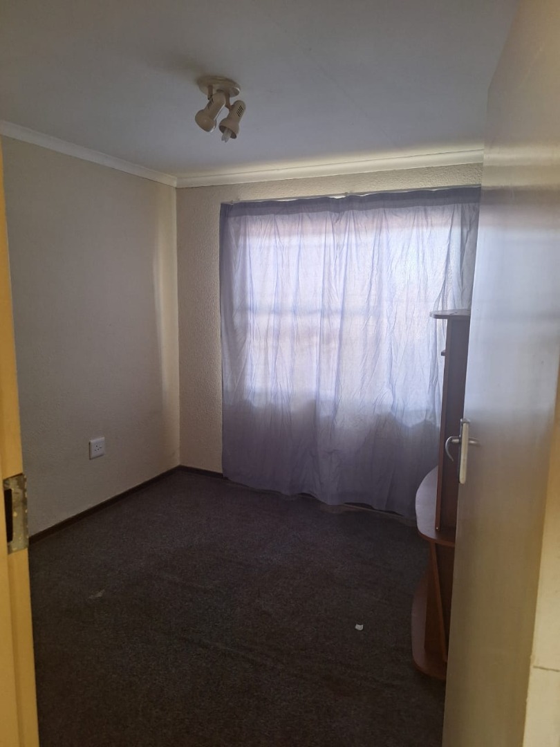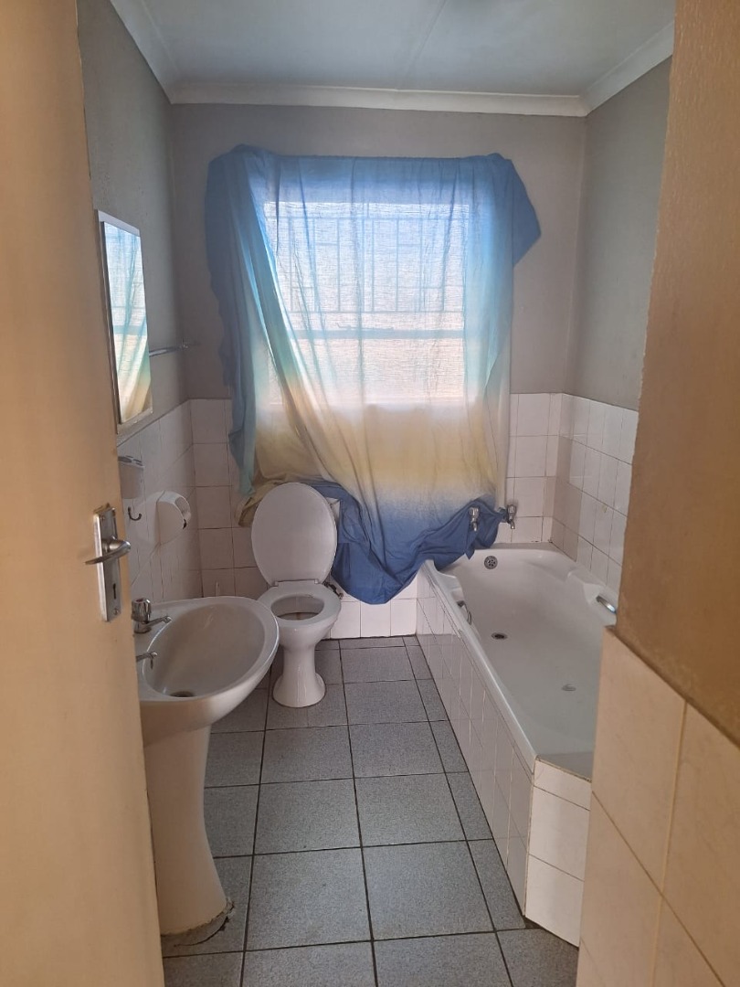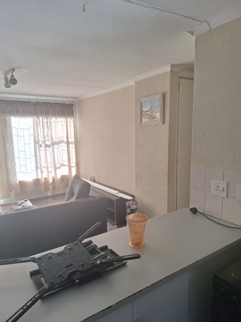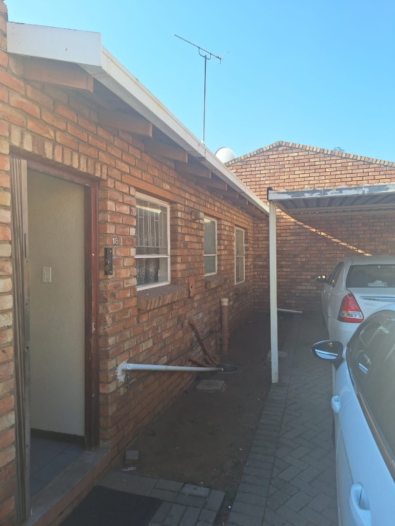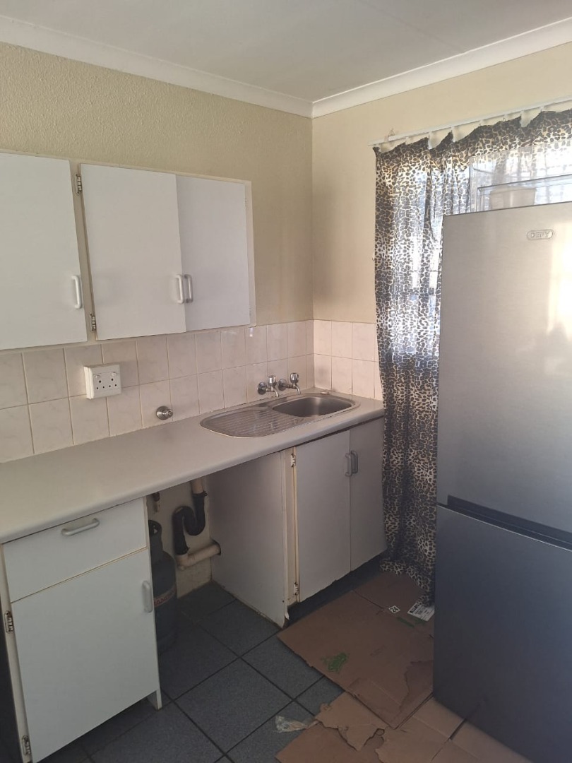 Discover this functional two-bedroom, one-bathroom rental unit located within a secure complex in Terenure, Kempton Park. Spanning 63 square meters, this compact home offers a practical layout ideal for individuals or small families seeking a manageable living space. The property features a welcoming gated entrance, ensuring controlled access and enhanced security for residents. Inside, the unit comprises a comfortable lounge area and a functional kitchen equipped with white upper and lower cabinets, a double stainless steel sink, and white countertops, complemented by a tiled backsplash. A refrigerator is included, providing essential appliances. The bedroom is carpeted and benefits from natural light, while the bathroom offers a bathtub, pedestal sink, and toilet, with tiled floors and security bars on the window for peace of mind. Outdoor amenities include a dedicated carport for sheltered parking and a private, compact patio area, perfect for quiet relaxation. The complex boasts a brick boundary wall topped with an electric fence, further enhancing security. Residents can also enjoy a green lawn area and the convenience of a small wooden shed for additional storage. Situated in Terenure, Kempton Park, this location offers convenient access to local amenities and transport routes, making daily commutes and errands straightforward. This rental unit provides a secure and practical base in a well-established community. Key Features: * Two Bedrooms * One Bathroom * One Lounge * Functional Kitchen with Refrigerator * 63 sqm Floor Size * Gated Complex Access * Electric Fencing * Dedicated Carport * Private Patio Area