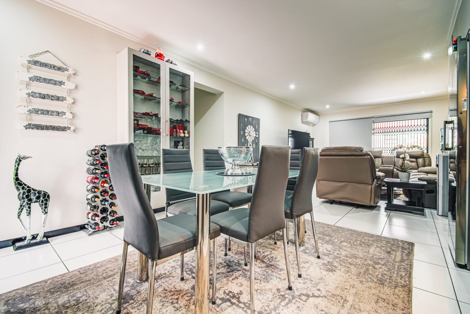 Discover an exquisite residential rental opportunity within a prestigious security estate in Paulshof, Sandton. This sophisticated 151 sqm residence, meticulously designed for contemporary living, offers three generously proportioned bedrooms and two luxurious bathrooms, including a private en-suite. The heart of this home is its expansive open-plan living and dining area, seamlessly flowing into a state-of-the-art kitchen adorned with sleek white cabinetry, a stylish mosaic backsplash, and integrated stainless steel appliances. Modern tiled flooring, recessed lighting, and air conditioning throughout ensure an ambiance of refined comfort.