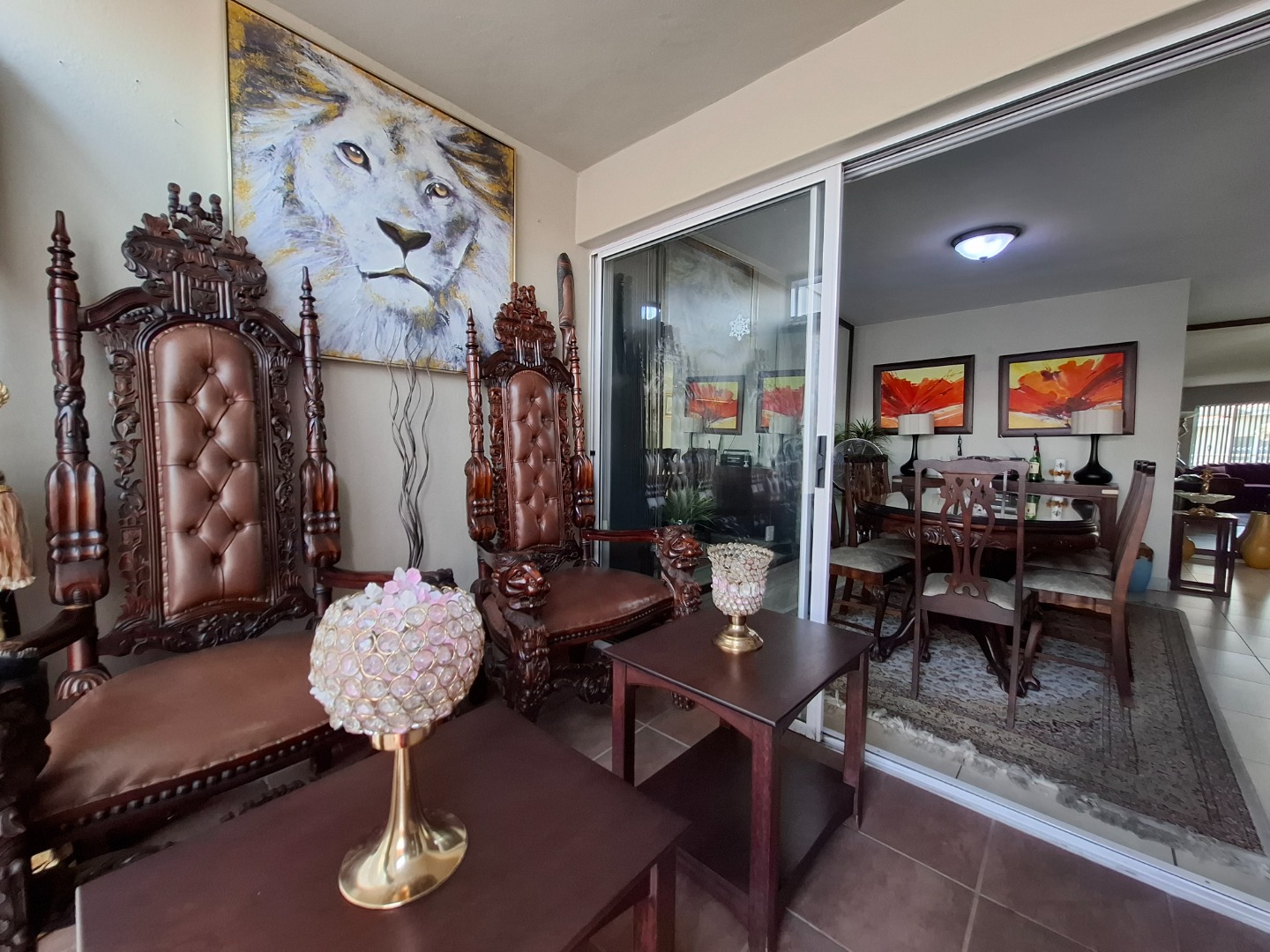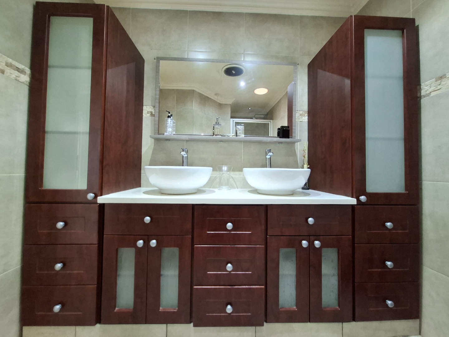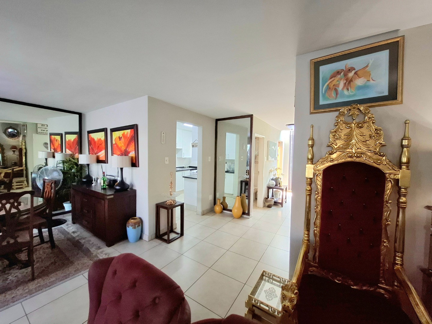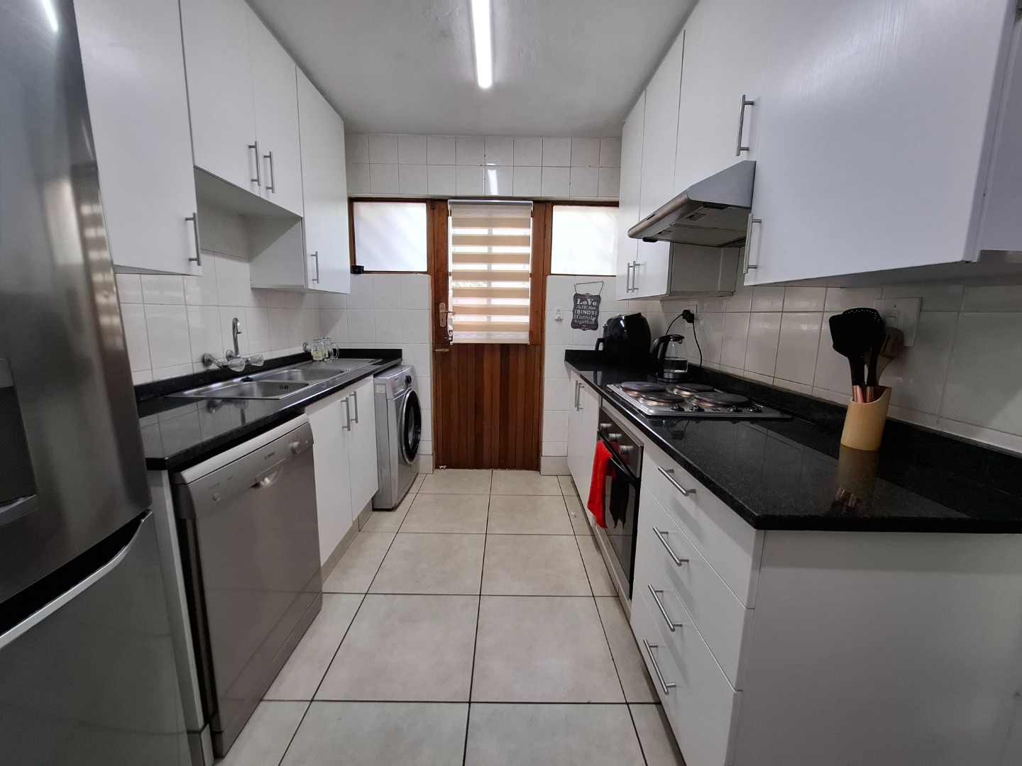 The property comprises three well proportioned bedrooms and 2.5 bathrooms, including a private en-suite, a family bathroom, and a guest toilet, all fully tiled for ease of maintenance. Additional versatile spaces include a dedicated study and a family TV room. Outdoor amenities feature a single garage and three additional parking spaces. Residents benefit from living within a secure complex, complete with 24-hour security and an access gate. Fibre connectivity and a battery inverter underscore modern convenience and uninterrupted living.