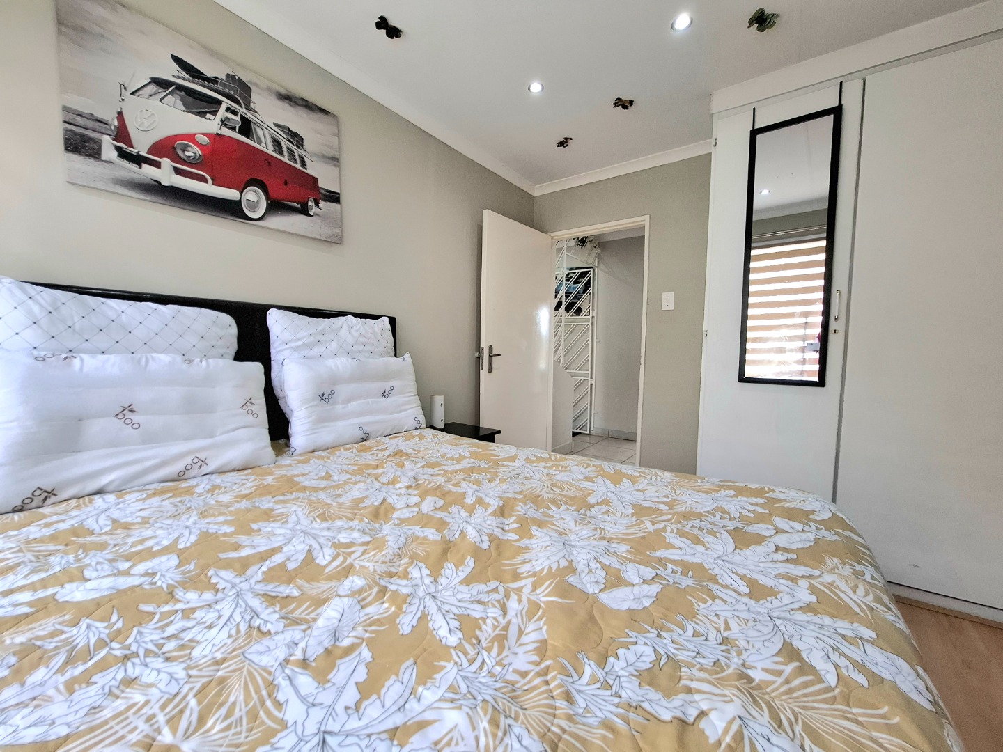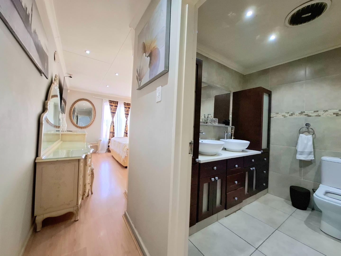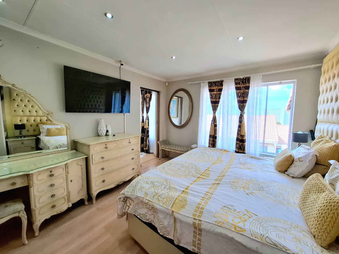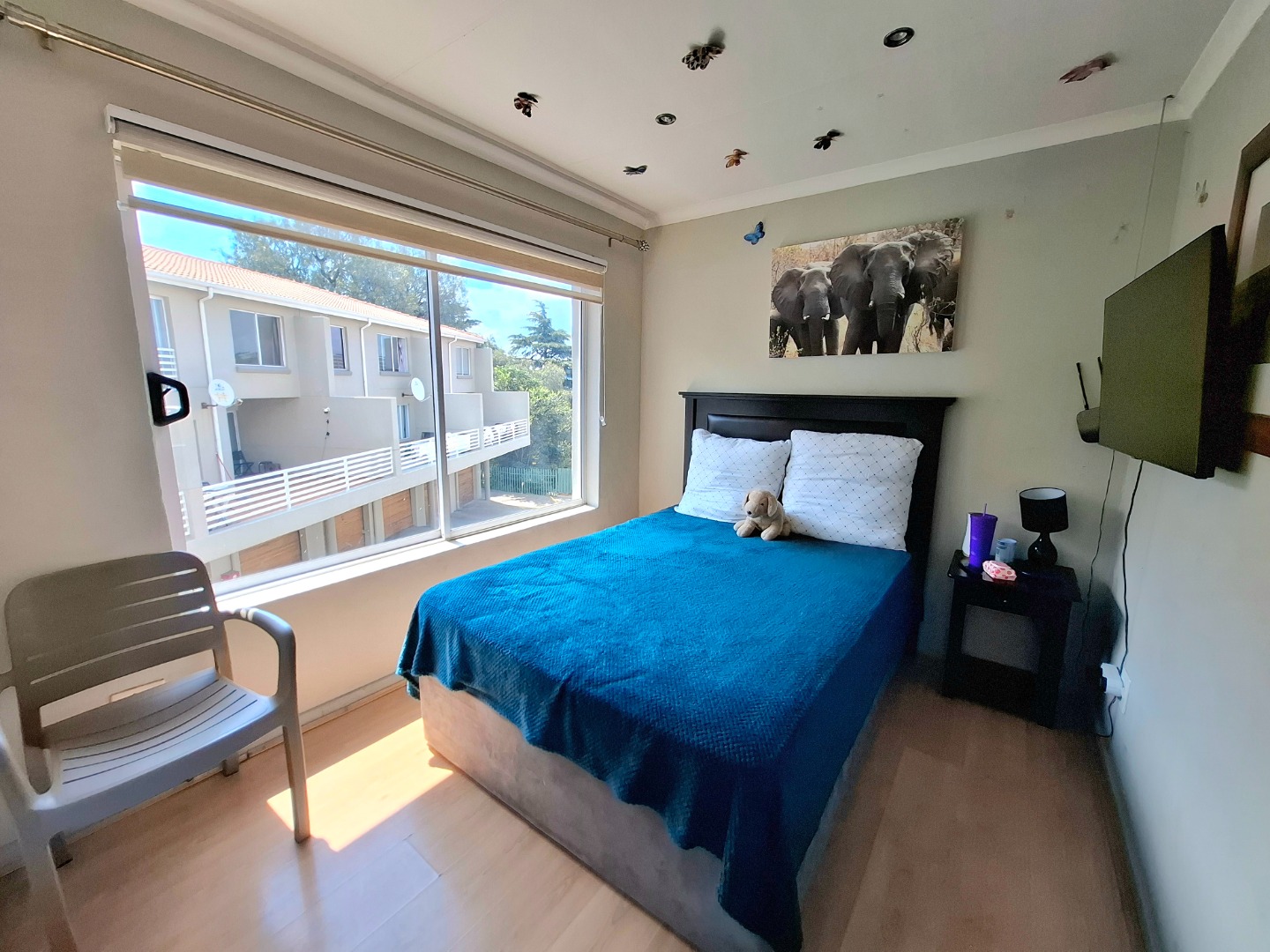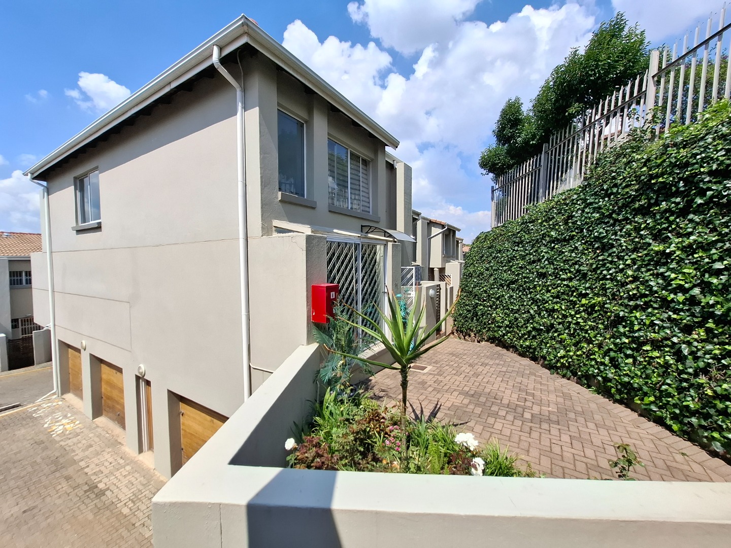 This contemporary two story townhouse is situated within a meticulously maintained residential complex in Bedford Gardens, Bedfordview. Presenting an appealing facade with neutral toned exteriors and abundant natural light, the property benefits from secure gated access and paved pathways. Its elevated position offers scenic distant views, enhancing the tranquil living experience within this desirable suburban locale.
