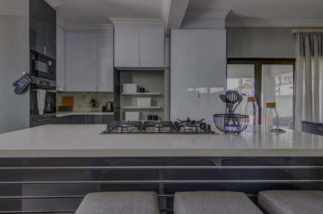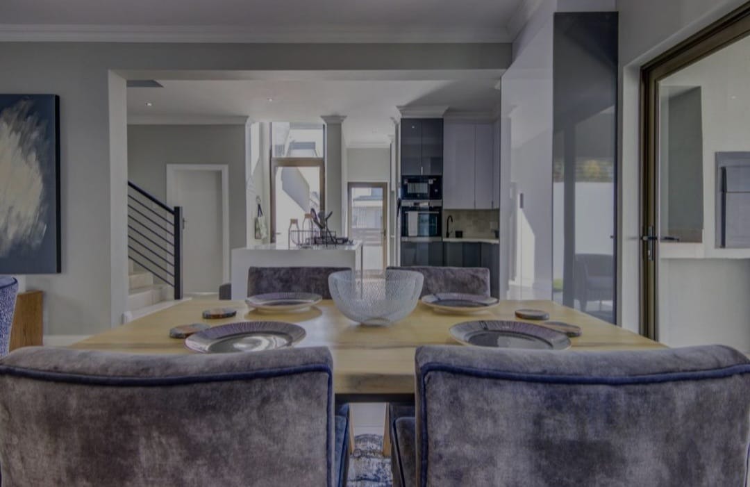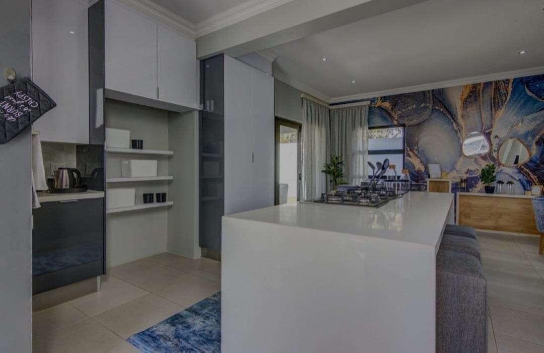 Discover contemporary living in this newly built residential property in the sought-after metropolitan suburb of Bedfordview, South Africa. This modern home immediately impresses with its striking architectural design, featuring clean lines, flat roofs, and a sophisticated neutral grey and white exterior. An attached single garage and paved driveway enhance its kerb appeal, offering convenience and a sleek first impression. Step inside to an inviting open-plan layout spanning 199.00 sqm, designed for seamless living and entertaining. The heart of the home is a state-of-the-art kitchen, boasting sleek, glossy two-toned cabinetry, a large central island with an integrated gas hob, and built-in oven and microwave. Ample storage complements the contemporary aesthetic, while large glass doors flood the space with natural light and provide access to an outdoor area. The kitchen flows effortlessly into a stylish dining area, highlighted by a vibrant abstract feature wall, and a comfortable lounge. A modern staircase adds architectural interest. This residence offers three well-proportioned bedrooms and three modern bathrooms, providing comfort and privacy. Each space is finished with a clean, contemporary aesthetic, ensuring a tranquil retreat. The property sits on a manageable Erf size of 360.00 sqm, offering a perfect balance of space without extensive maintenance. Bedfordview is renowned for its vibrant community, excellent amenities, and convenient access to major routes, making it a highly desirable location for discerning homeowners. Key Features: * Modern architectural design * 3 Bedrooms, 3 Bathrooms * Sleek open-plan kitchen with integrated appliances * Large kitchen island with gas hob * Stylish dining and lounge areas * Attached single garage * Paved driveway * 199.00 sqm floor size