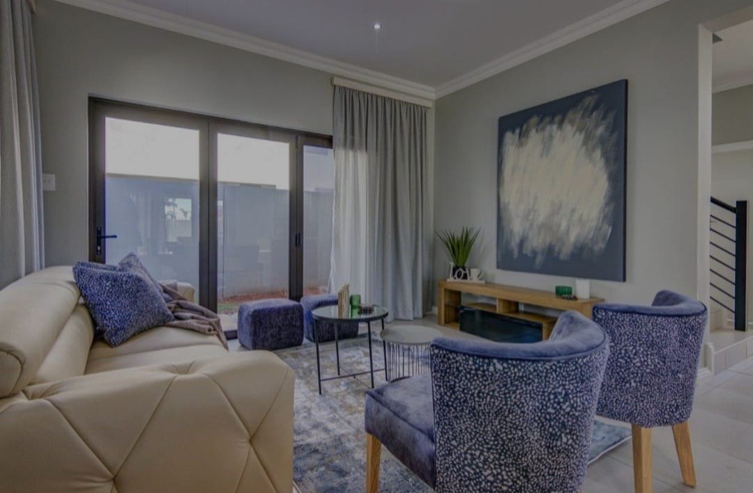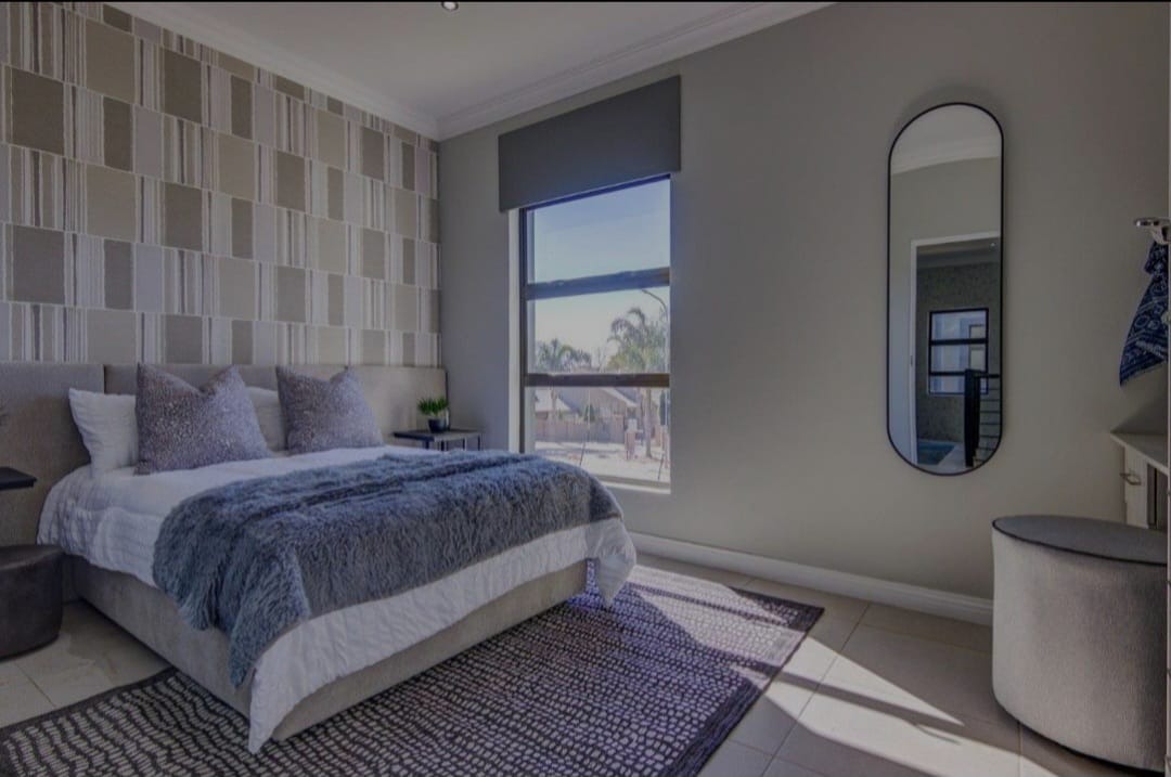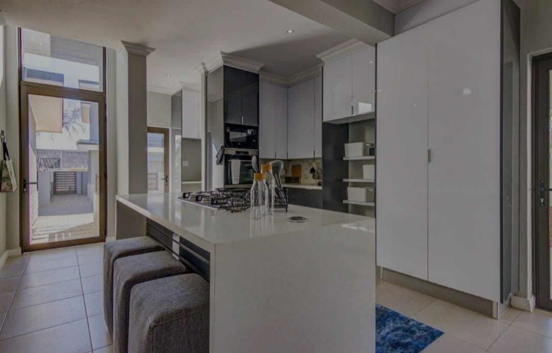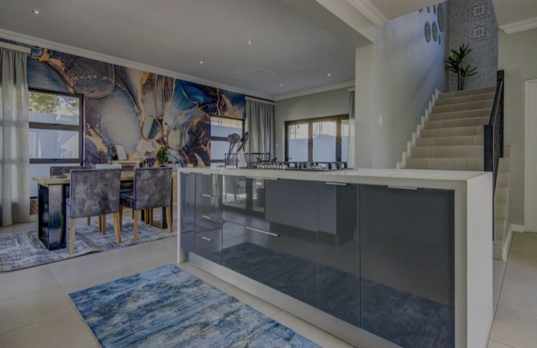 Discover contemporary living in this newly built residential property in the sought-after metropolitan suburb of Bedfordview, South Africa. This modern home immediately impresses with its striking architectural design, featuring clean lines, flat roofs, and a sophisticated neutral grey and white exterior. An attached single garage and paved driveway enhance its kerb appeal, offering convenience and a sleek first impression. Step inside to an inviting open-plan layout spanning 199.00 sqm, designed for seamless living and entertaining. The heart of the home is a state-of-the-art kitchen, boasting sleek, glossy two-toned cabinetry, a large central island with an integrated gas hob, and built-in oven and microwave. Ample storage complements the contemporary aesthetic, while large glass doors flood the space with natural light and provide access to an outdoor area. The kitchen flows effortlessly into a stylish dining area, highlighted by a vibrant abstract feature wall, and a comfortable lounge. A modern staircase adds architectural interest. This residence offers three well-proportioned bedrooms and three modern bathrooms, providing comfort and privacy. Each space is finished with a clean, contemporary aesthetic, ensuring a tranquil retreat. The property sits on a manageable Erf size of 360.00 sqm, offering a perfect balance of space without extensive maintenance. Bedfordview is renowned for its vibrant community, excellent amenities, and convenient access to major routes, making it a highly desirable location for discerning homeowners. Key Features: * Modern architectural design * 3 Bedrooms, 3 Bathrooms * Sleek open-plan kitchen with integrated appliances * Large kitchen island with gas hob * Stylish dining and lounge areas * Attached single garage * Paved driveway * 199.00 sqm floor size
