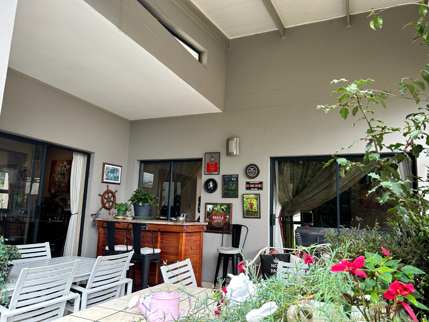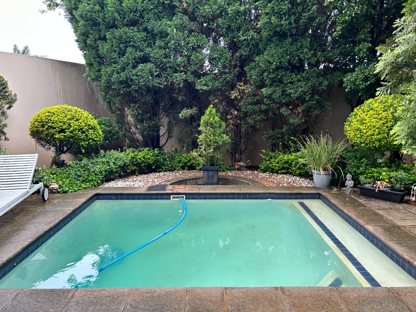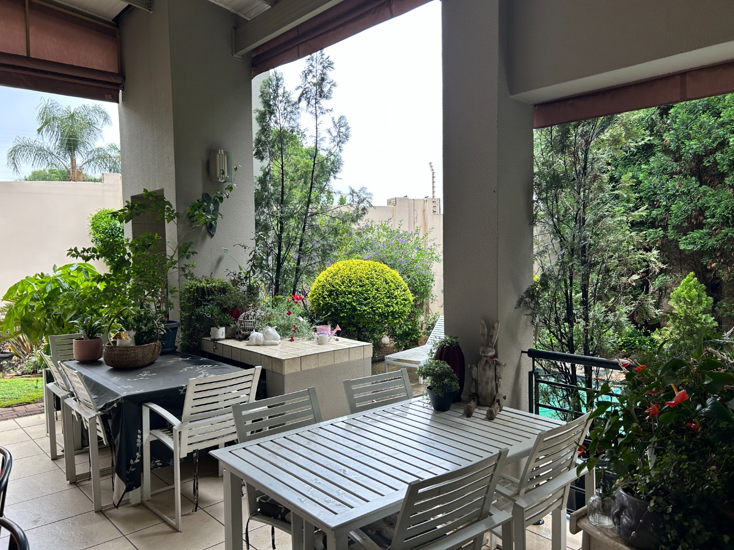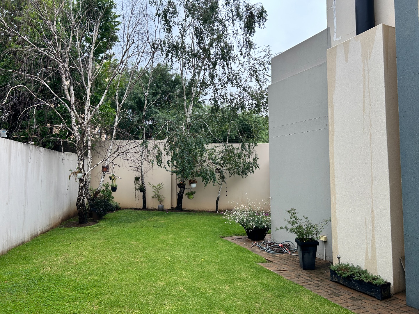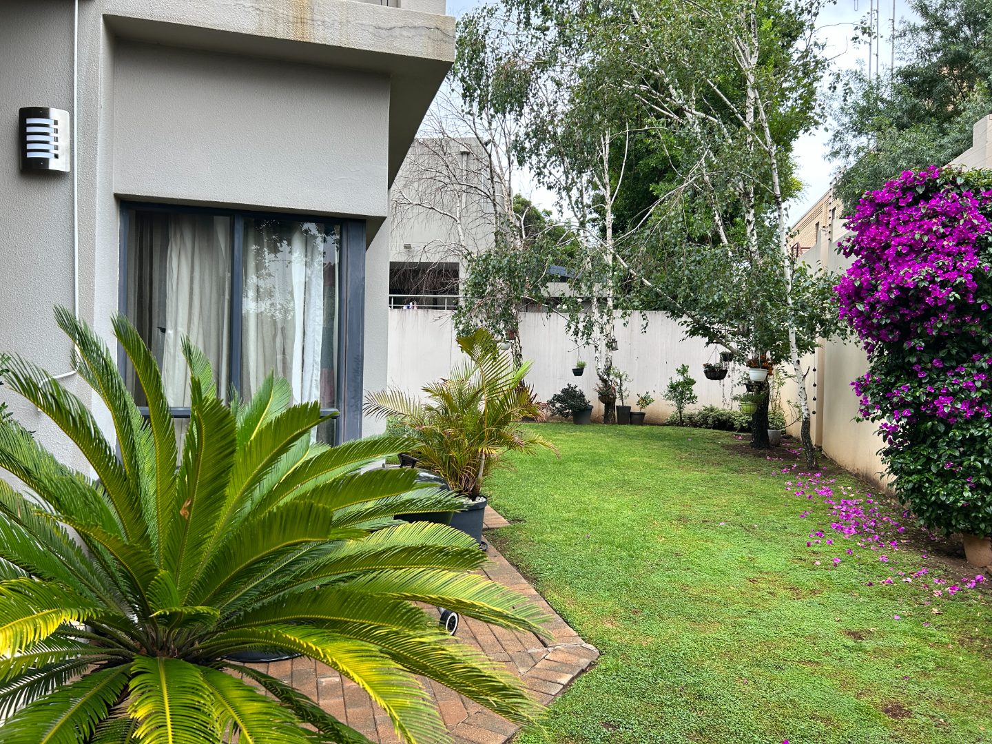 The private garden and swimming pool allow for outdoor living without unnecessary maintenance, positioned on a 588 sqm erf. There is additional secure parking for two vehicles. The complex is pet-friendly.