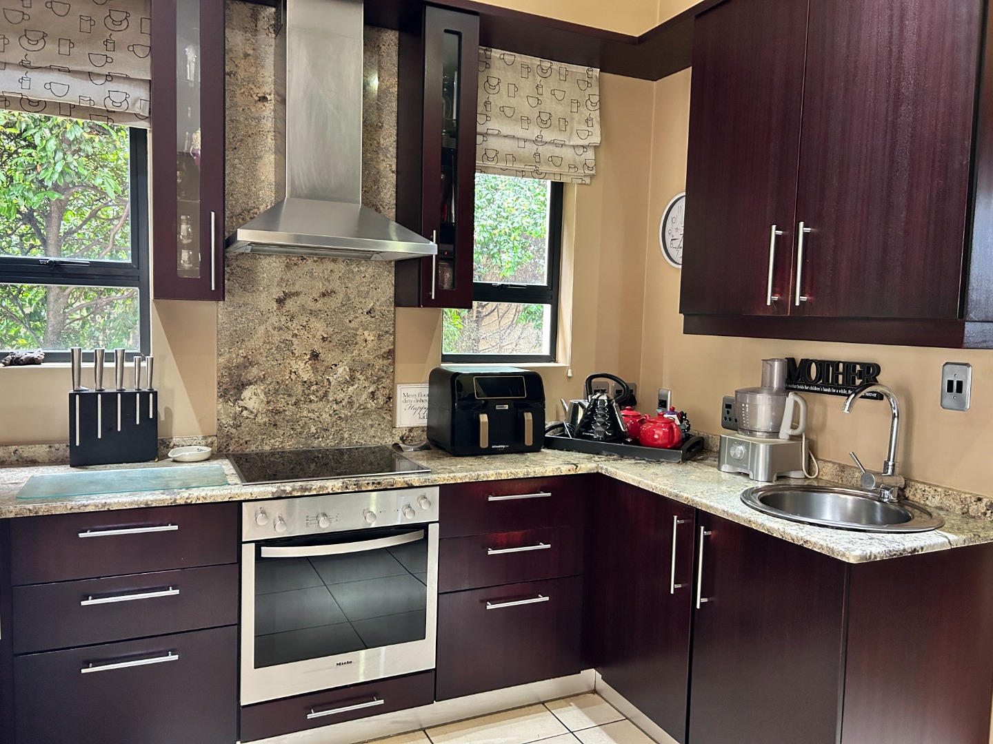 - Kitchen with granite tops + separate scullery (space for 3 appliances)