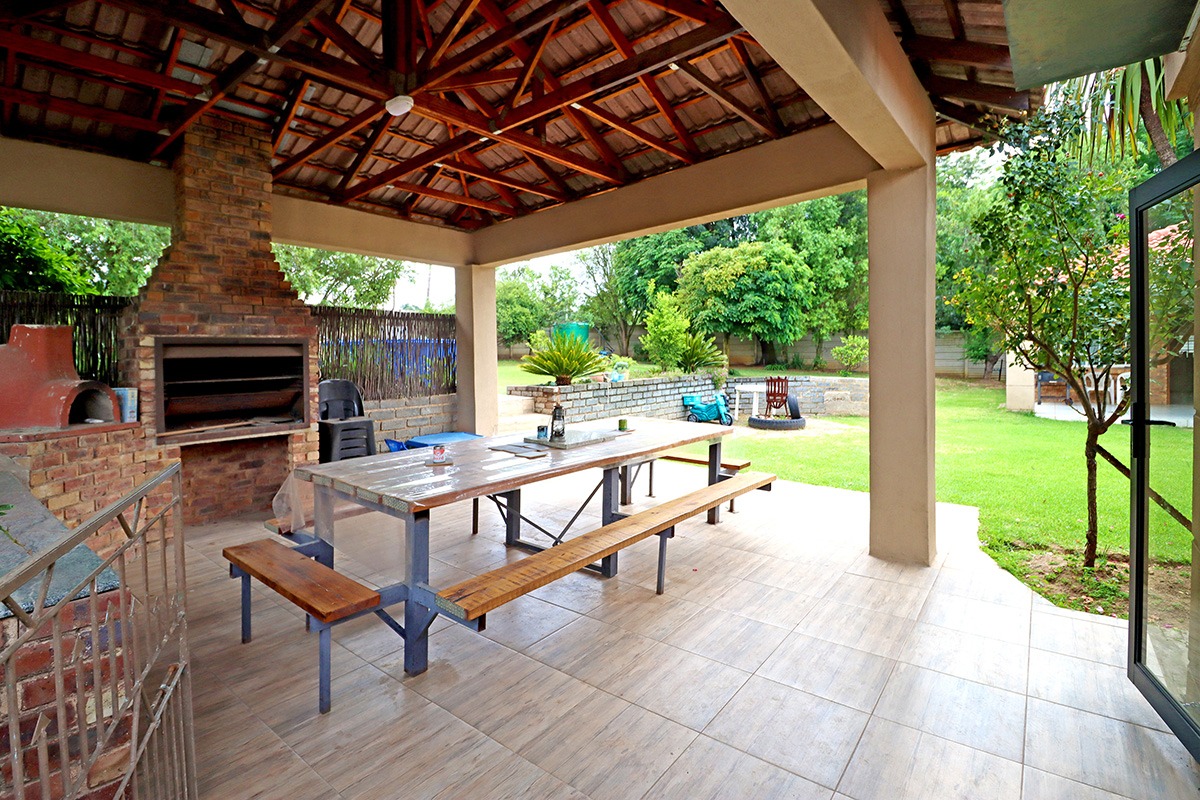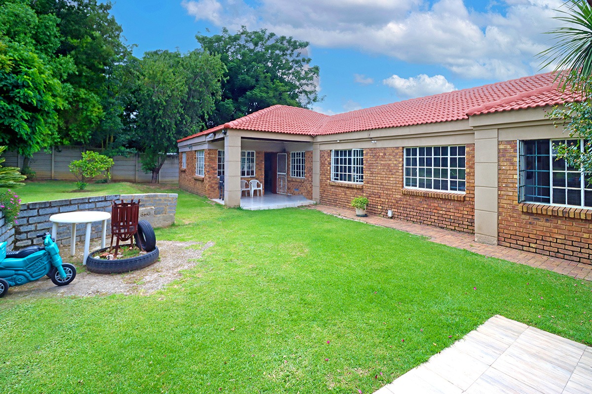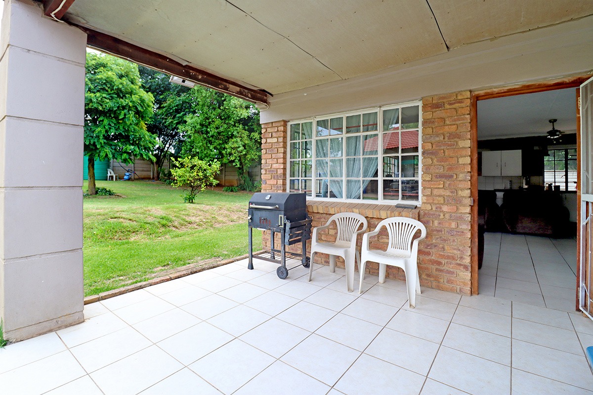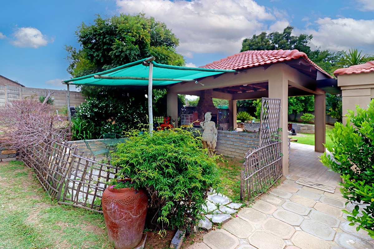 Step outside and discover your own private oasis. The property boasts a large, well-maintained garden with mature fruit trees, perfect for kids and pets to play. You’ll love the covered patio and lapa, complete with a built-in braai – the ideal spot for weekend get-togethers. You'll appreciate the convenience of water tanks and a borehole. Parking is sorted with plenty of parking space, and a carport for two vehicles, and the paved driveway adds to the neat kerb appeal. The property also includes staff quarters and a laundry area, adding to its practicality.