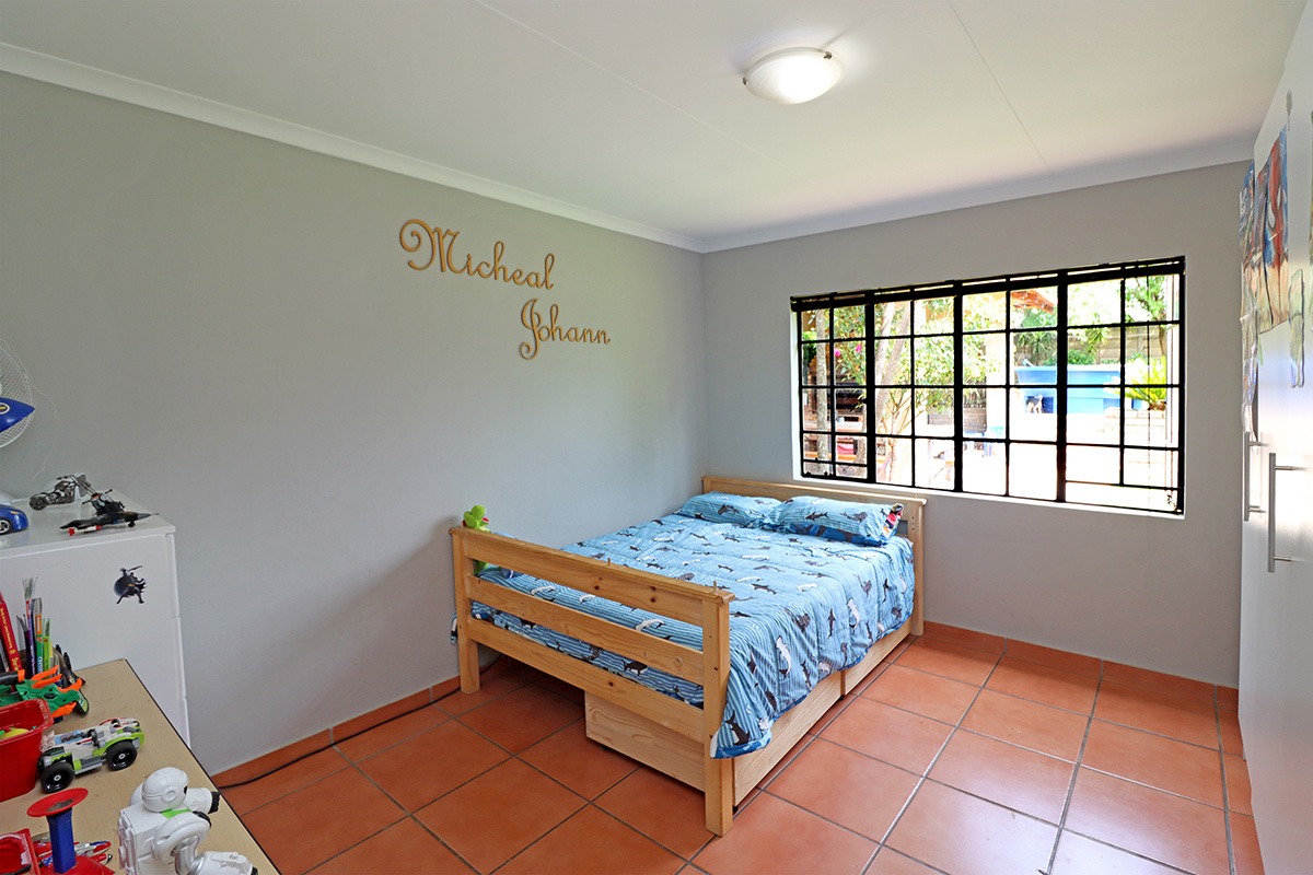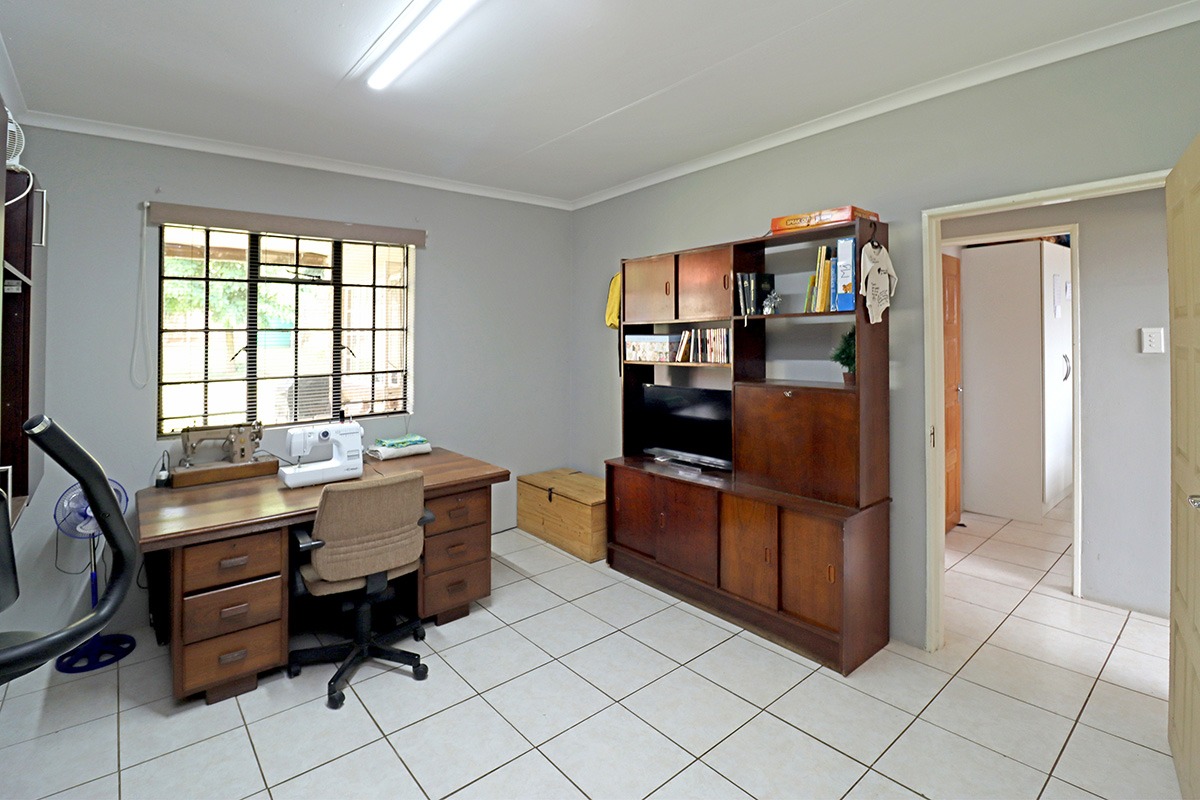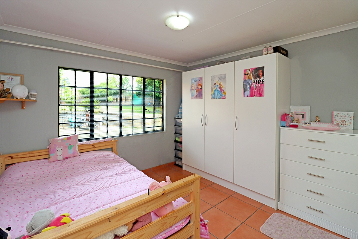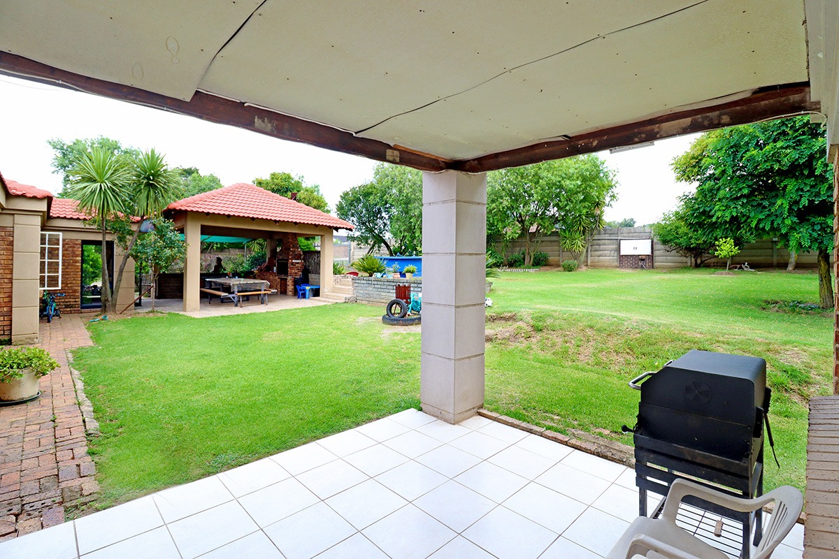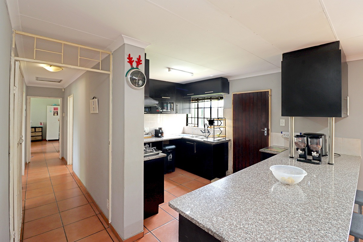 Step outside and discover your own private oasis. The property boasts a large, well-maintained garden with mature fruit trees, perfect for kids and pets to play. You’ll love the covered patio and lapa, complete with a built-in braai – the ideal spot for weekend get-togethers. You'll appreciate the convenience of water tanks and a borehole. Parking is sorted with plenty of parking space, and a carport for two vehicles, and the paved driveway adds to the neat kerb appeal. The property also includes staff quarters and a laundry area, adding to its practicality.