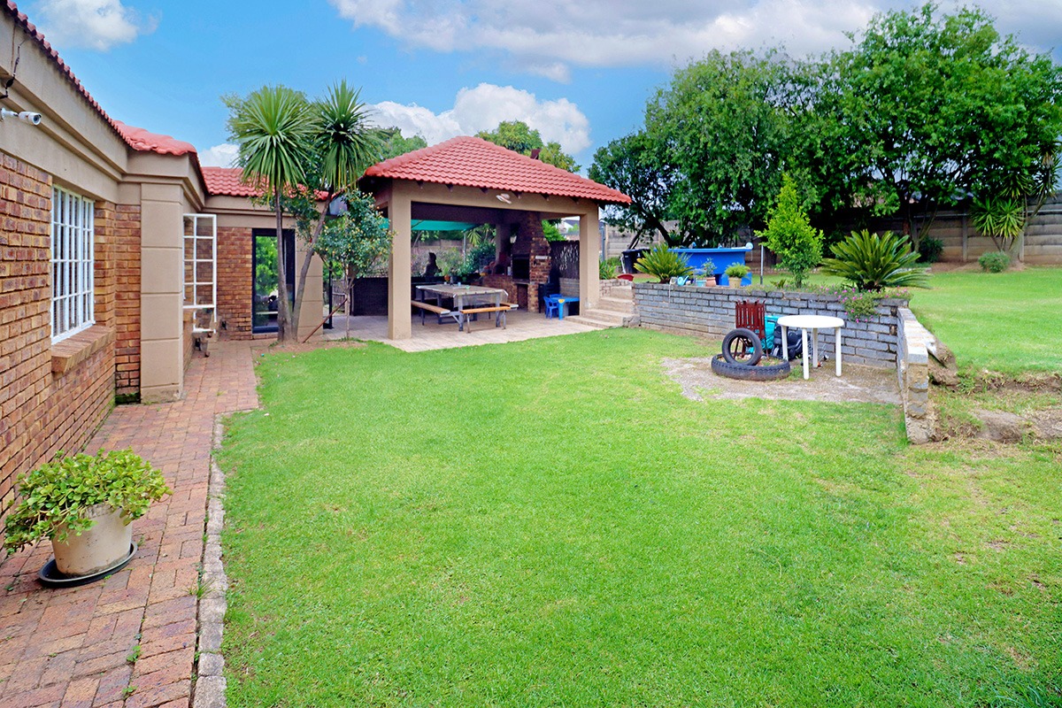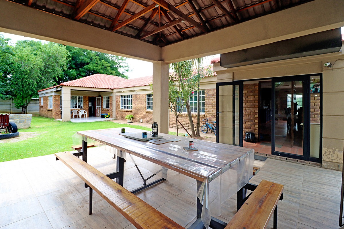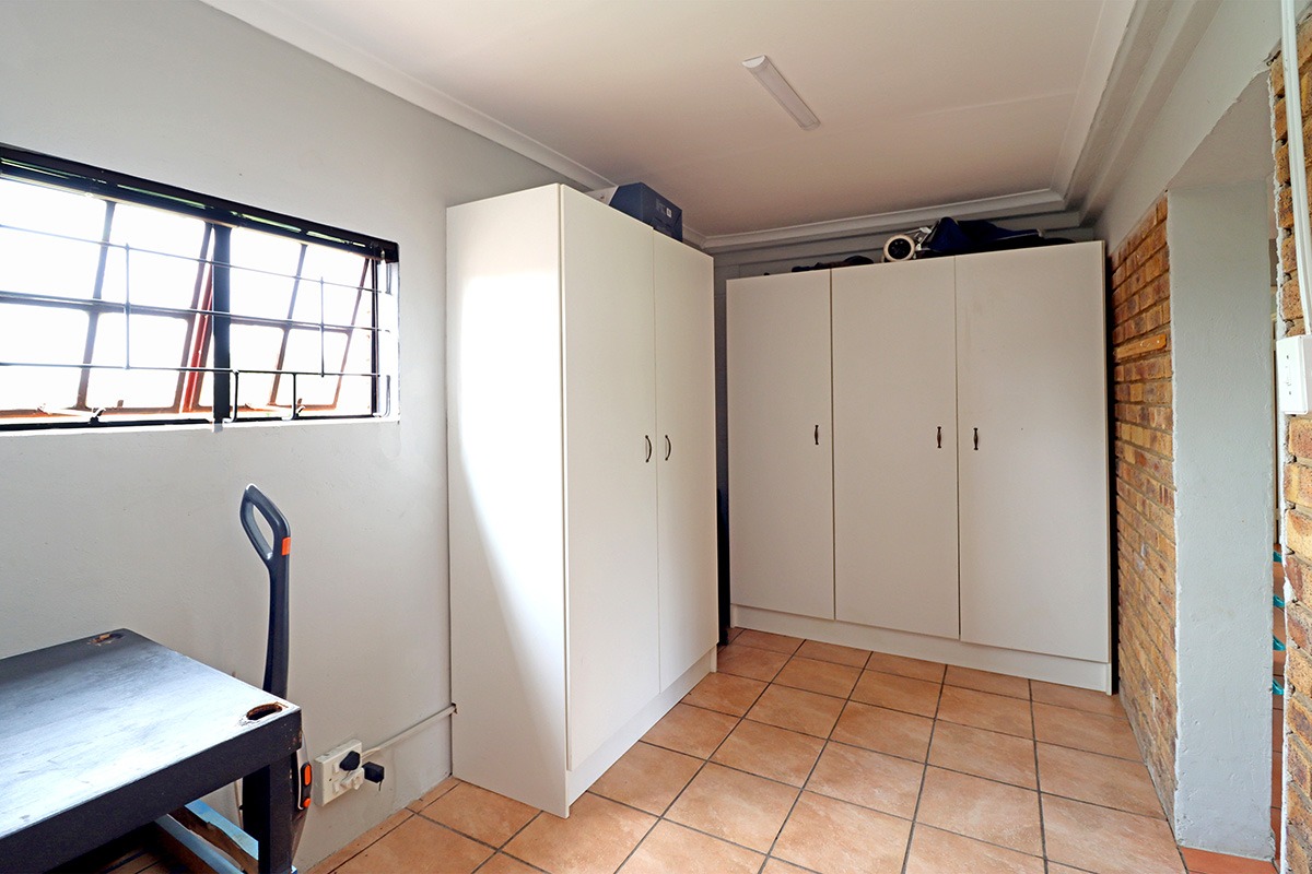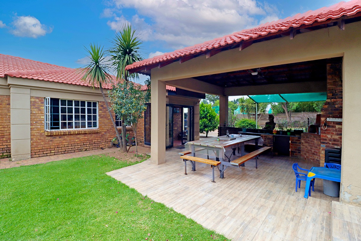 Step outside and discover your own private oasis. The property boasts a large, well-maintained garden with mature fruit trees, perfect for kids and pets to play. You’ll love the covered patio and lapa, complete with a built-in braai – the ideal spot for weekend get-togethers. You'll appreciate the convenience of water tanks and a borehole. Parking is sorted with plenty of parking space, and a carport for two vehicles, and the paved driveway adds to the neat kerb appeal. The property also includes staff quarters and a laundry area, adding to its practicality.