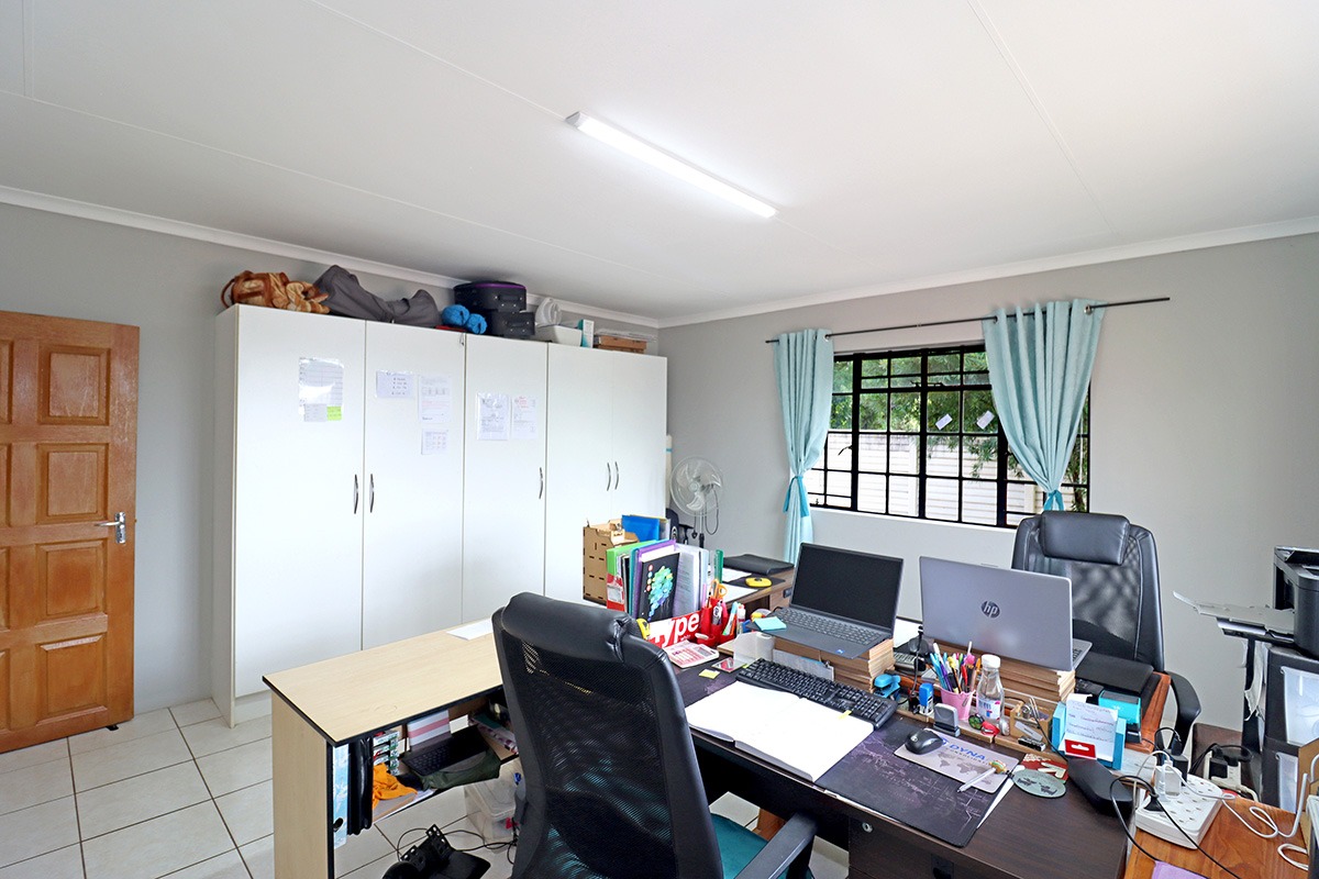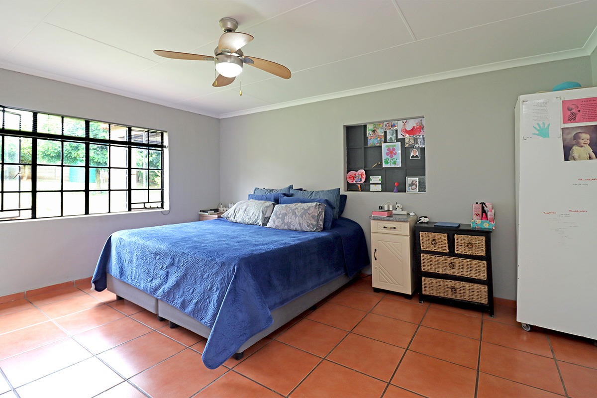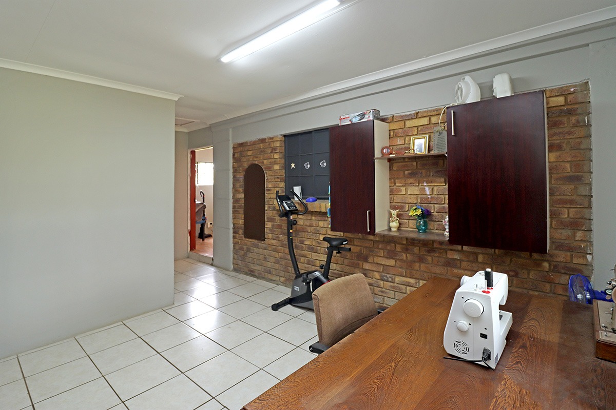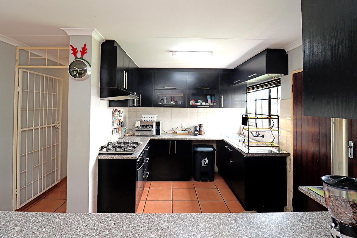 Step outside and discover your own private oasis. The property boasts a large, well-maintained garden with mature fruit trees, perfect for kids and pets to play. You’ll love the covered patio and lapa, complete with a built-in braai – the ideal spot for weekend get-togethers. You'll appreciate the convenience of water tanks and a borehole. Parking is sorted with plenty of parking space, and a carport for two vehicles, and the paved driveway adds to the neat kerb appeal. The property also includes staff quarters and a laundry area, adding to its practicality.