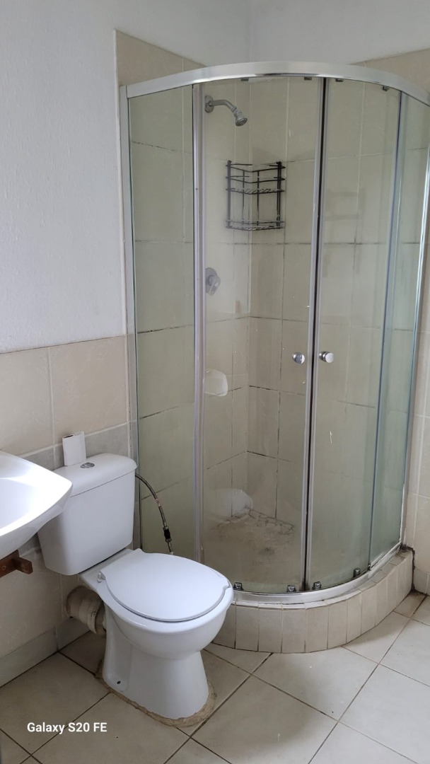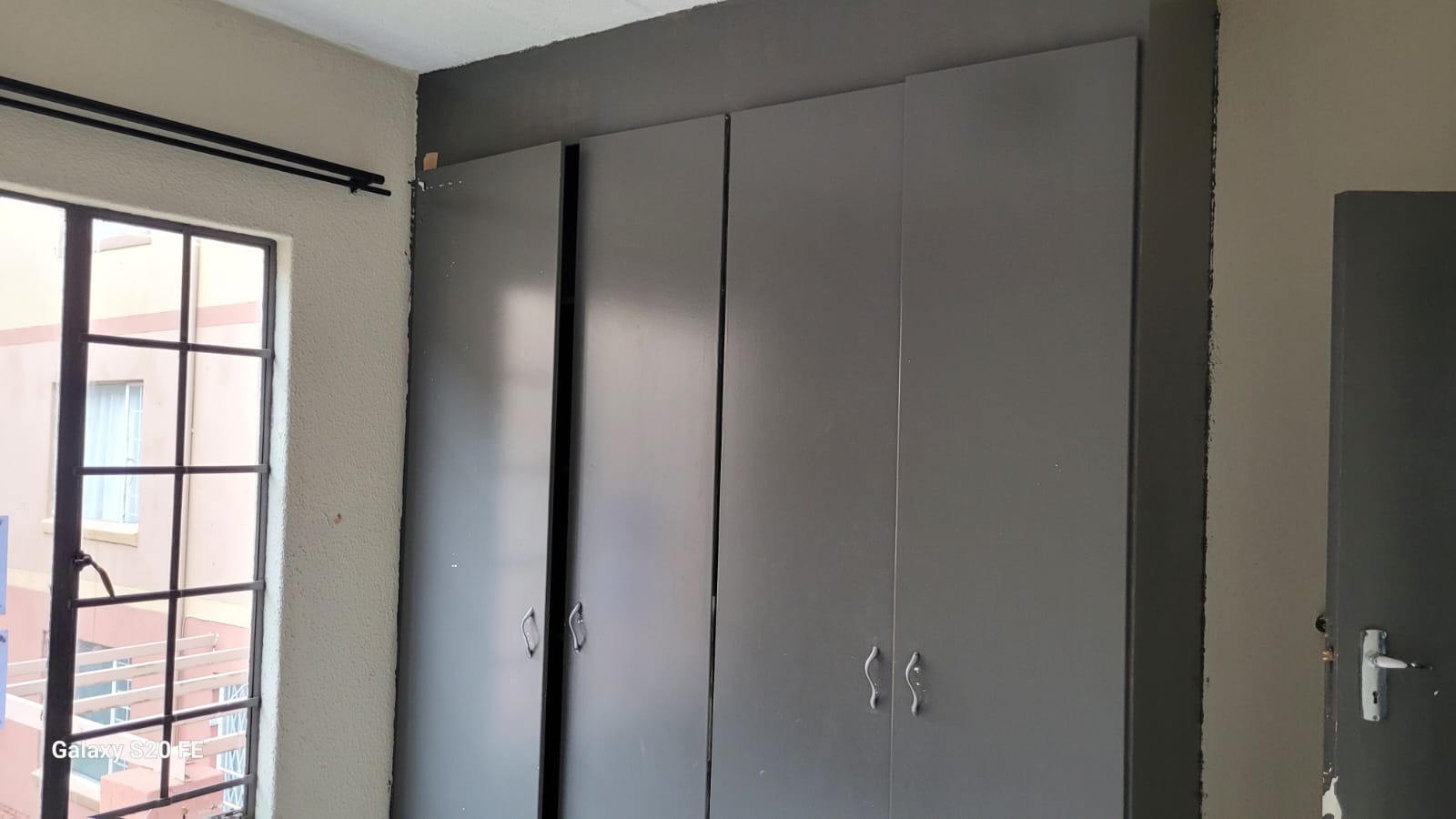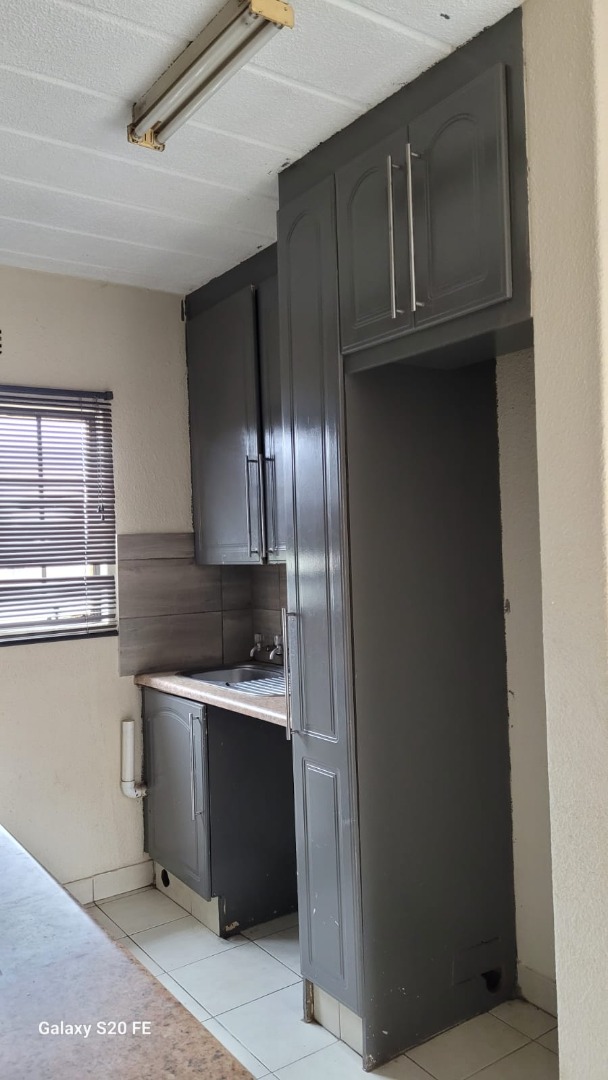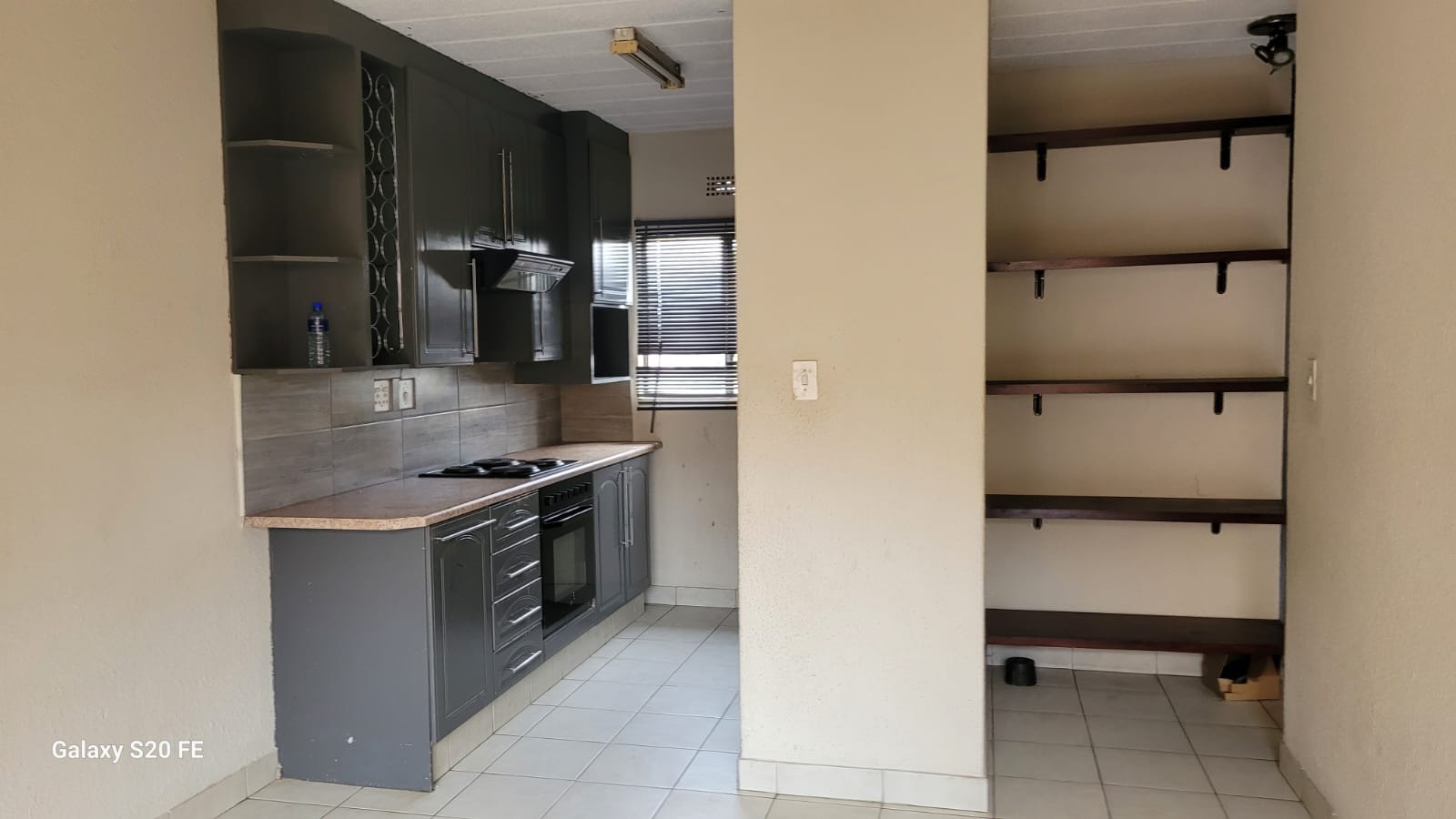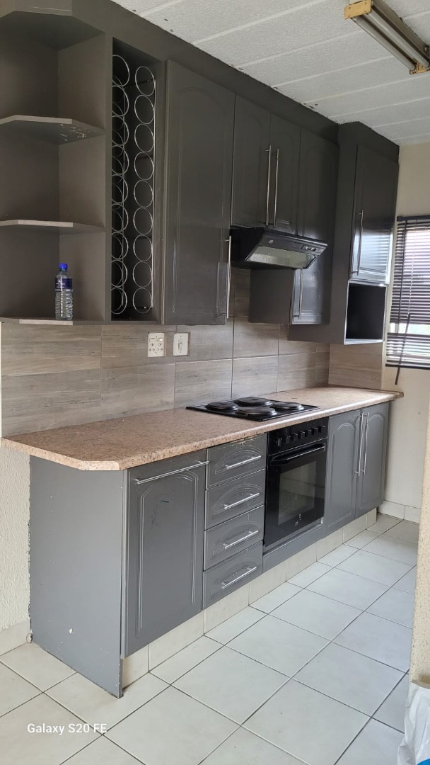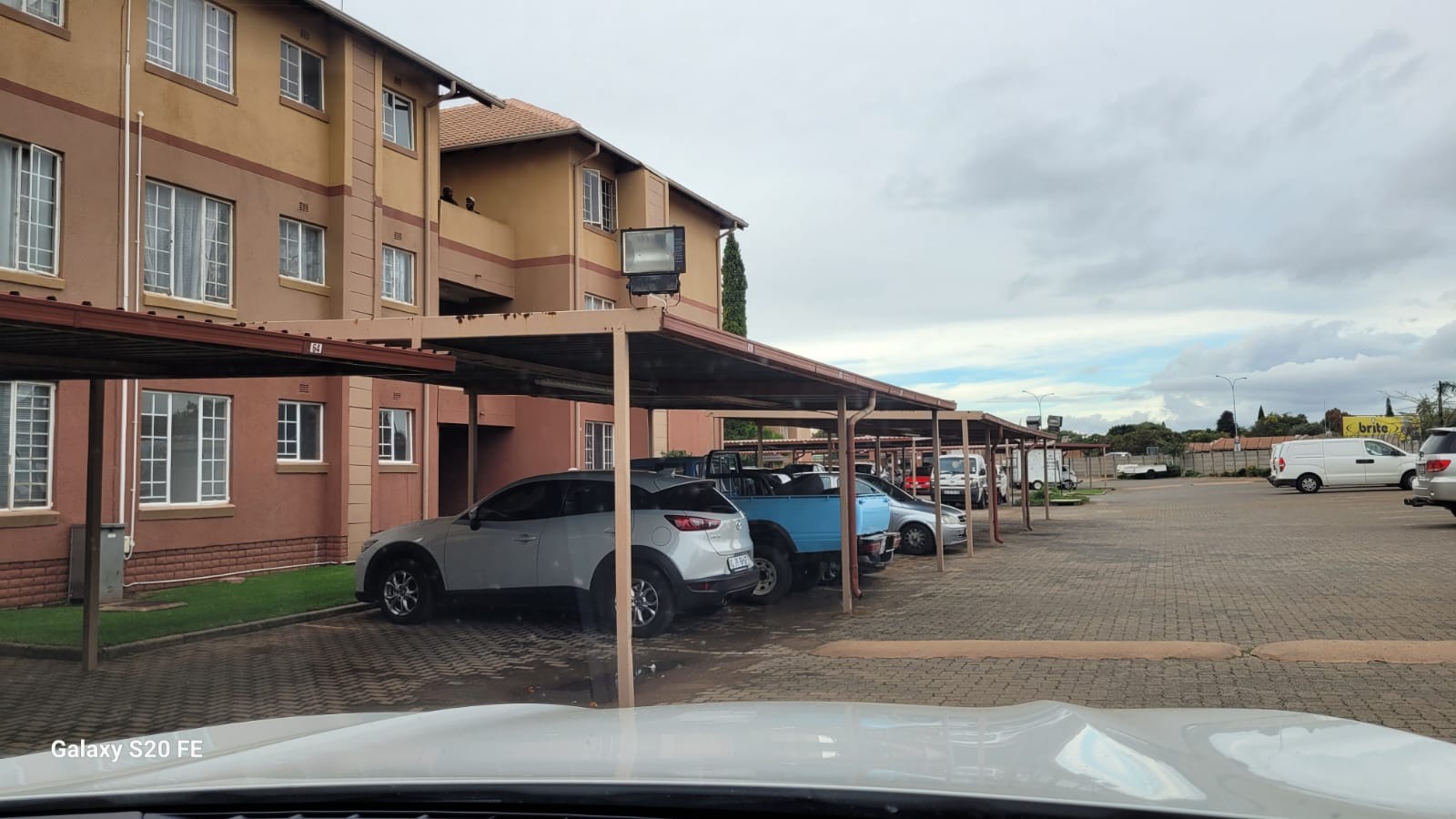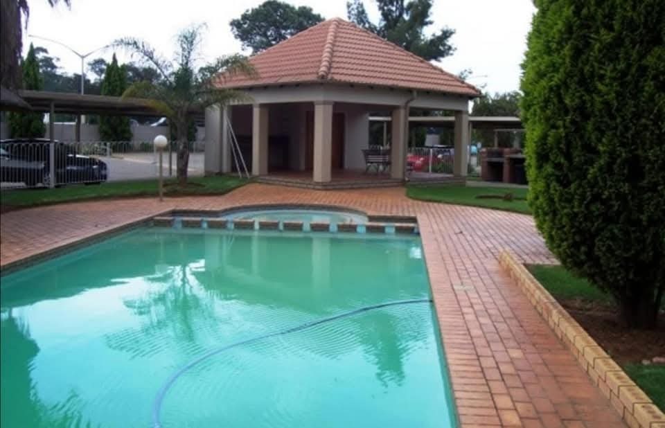 This 1-bedroom apartment offers comfortable living within a well-maintained residential development in Brentwood Park, Benoni. Residents benefit from a central courtyard with green lawns and paved paths, complemented by a communal swimming pool, and a covered lapa for leisure. The compact 38 sqm unit features an open-plan layout, ideal for modern living. Its kitchen is equipped with contemporary grey cabinetry, a built-in oven and hob, tiled backsplash, and an integrated wine rack, ensuring practical storage. The bedroom includes tiled flooring and built-in wardrobes. A functional bathroom serves the unit. Dedicated covered parking adds convenience. This suburban location offers easy access to local amenities. Levies is R1009.24/Refuse R272/ CSOS 4.81/ insurance R138.34.