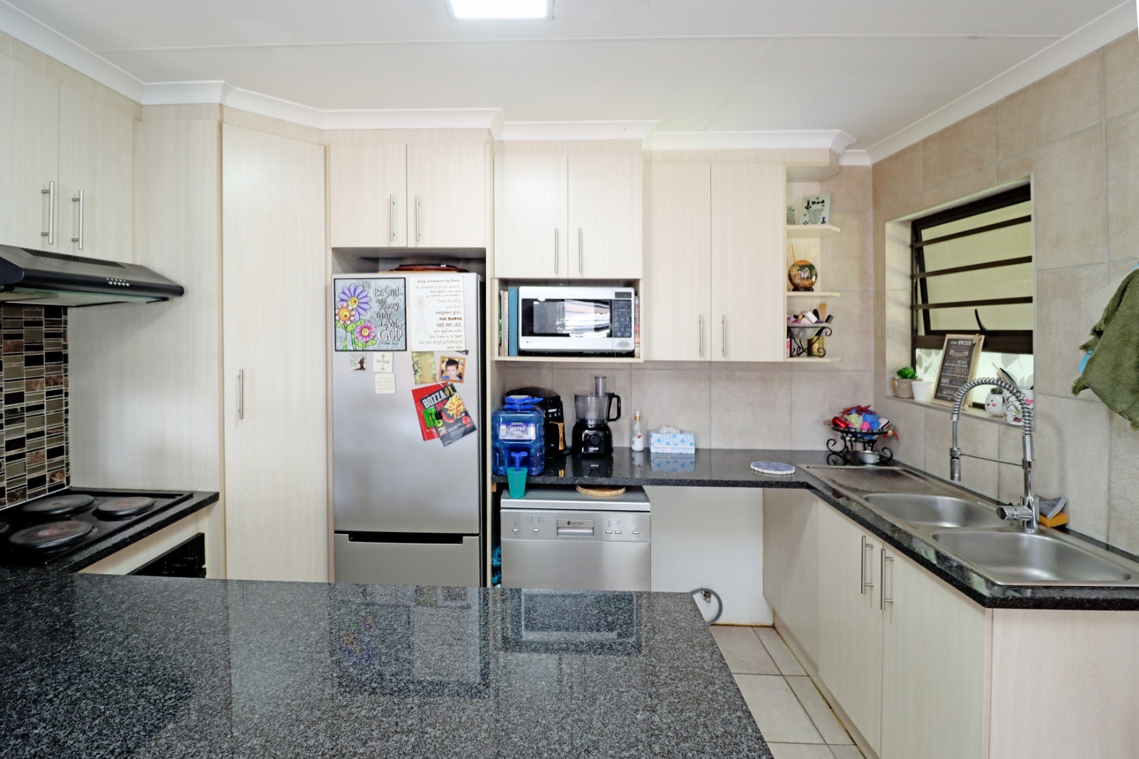 Step inside to discover a light filled, open-plan living space where the kitchen seamlessly flows into the lounge area, ideal for relaxed family living. The kitchen is well appointed with ample cupboard space.