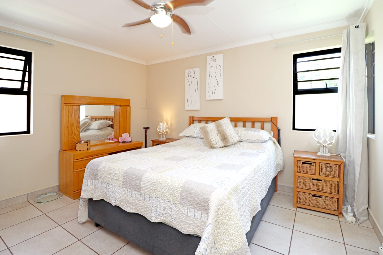 Both bedrooms with built in cupboards, complemented by a neat modern full bathroom.