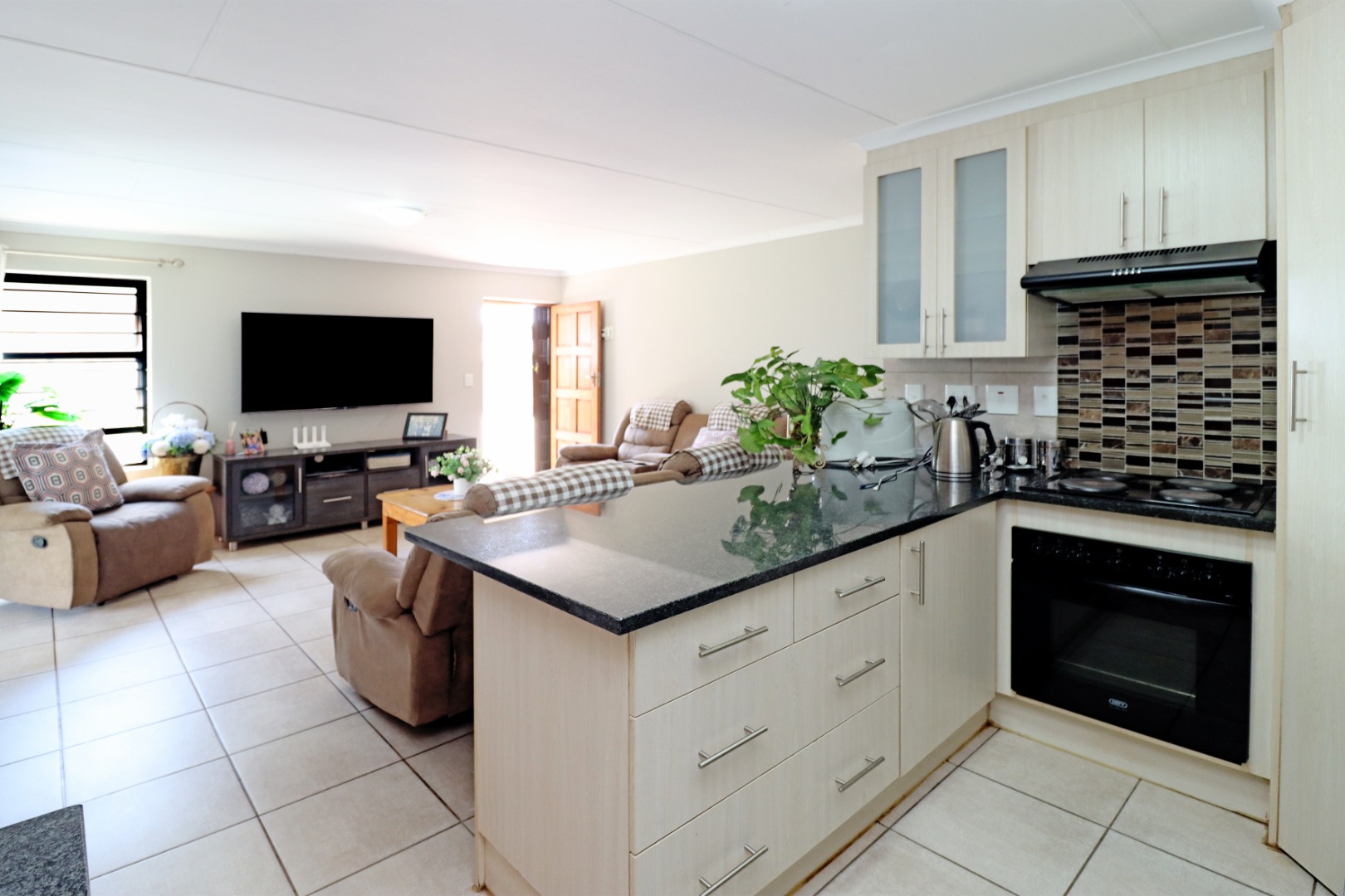 Step inside to discover a light filled, open-plan living space where the kitchen seamlessly flows into the lounge area, ideal for relaxed family living. The kitchen is well appointed with ample cupboard space.