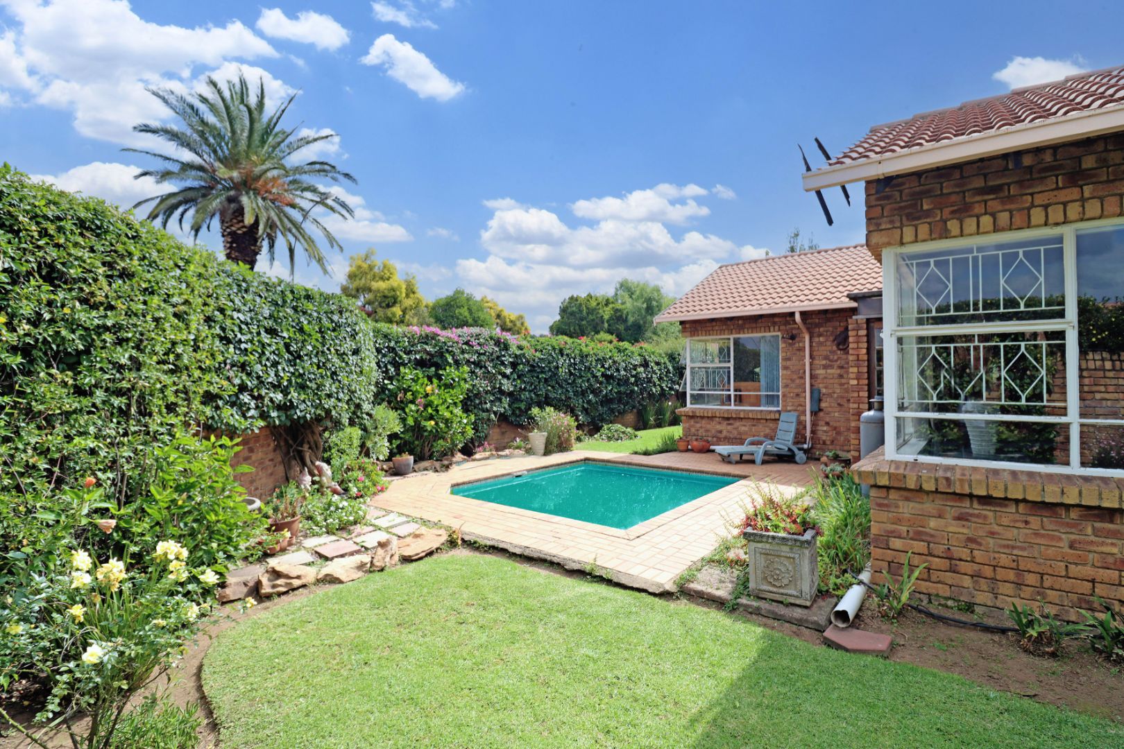 The home features three generously sized bedrooms, providing private retreats for all occupants. Two modern bathrooms, both en-suite, enhance convenience and privacy. Additionally, the property includes a double garage, offering secure parking and extra storage solutions. The erf size of 424 square metres provides a manageable outdoor space with an enclosed patio and swimming pool.
