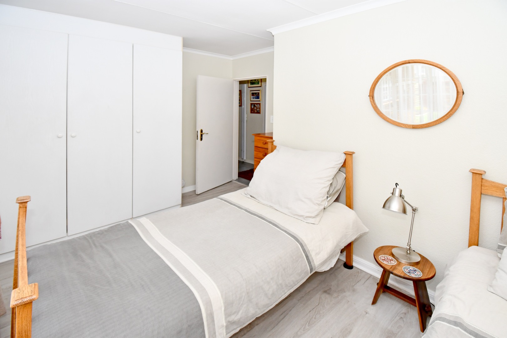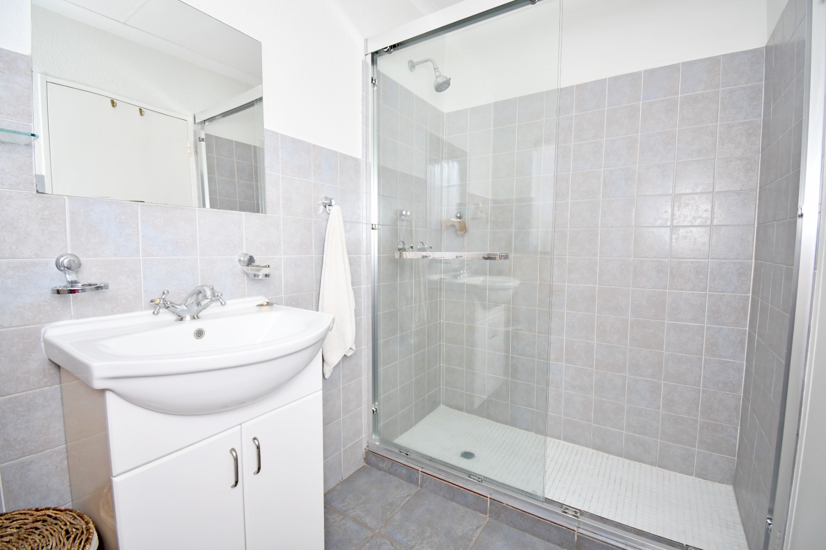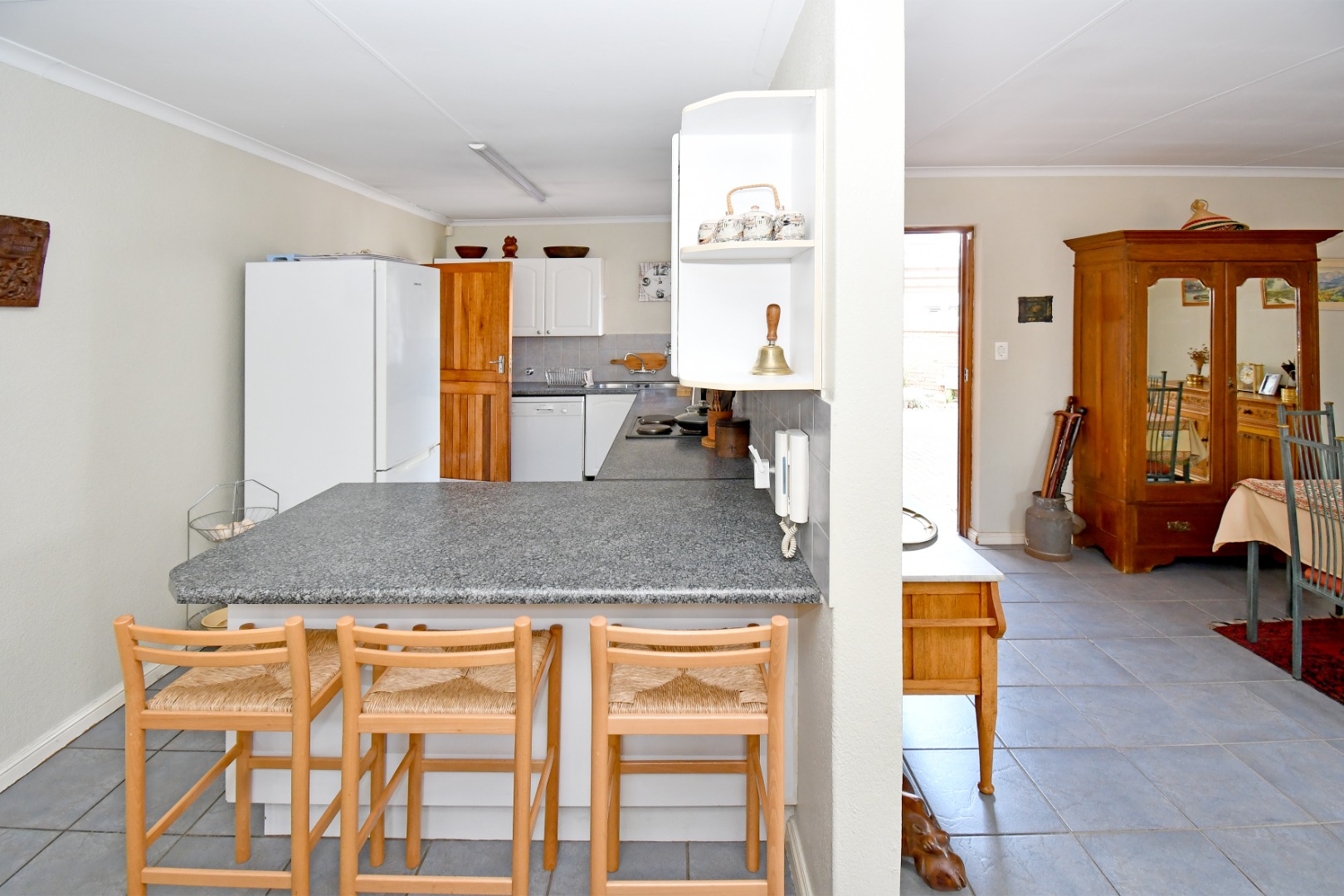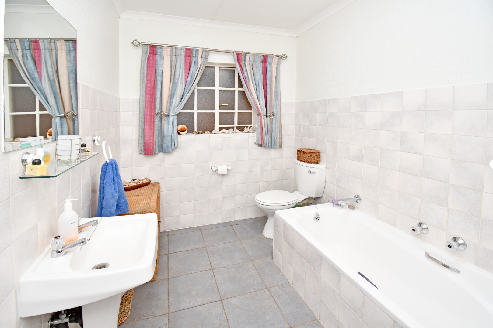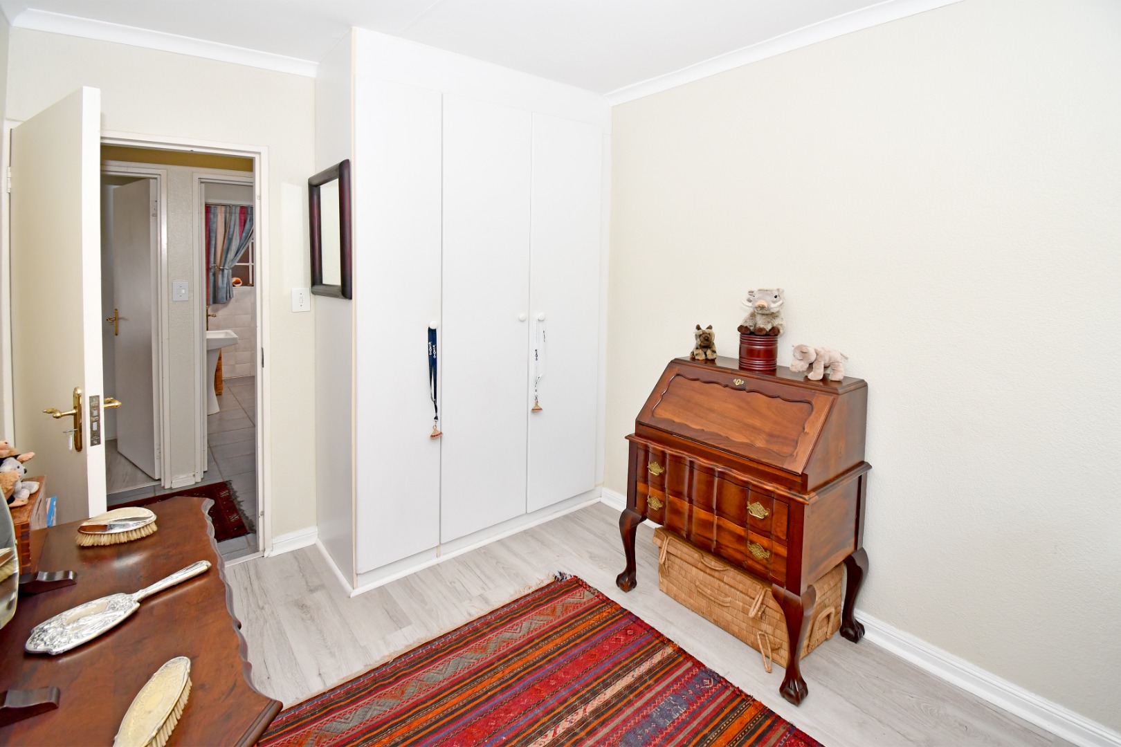 Three comfortable bedrooms include a main with an en-suite bathroom. Outdoor living features a private, covered patio, ideal for relaxation, flowing into a low-maintenance, landscaped garden. The property is totally walled, offering privacy and a secure environment for pets. Security is paramount, with an alarm system, electric fencing, and burglar bars ensuring peace of mind.