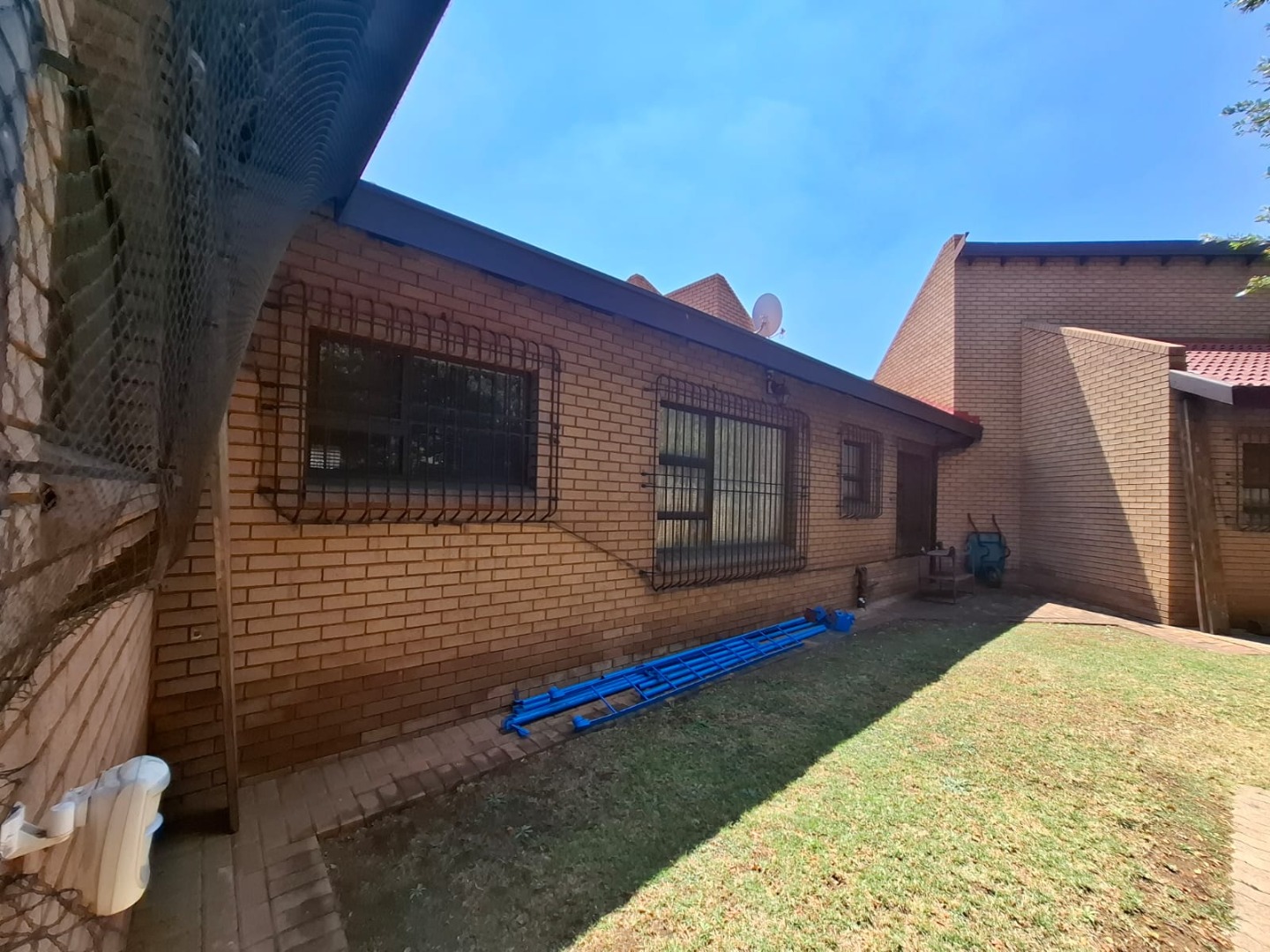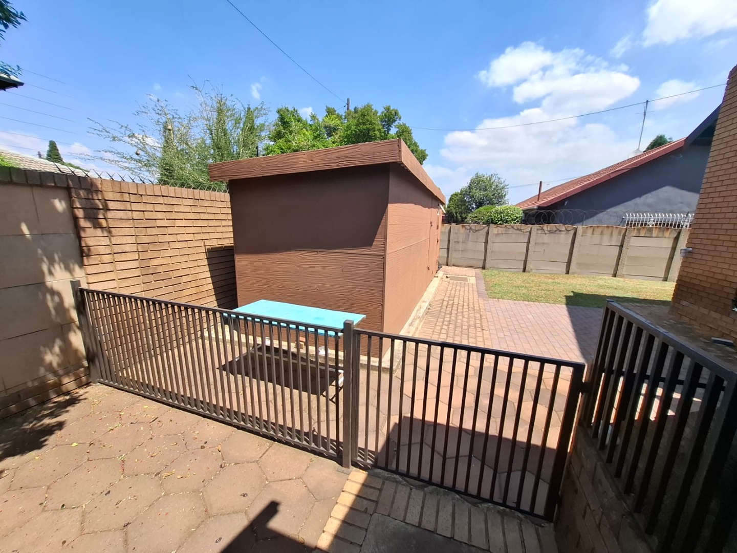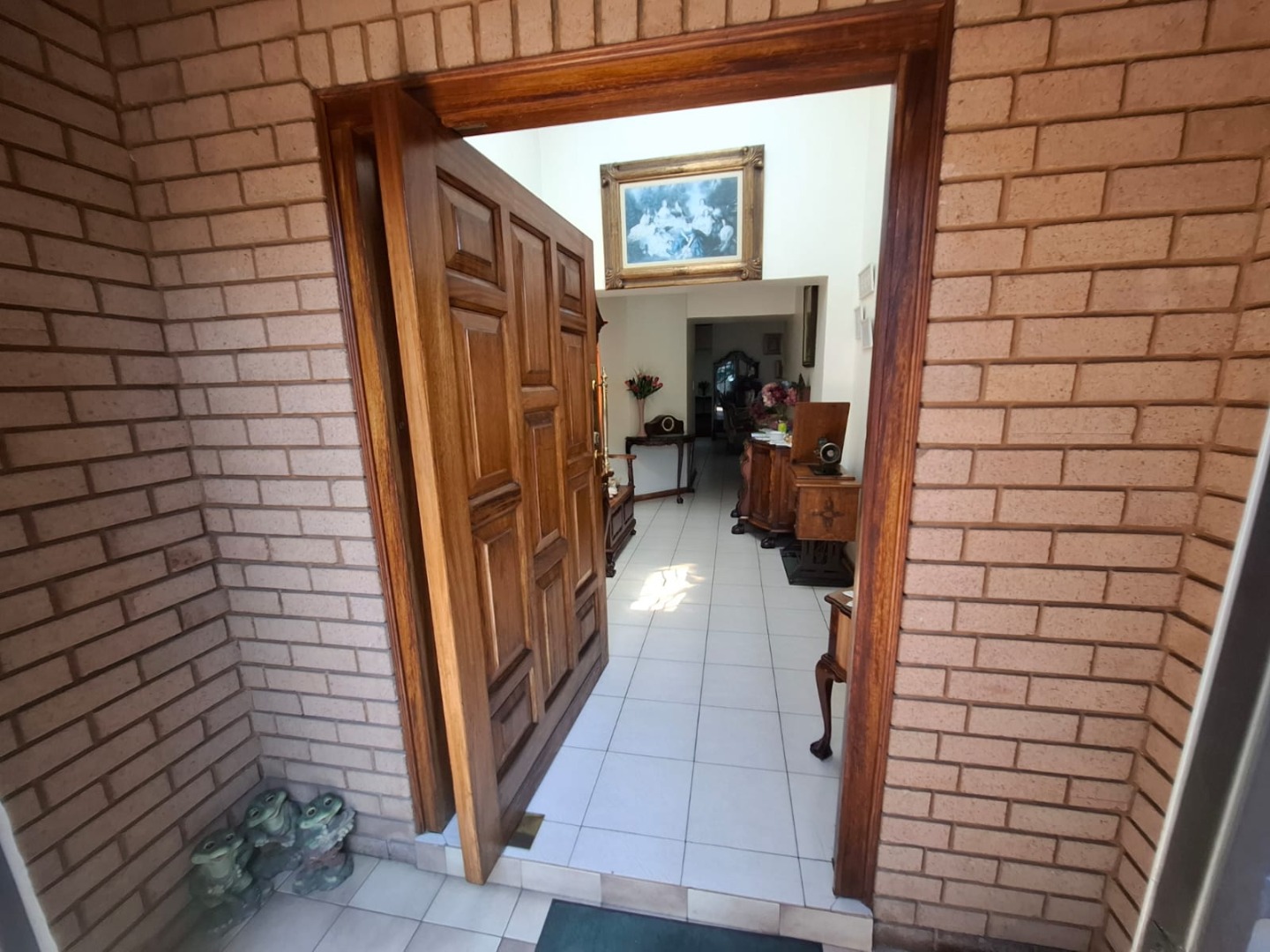 Discover this charming residence nestled in the established suburb of Farrarmere, Benoni. The property immediately impresses with its face brick exterior, well-maintained, mature garden, and secure frontage. A paved driveway provides ample parking, leading to a double carport and two garages, all within a totally walled perimeter enhanced by electric fencing for peace of mind.