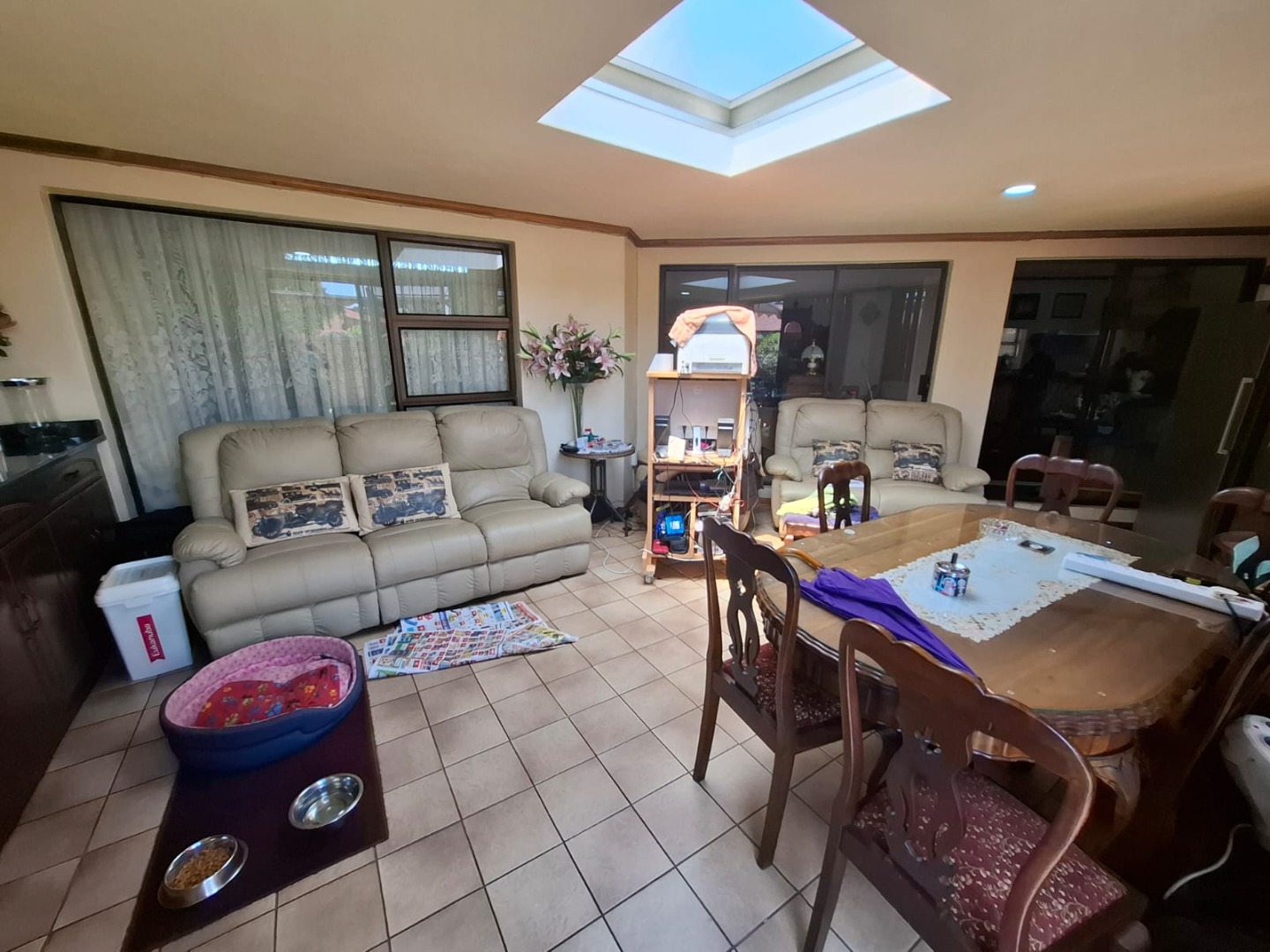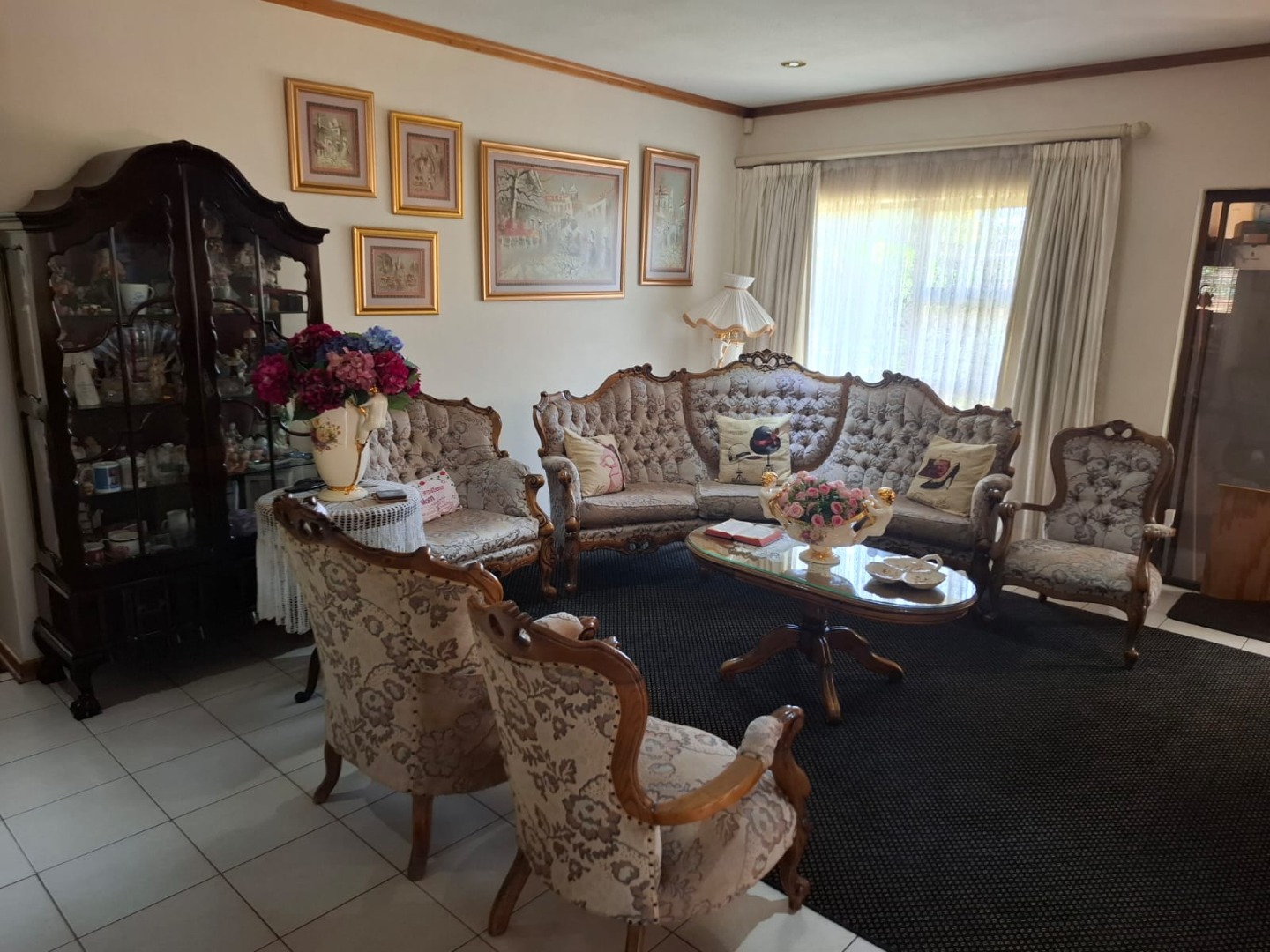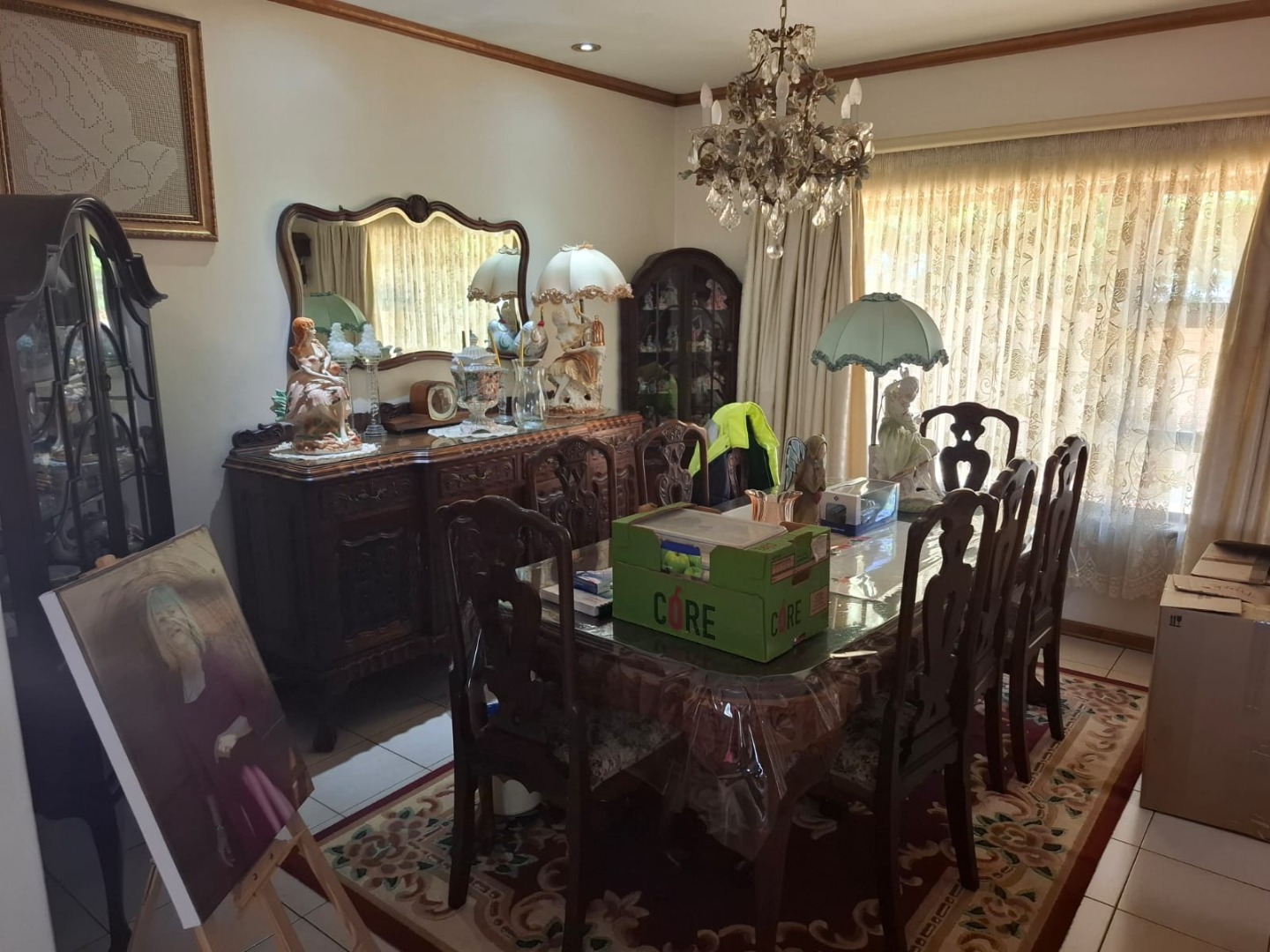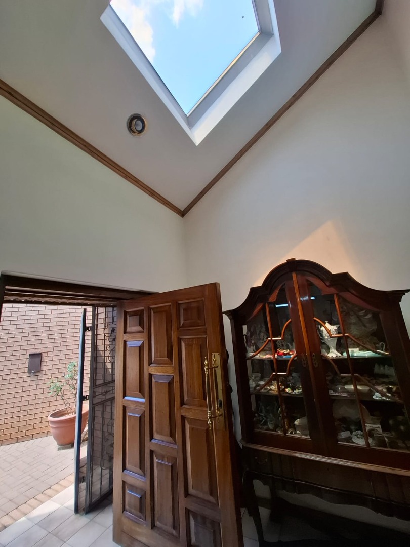 Discover this charming residence nestled in the established suburb of Farrarmere, Benoni. The property immediately impresses with its face brick exterior, well-maintained, mature garden, and secure frontage. A paved driveway provides ample parking, leading to a double carport and two garages, all within a totally walled perimeter enhanced by electric fencing for peace of mind.