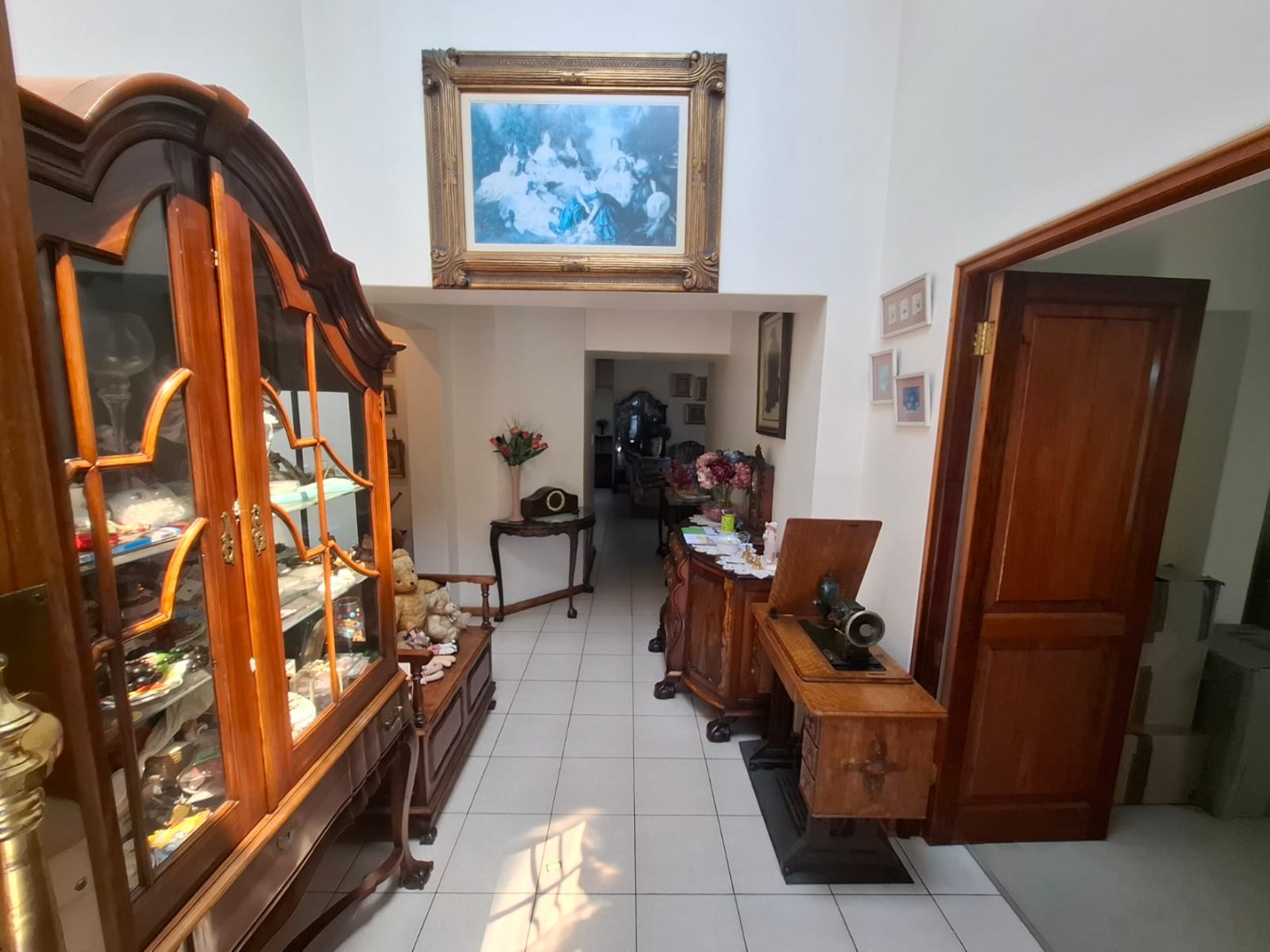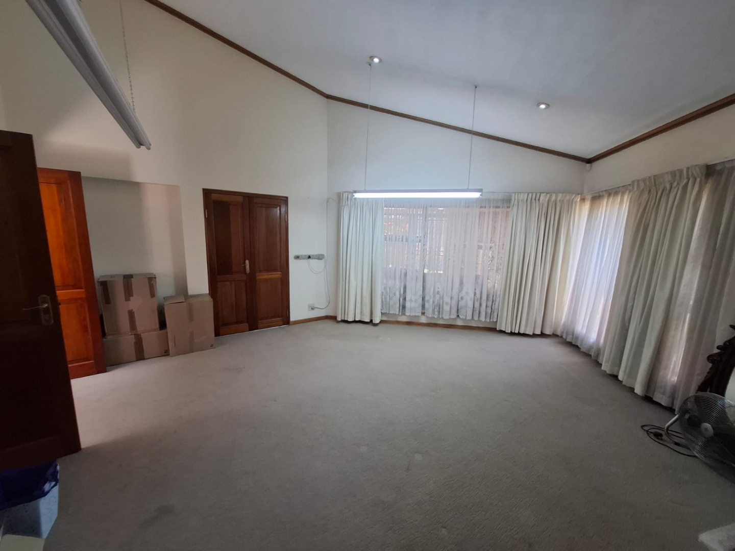 Step inside through a solid wooden front door into an inviting entrance hall, featuring high ceilings and abundant natural light from a skylight. The interior boasts versatile living spaces, including two spacious lounges and a dedicated dining room, perfect for both relaxation and entertaining. A functional home office, complete with crown molding, offers an ideal environment for productivity or study.