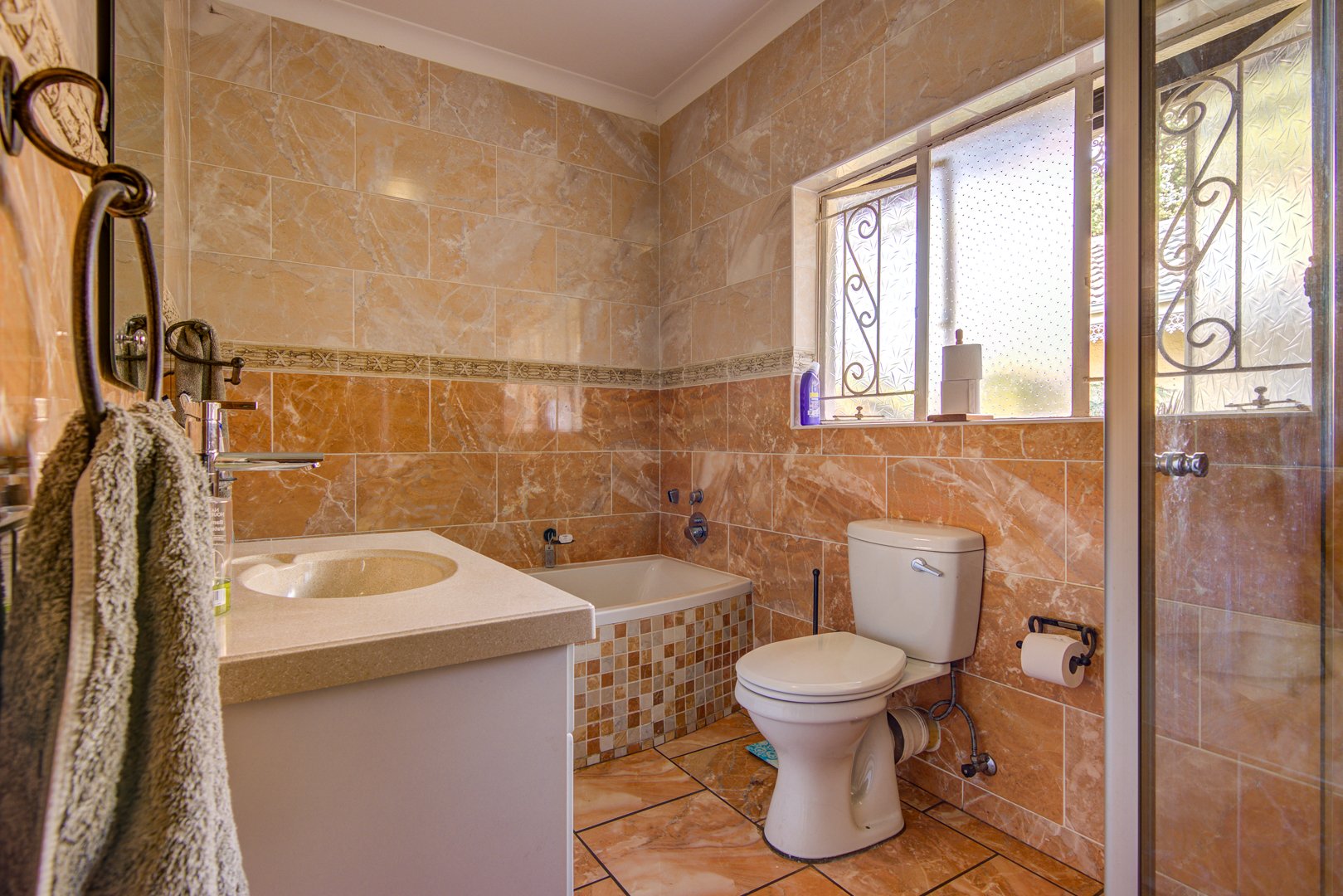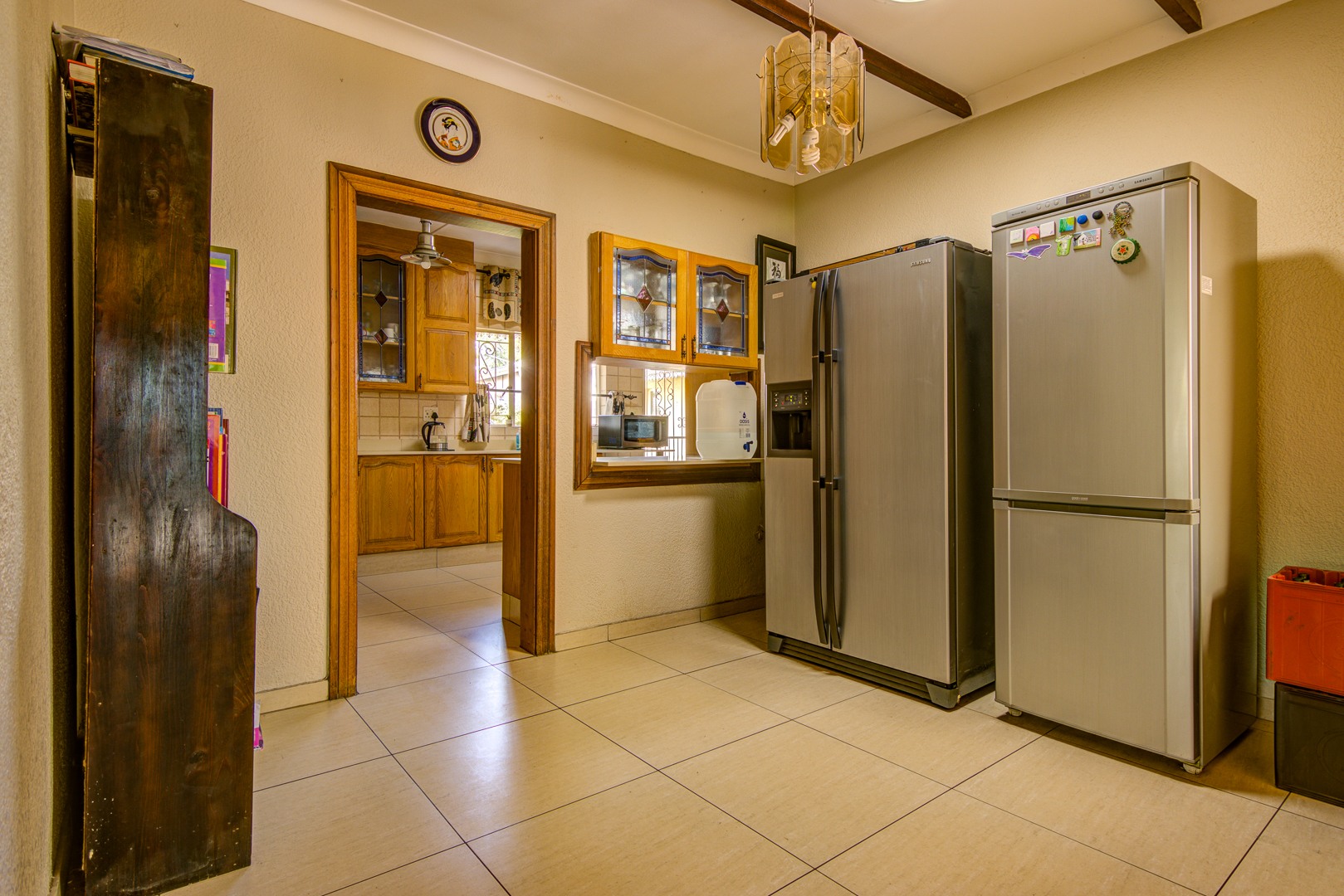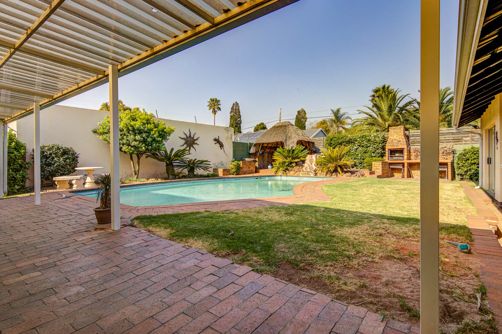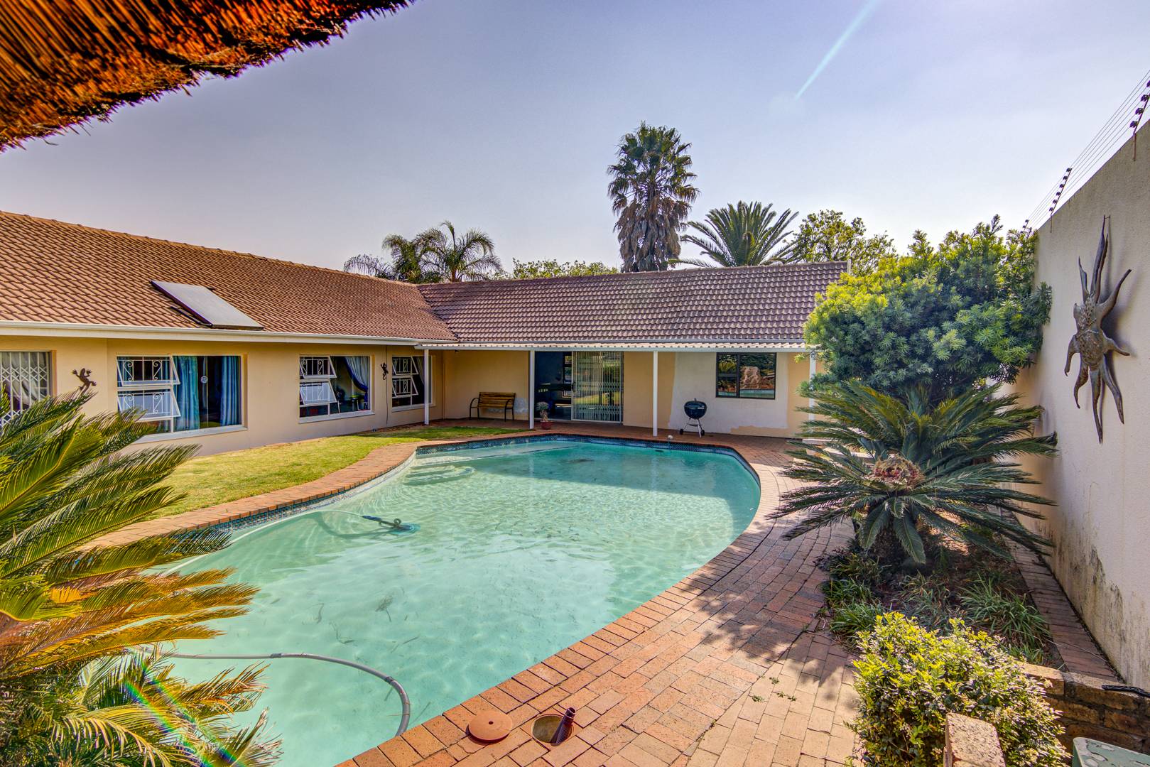 This distinguished home comprises four generously proportioned bedrooms and two well-appointed bathrooms, including a luxurious en-suite, ensuring privacy and comfort for all residents. The property is further enhanced by a refreshing swimming pool and a charming lapa, creating an idyllic outdoor oasis for relaxation and recreation. Additional practicalities include domestic rooms, an alarm system, and CCTV surveillance, ensuring peace of mind. With fibre connectivity, this residence seamlessly blends classic charm with modern convenience.