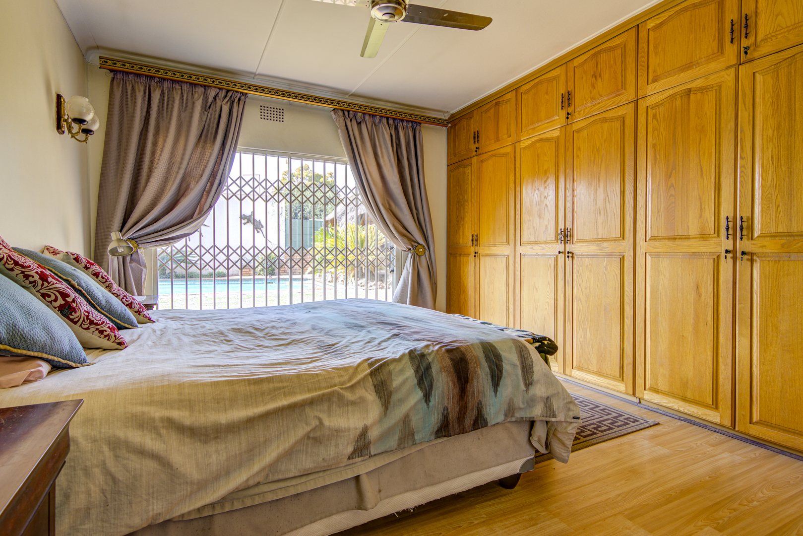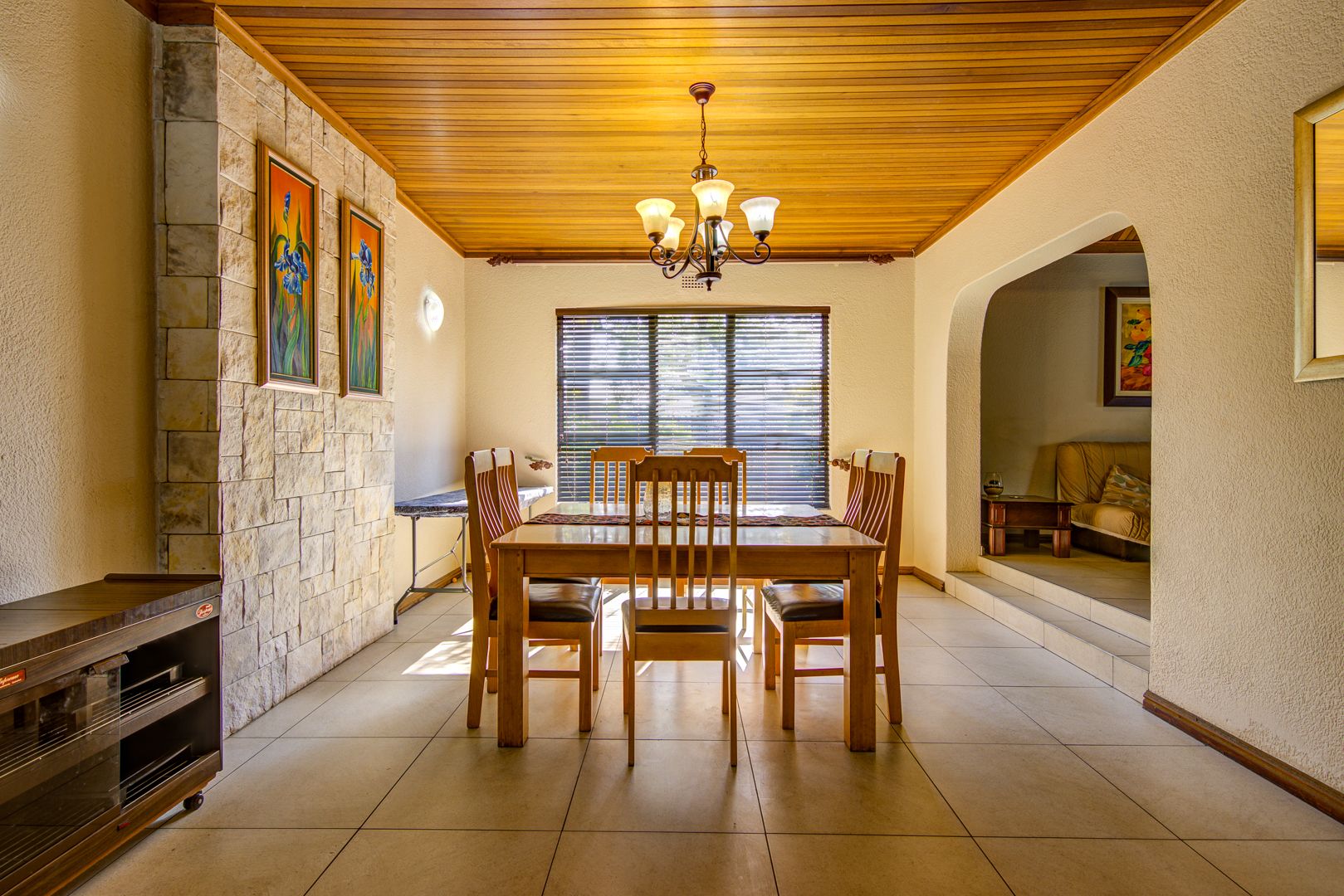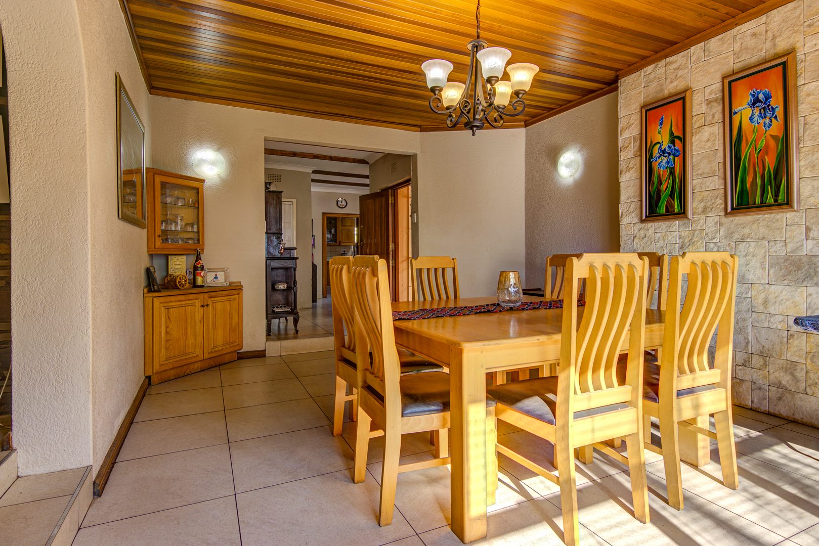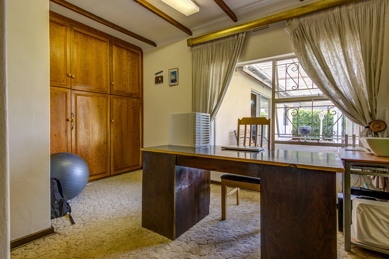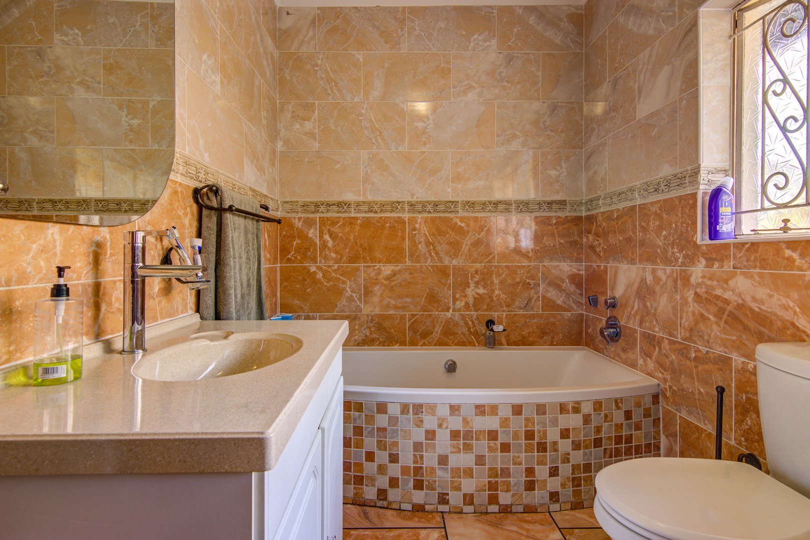 This distinguished home comprises four generously proportioned bedrooms and two well-appointed bathrooms, including a luxurious en-suite, ensuring privacy and comfort for all residents. The property is further enhanced by a refreshing swimming pool and a charming lapa, creating an idyllic outdoor oasis for relaxation and recreation. Additional practicalities include domestic rooms, an alarm system, and CCTV surveillance, ensuring peace of mind. With fibre connectivity, this residence seamlessly blends classic charm with modern convenience.