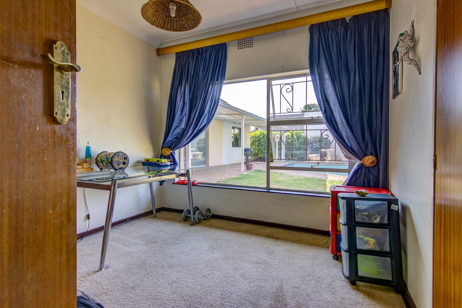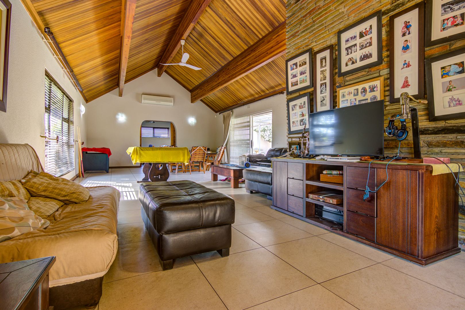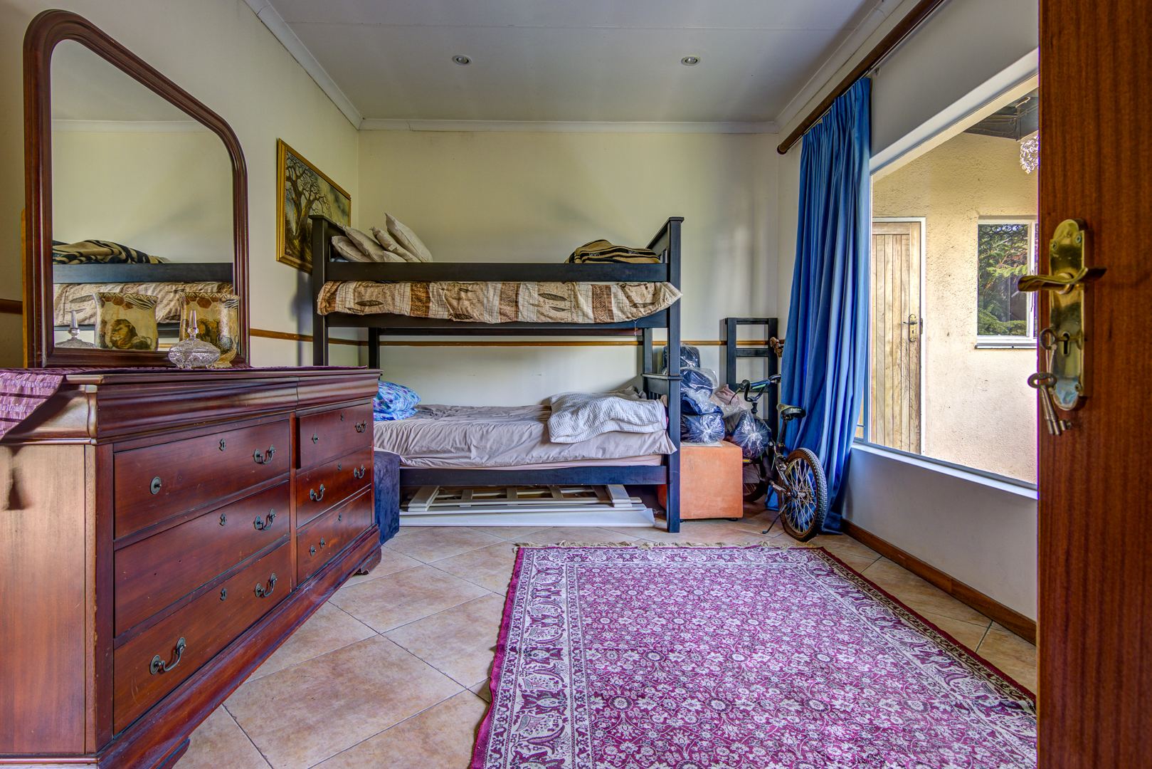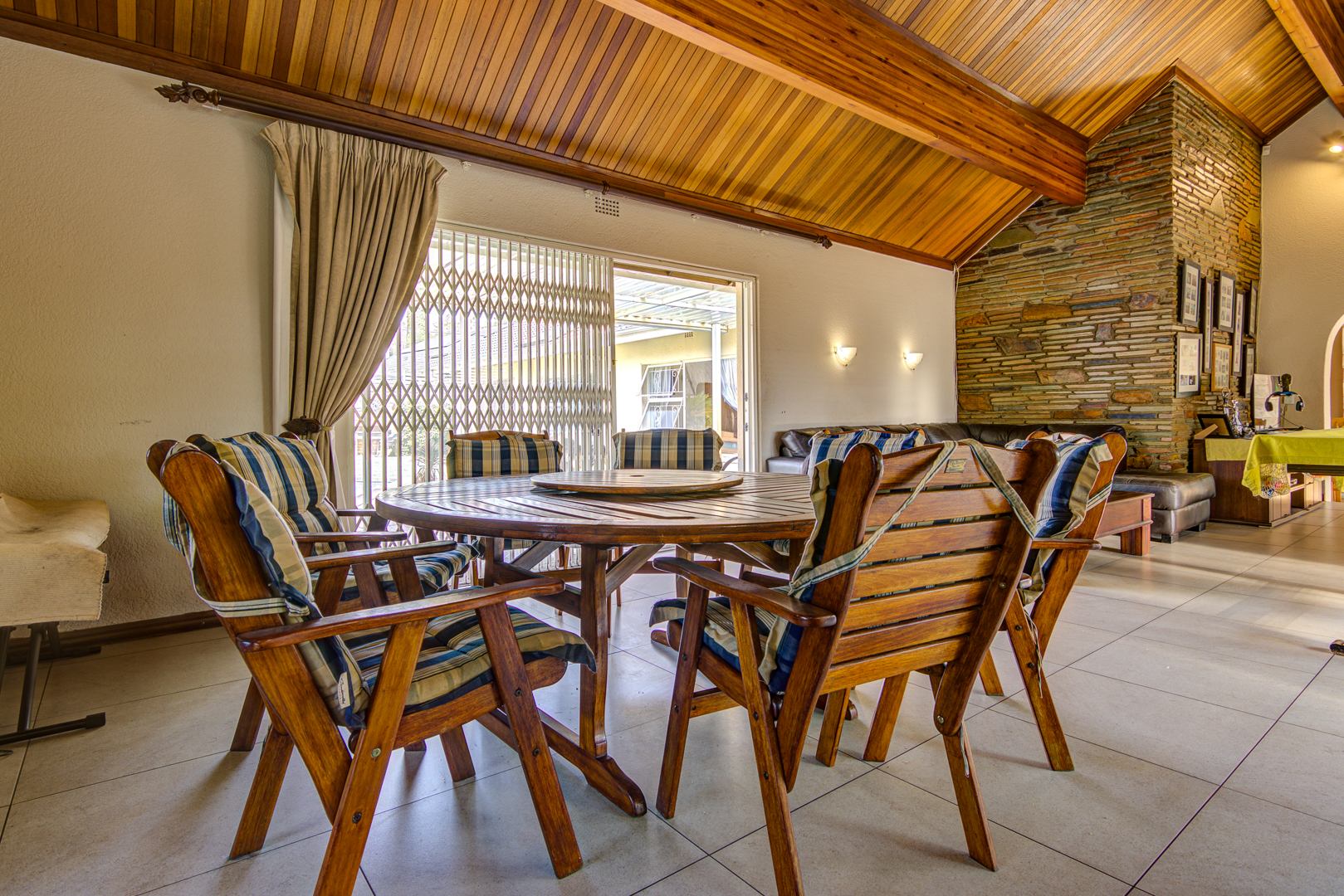 This distinguished home comprises four generously proportioned bedrooms and two well-appointed bathrooms, including a luxurious en-suite, ensuring privacy and comfort for all residents. The property is further enhanced by a refreshing swimming pool and a charming lapa, creating an idyllic outdoor oasis for relaxation and recreation. Additional practicalities include domestic rooms, an alarm system, and CCTV surveillance, ensuring peace of mind. With fibre connectivity, this residence seamlessly blends classic charm with modern convenience.