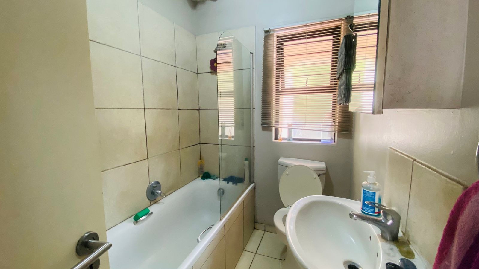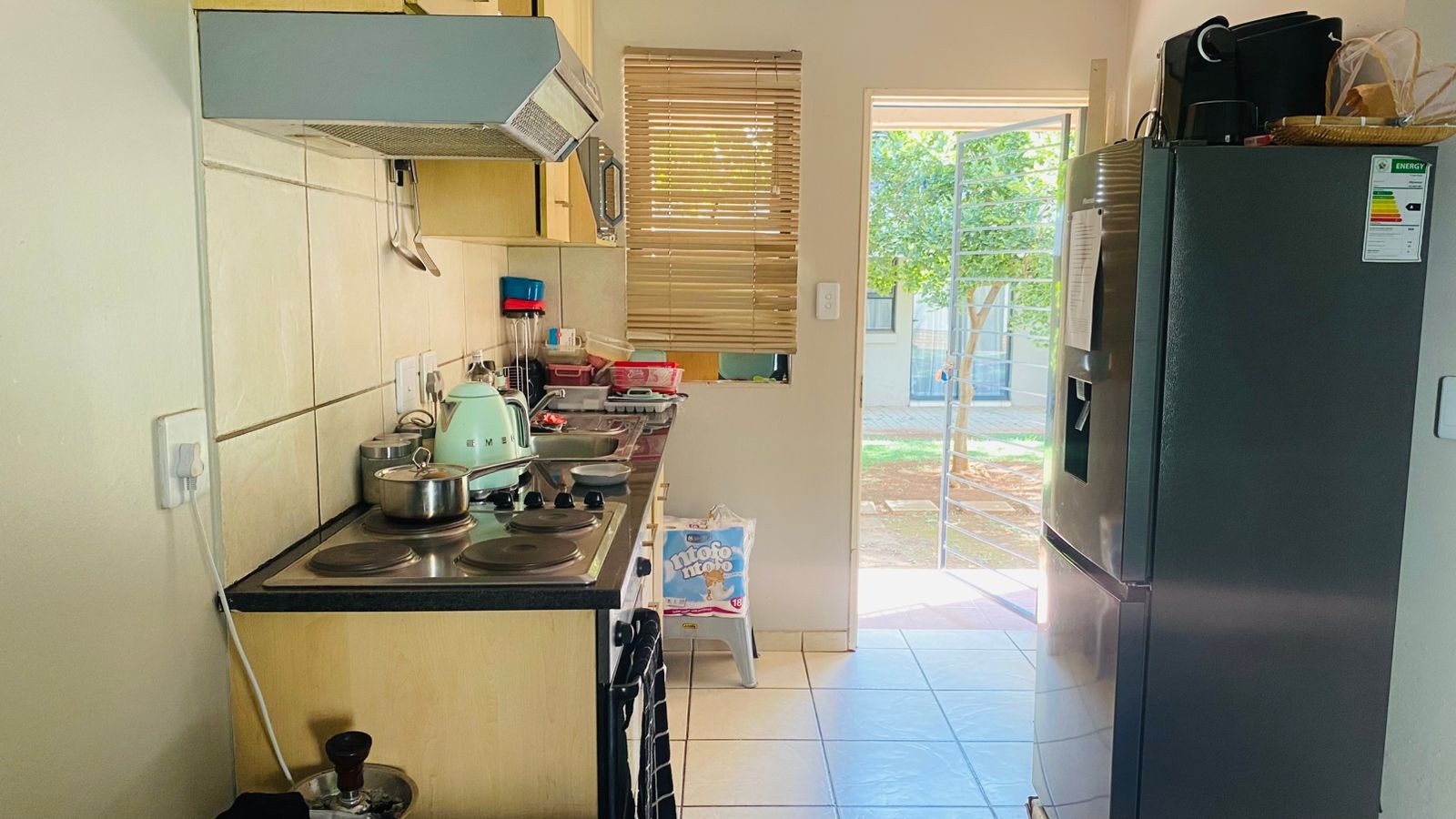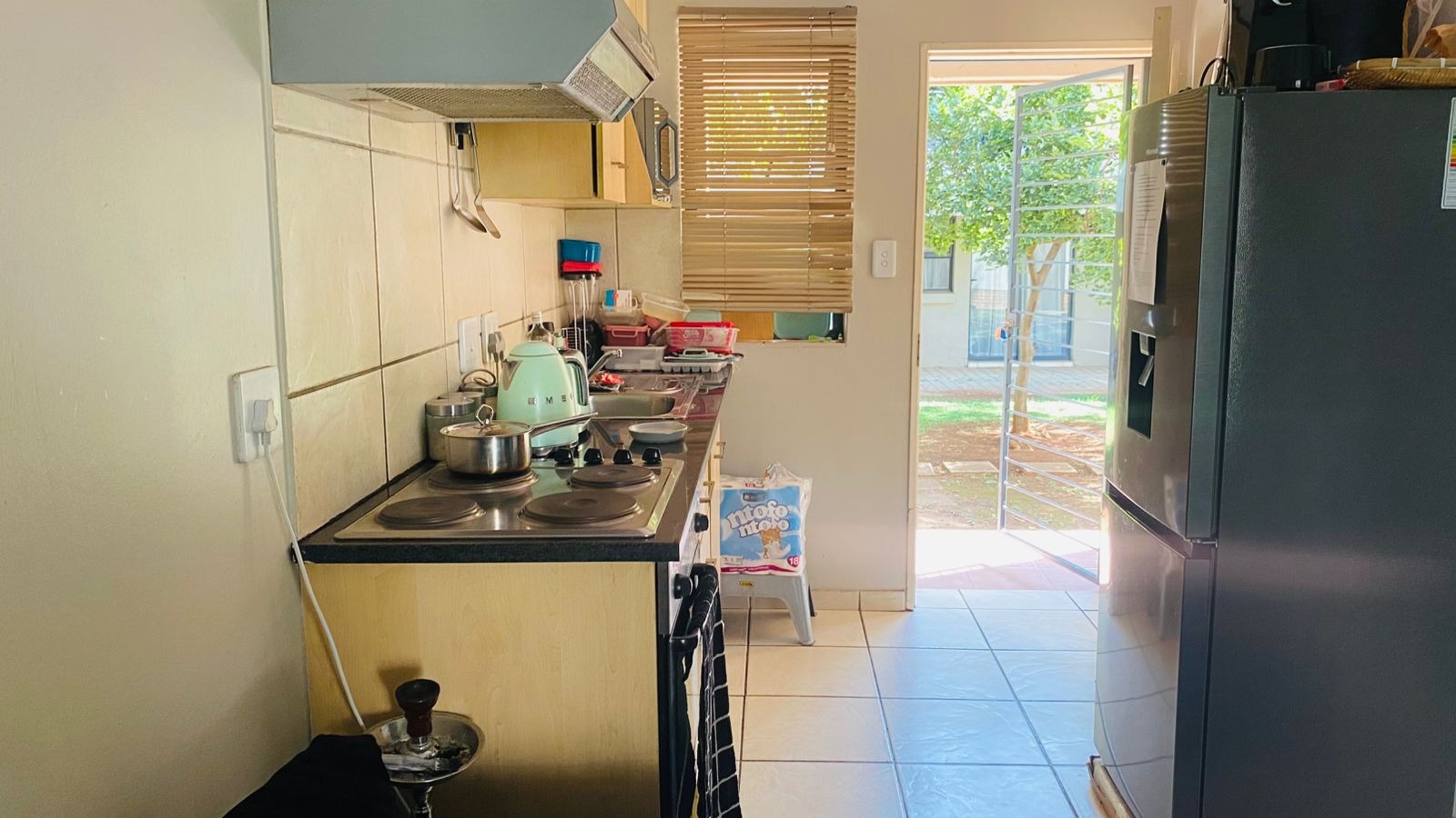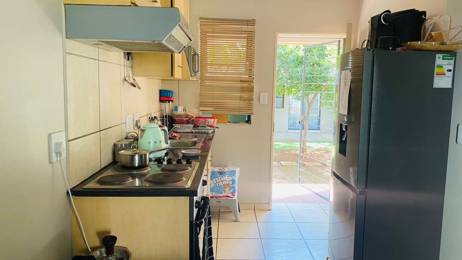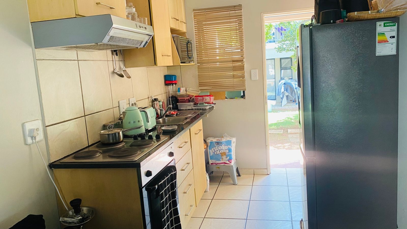 This well-maintained ground floor apartment offers 2 bedrooms, both fitted with built-in cupboards and a neat bathroom. The open plan layout seamlessly connects the kitchen and lounge, creating a light and inviting living space perfect for everyday living and entertaining.