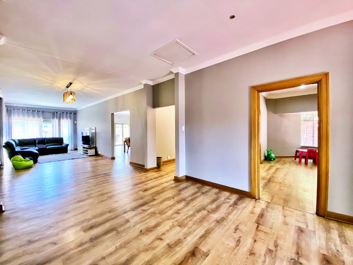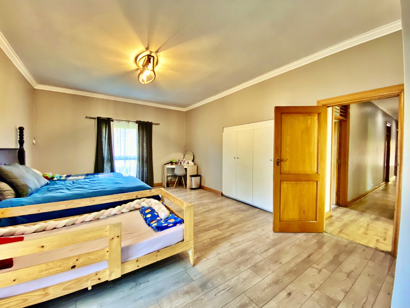 The home offers four well-sized bedrooms with generous built-in storage, two bathrooms, and a double garage. An additional storage room provides excellent versatility — easily adaptable for conversion into a flatlet or home office, depending on your needs.