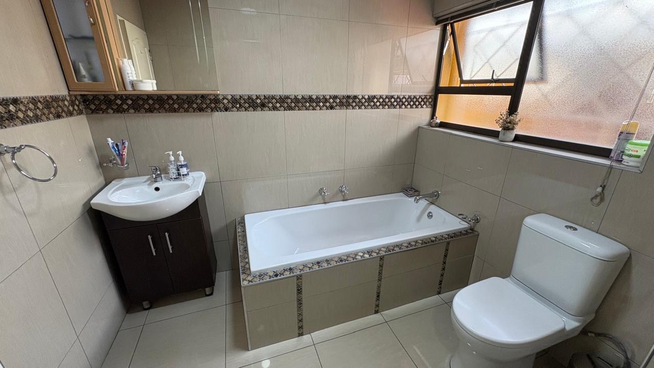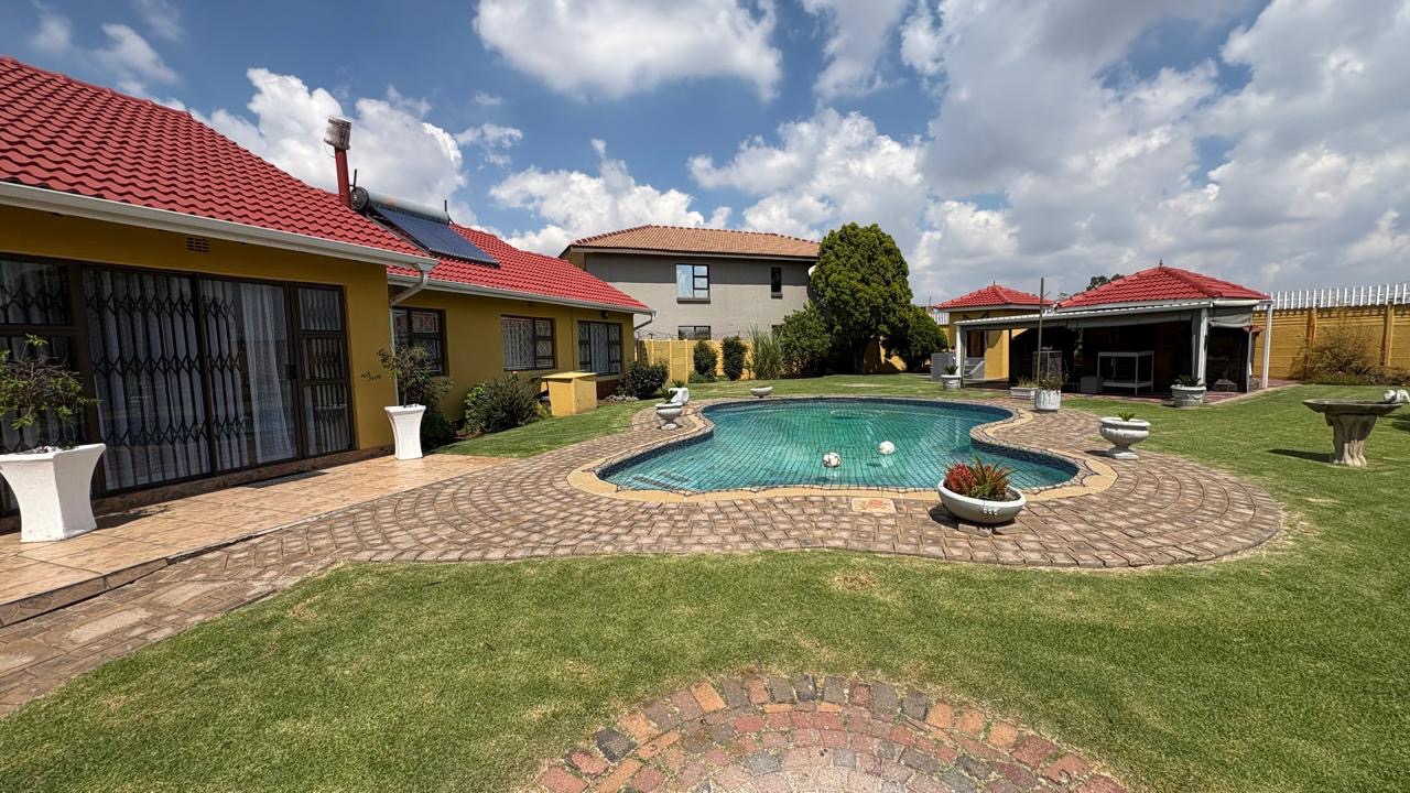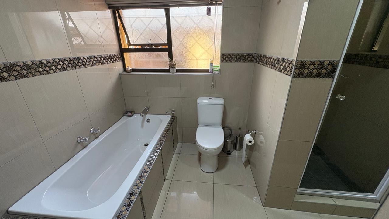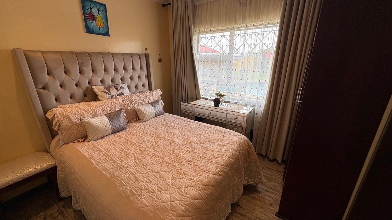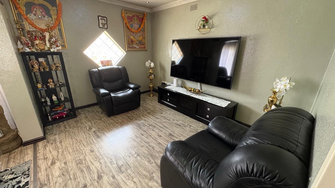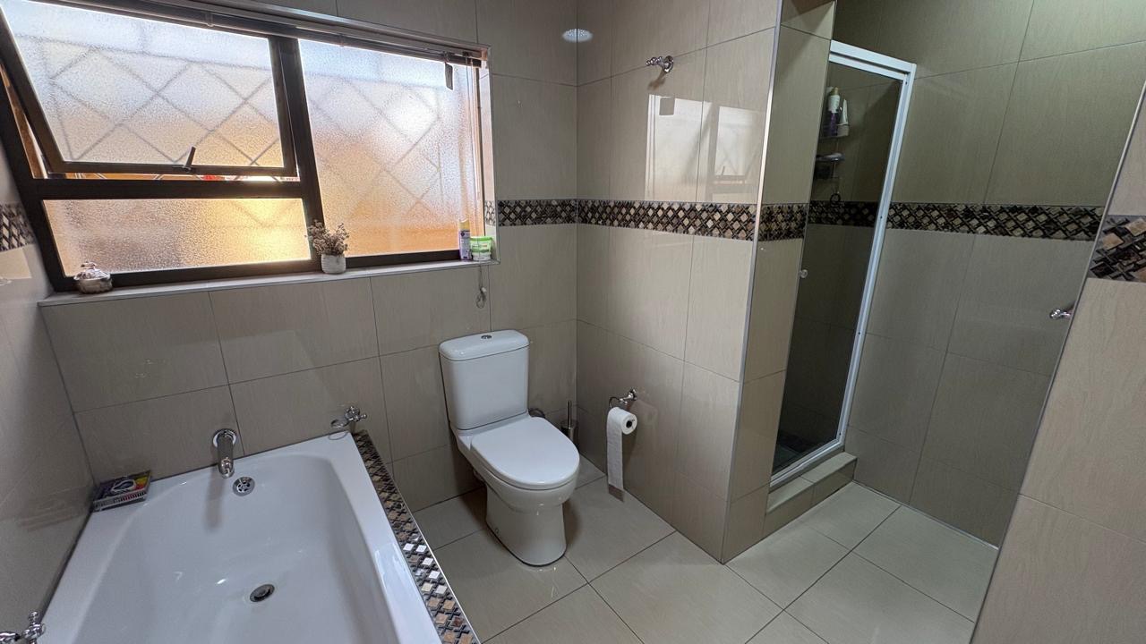Step into this inviting home featuring a spacious open-plan living and dining area, with modern laminated flooring and elegant chandelier lighting. The property boasts two comfortable lounges, providing ample space for relaxation and entertainment. The well-appointed kitchen is a highlight, equipped with ample cupboard space and has granite countertops. There is a gas hob. This stylish kitchen also has space for a double door fridge.
