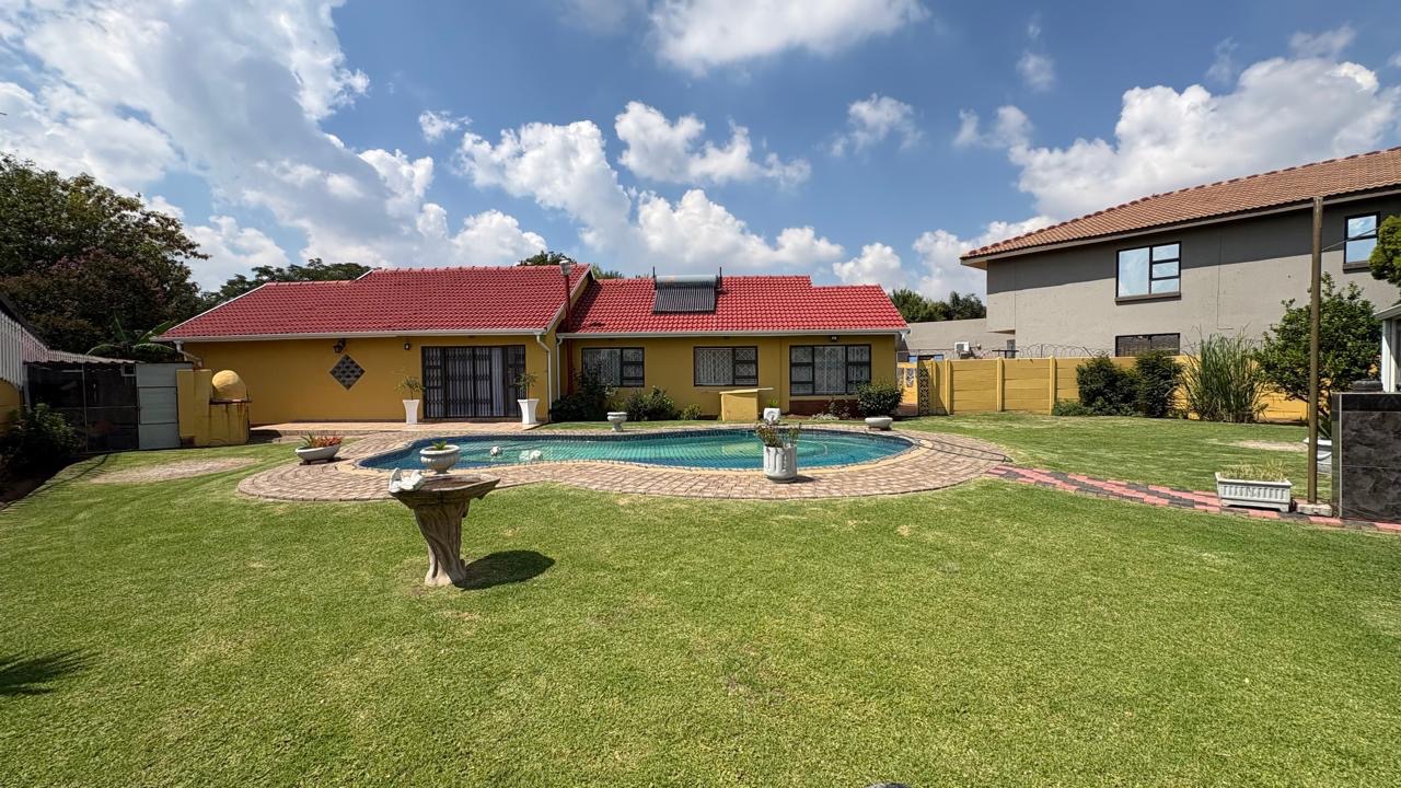Security is well-addressed with an alarm system for peace of mind. The home also incorporates sustainable living solutions, featuring a solar geyser for energy efficiency and water tanks.