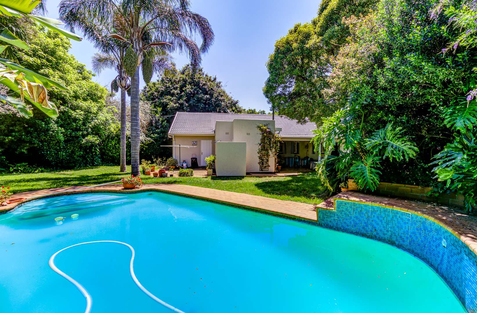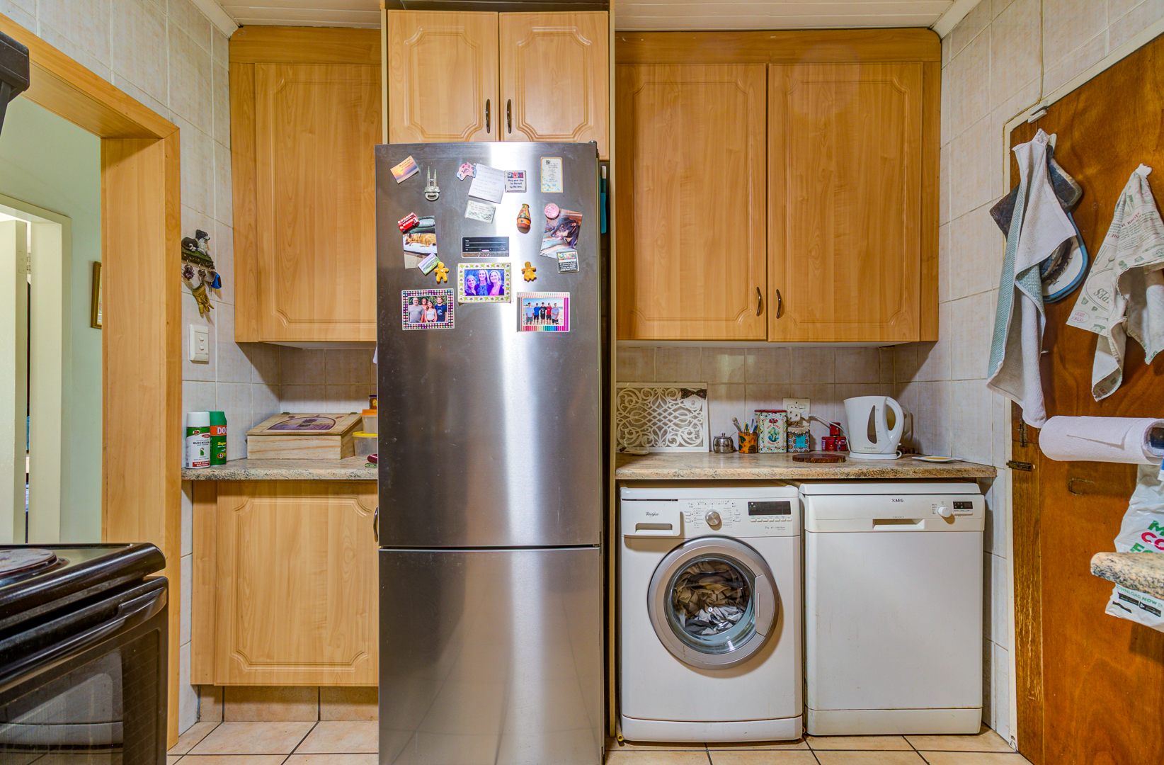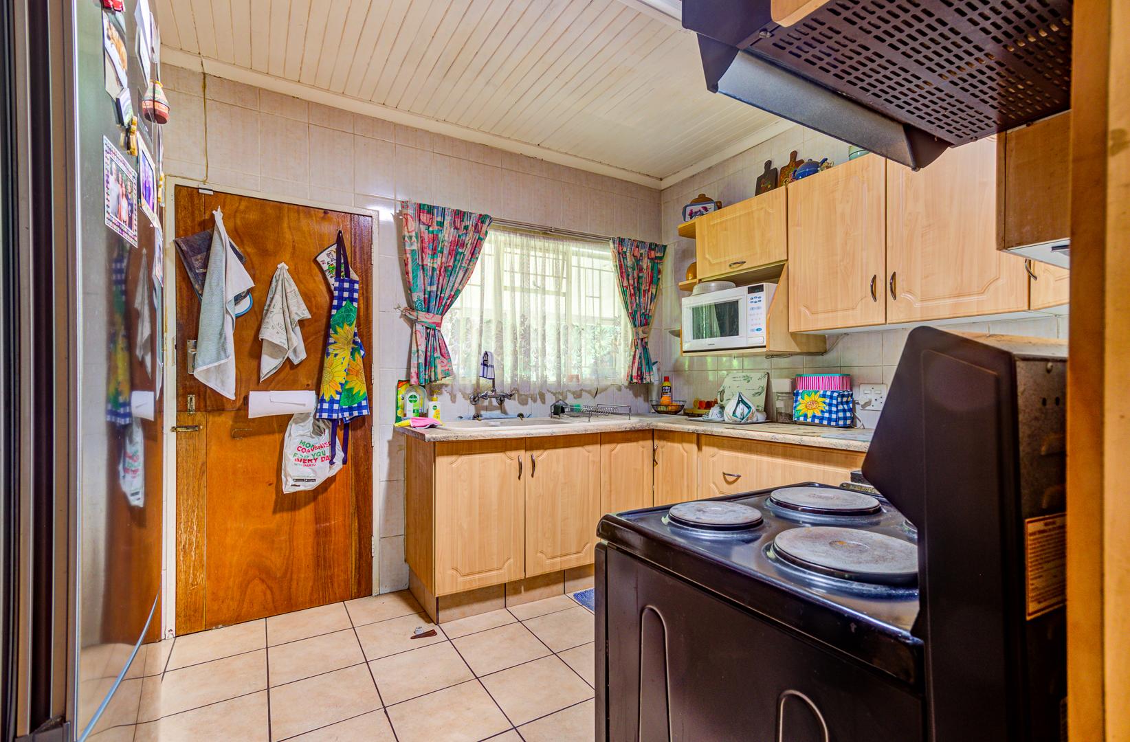 This charming single-story residence in Northmead, Benoni, offers comfortable suburban living on a generous 996 sqm erf. The property immediately impresses with its well-maintained exterior, featuring light-colored walls and a classic dark tiled roof. A lush, established garden, complete with mature trees, shrubs, and flowering roses, creates a welcoming ambiance and enhances privacy. A paved driveway leads to a double garage, providing ample secure parking and storage.